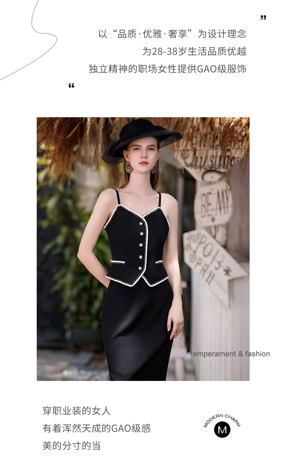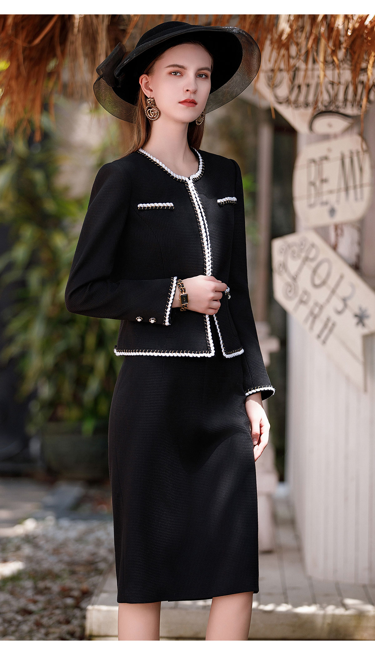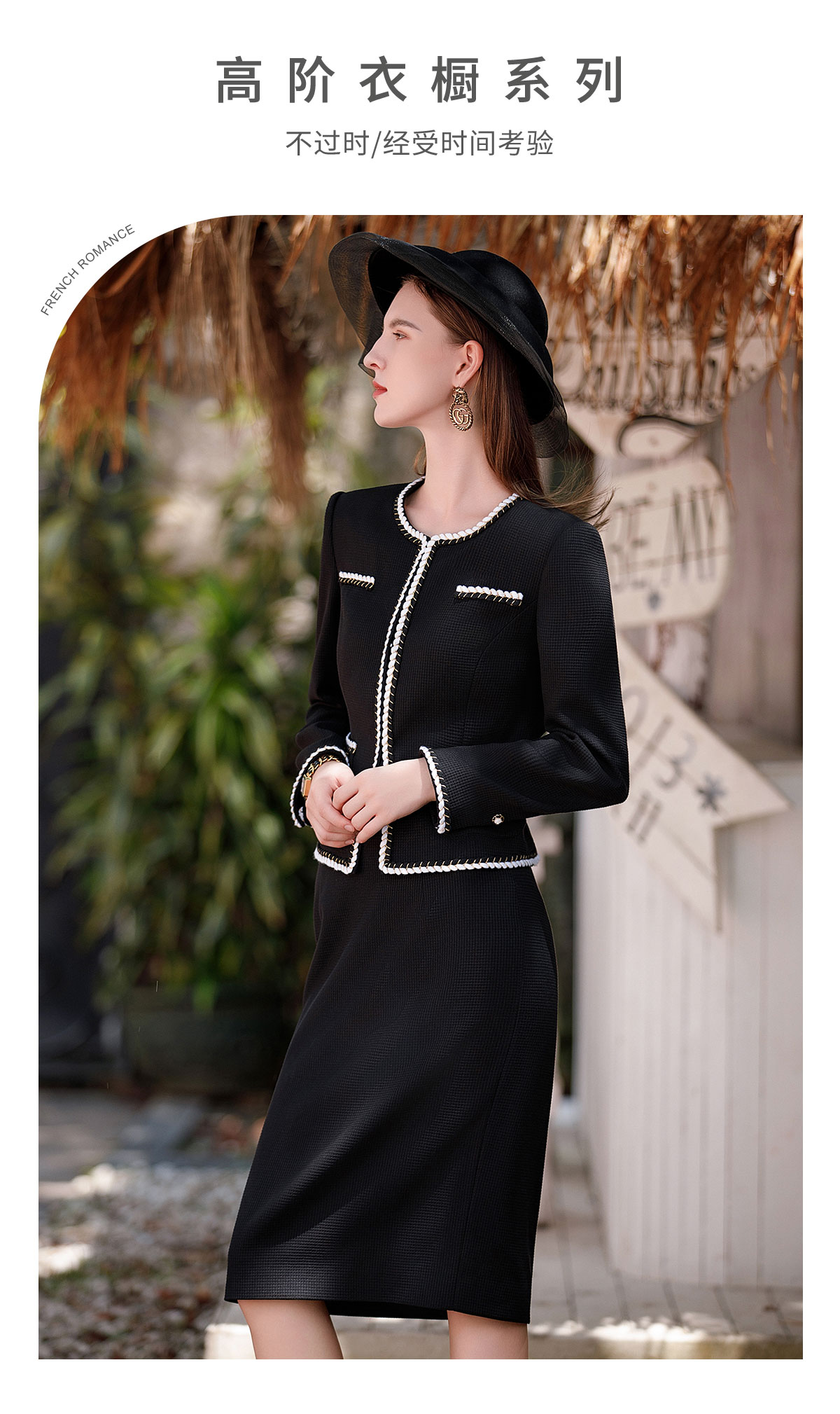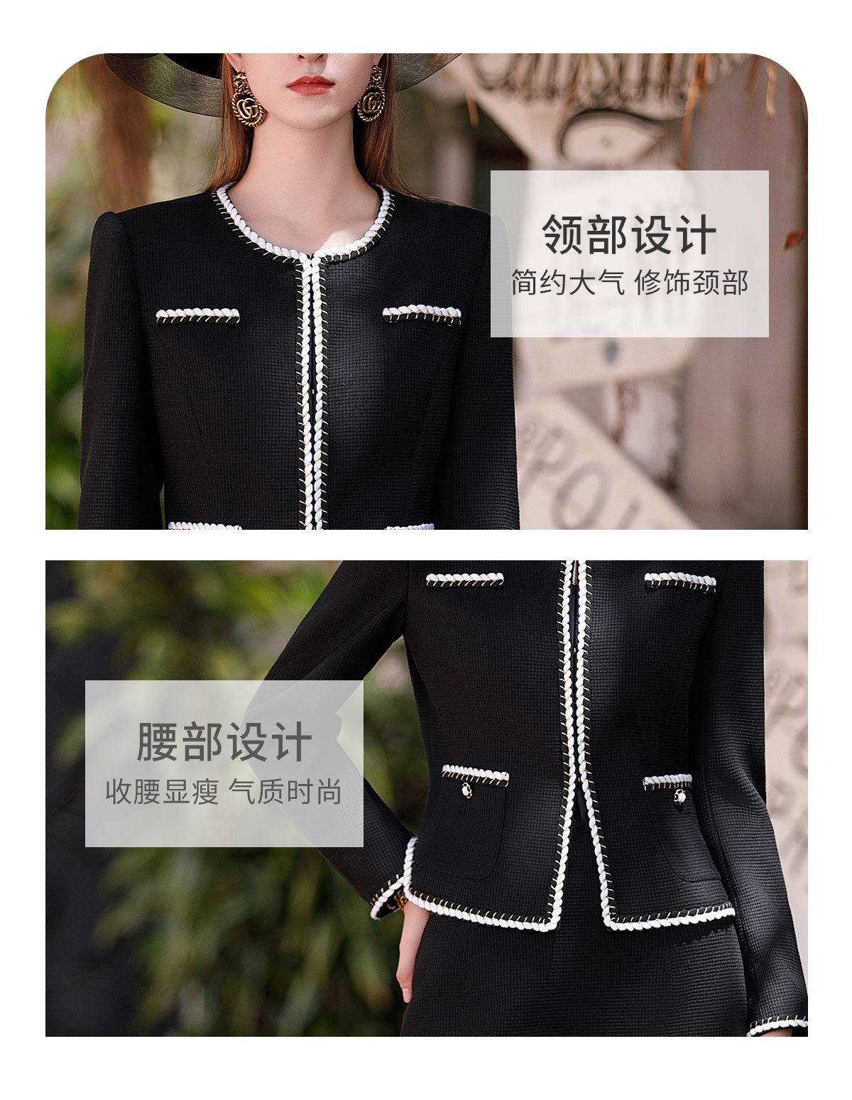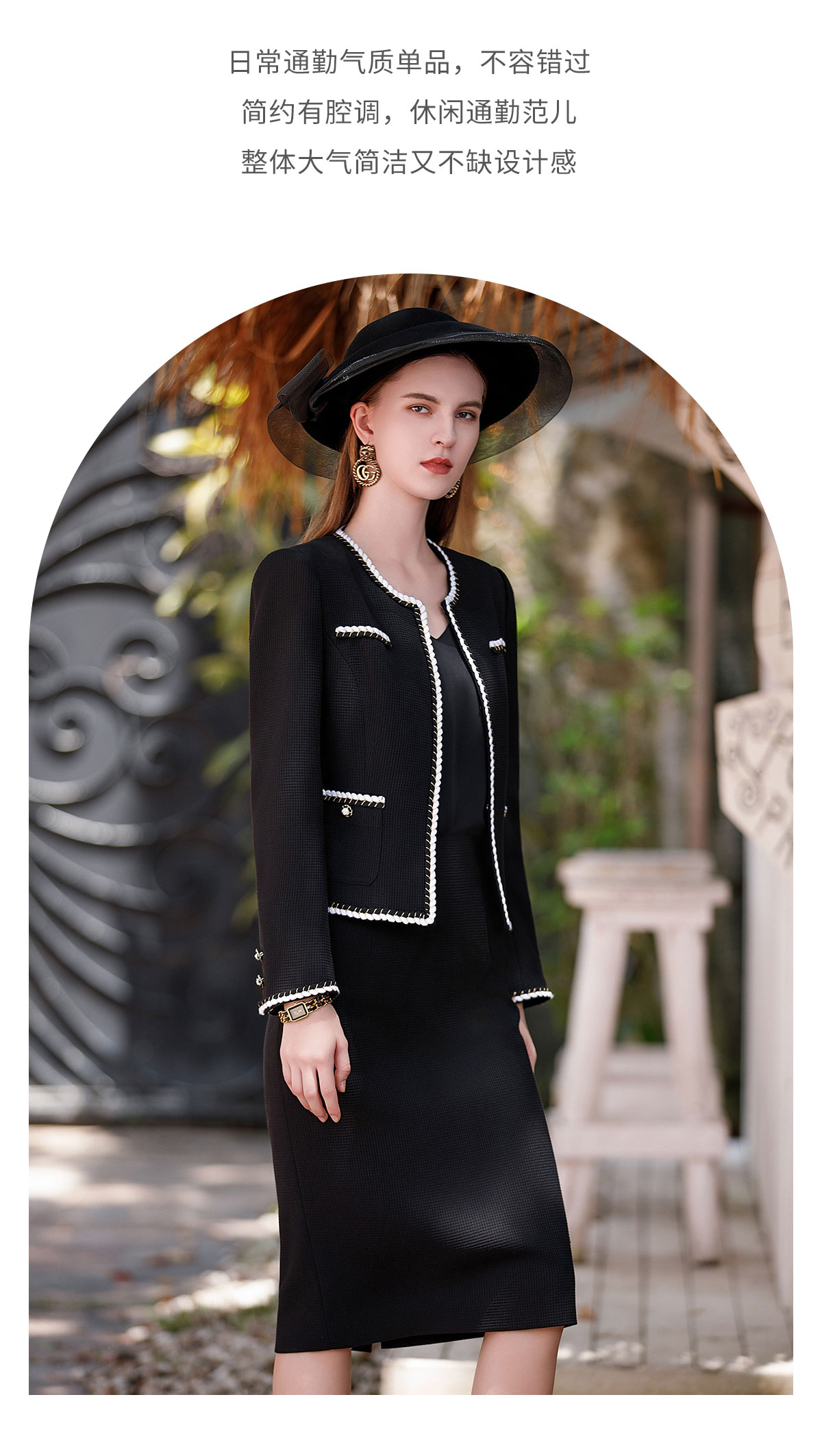 AD小香风粗花呢套装女2023秋装新款黑色编织外套正式场合三件套