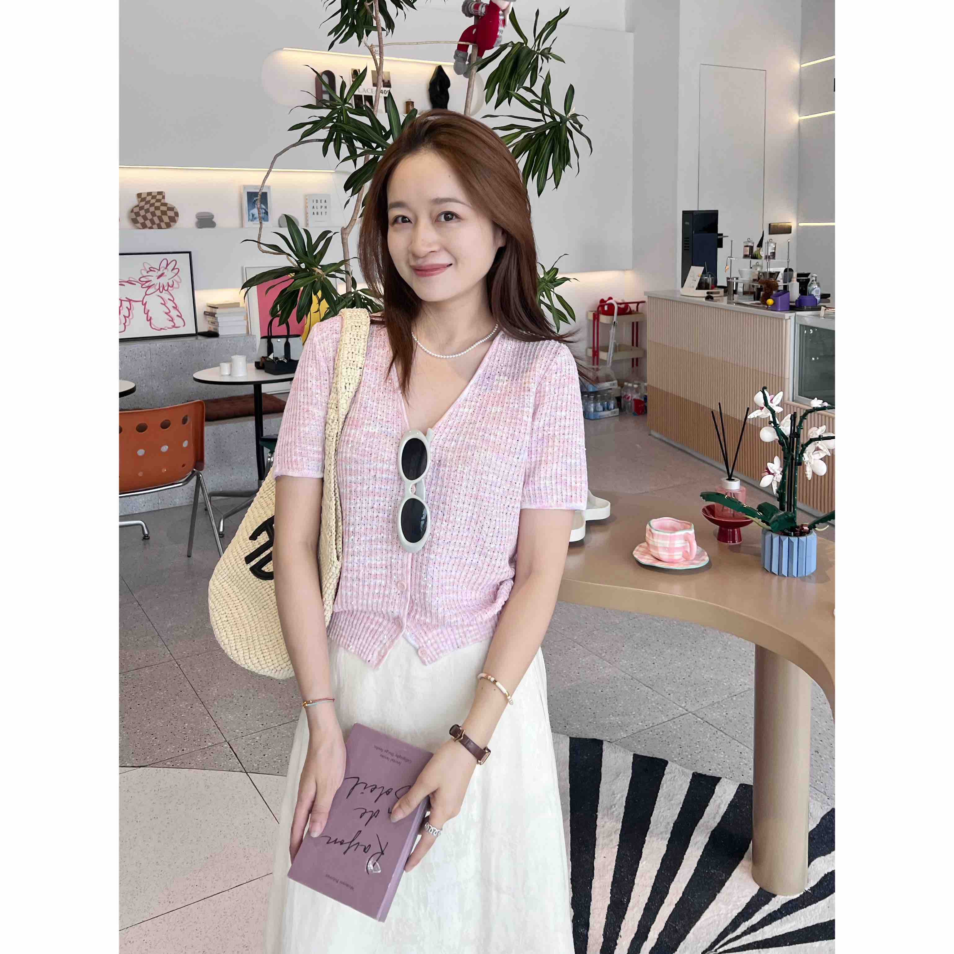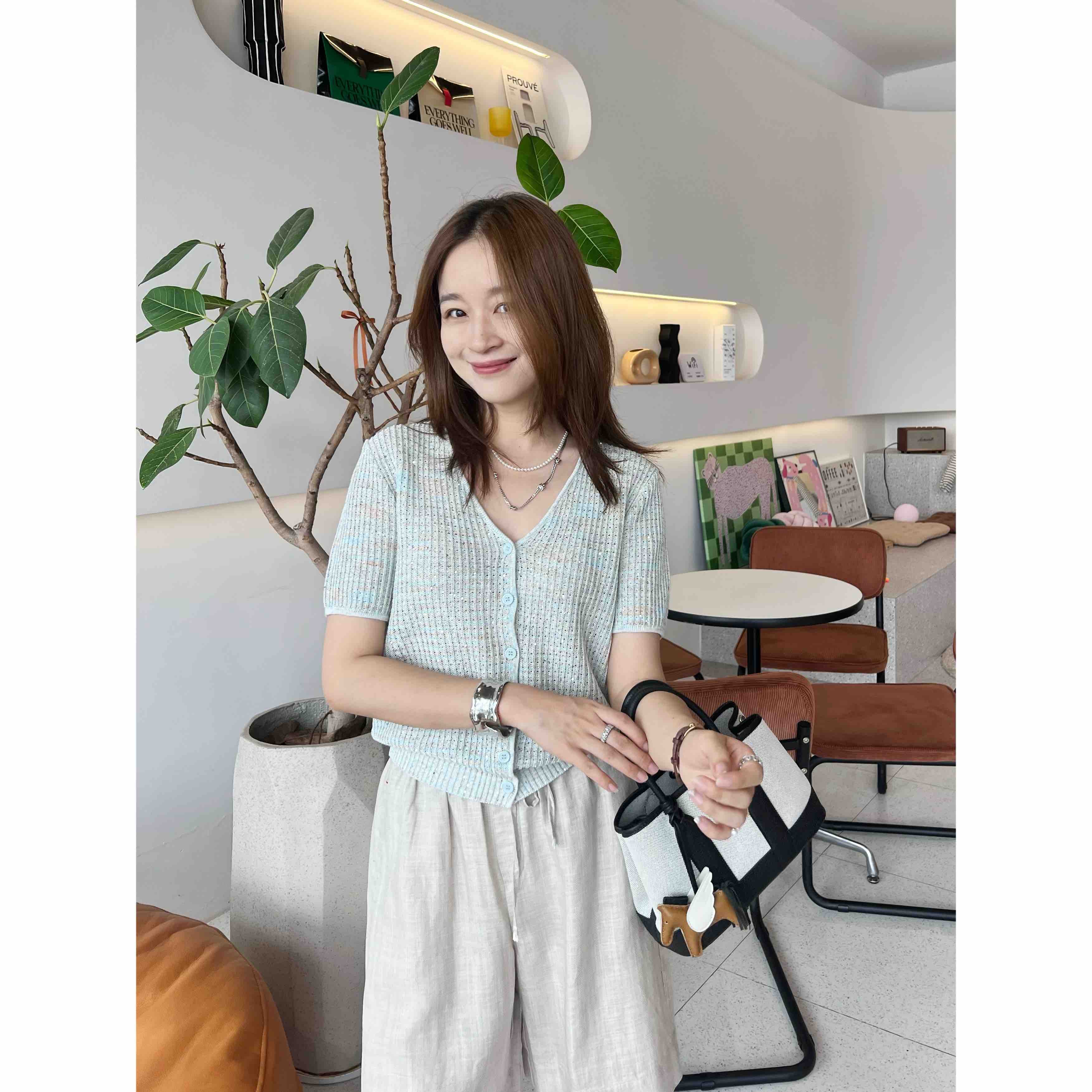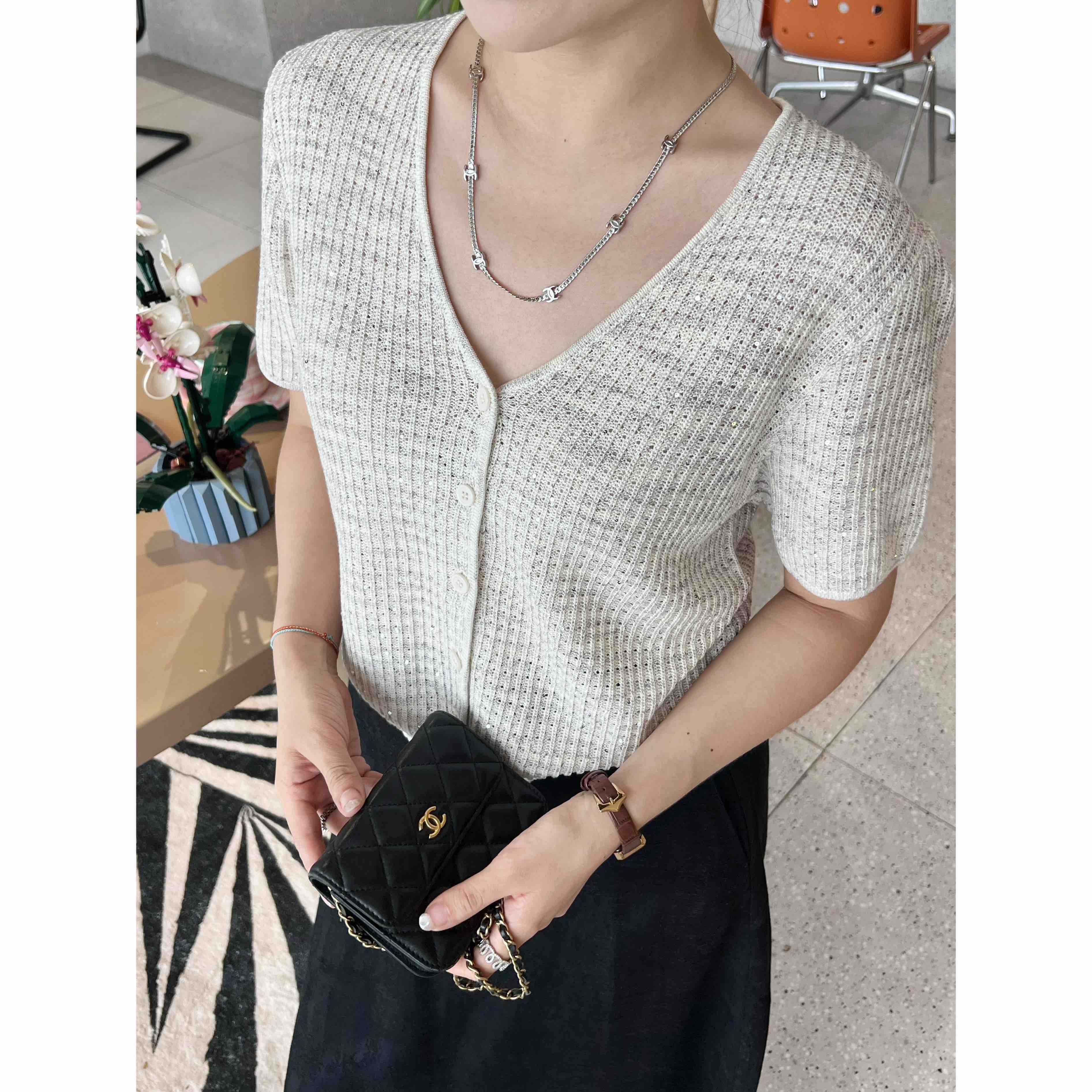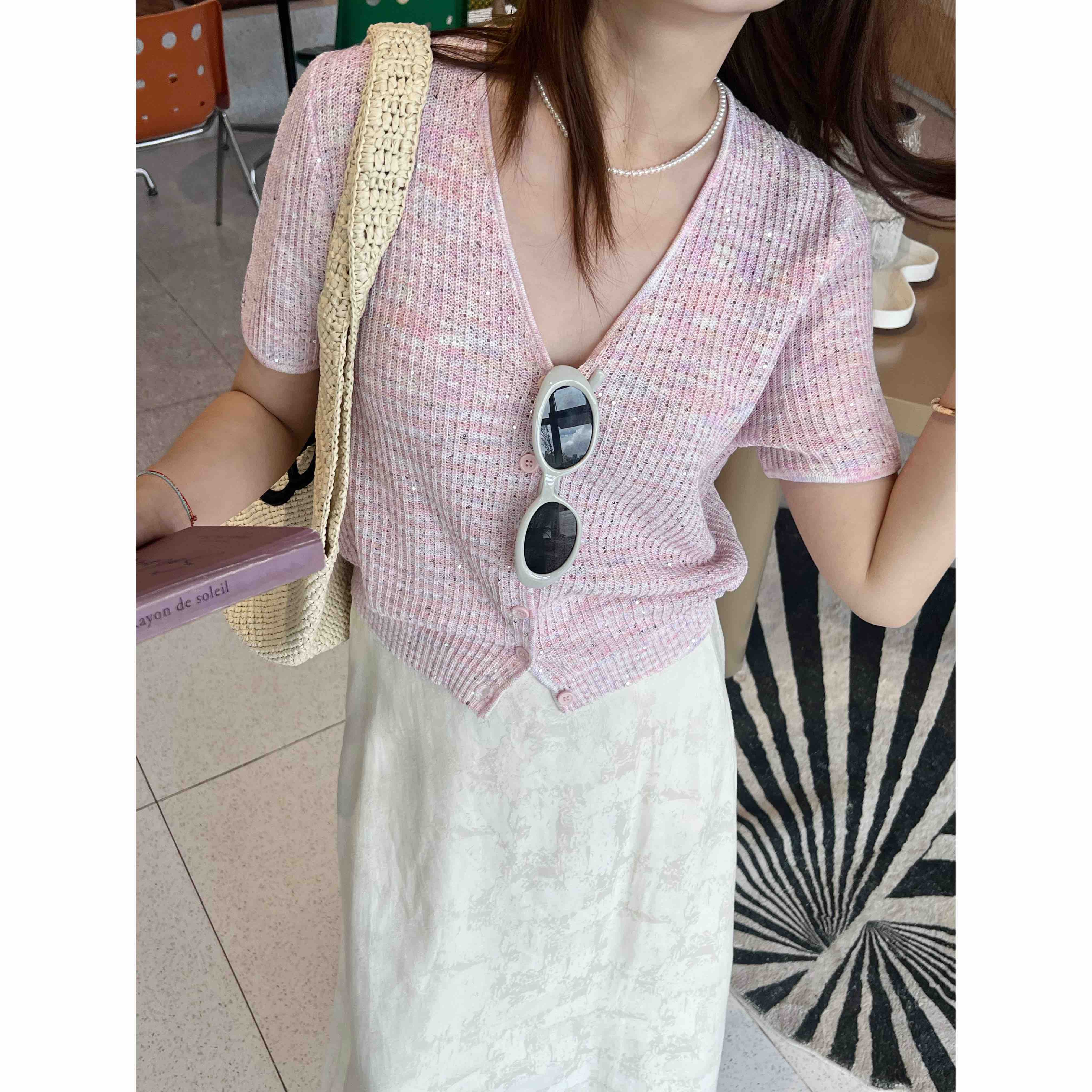 2507414 顶级“康宝莱” 亚麻珠片 短袖开衫