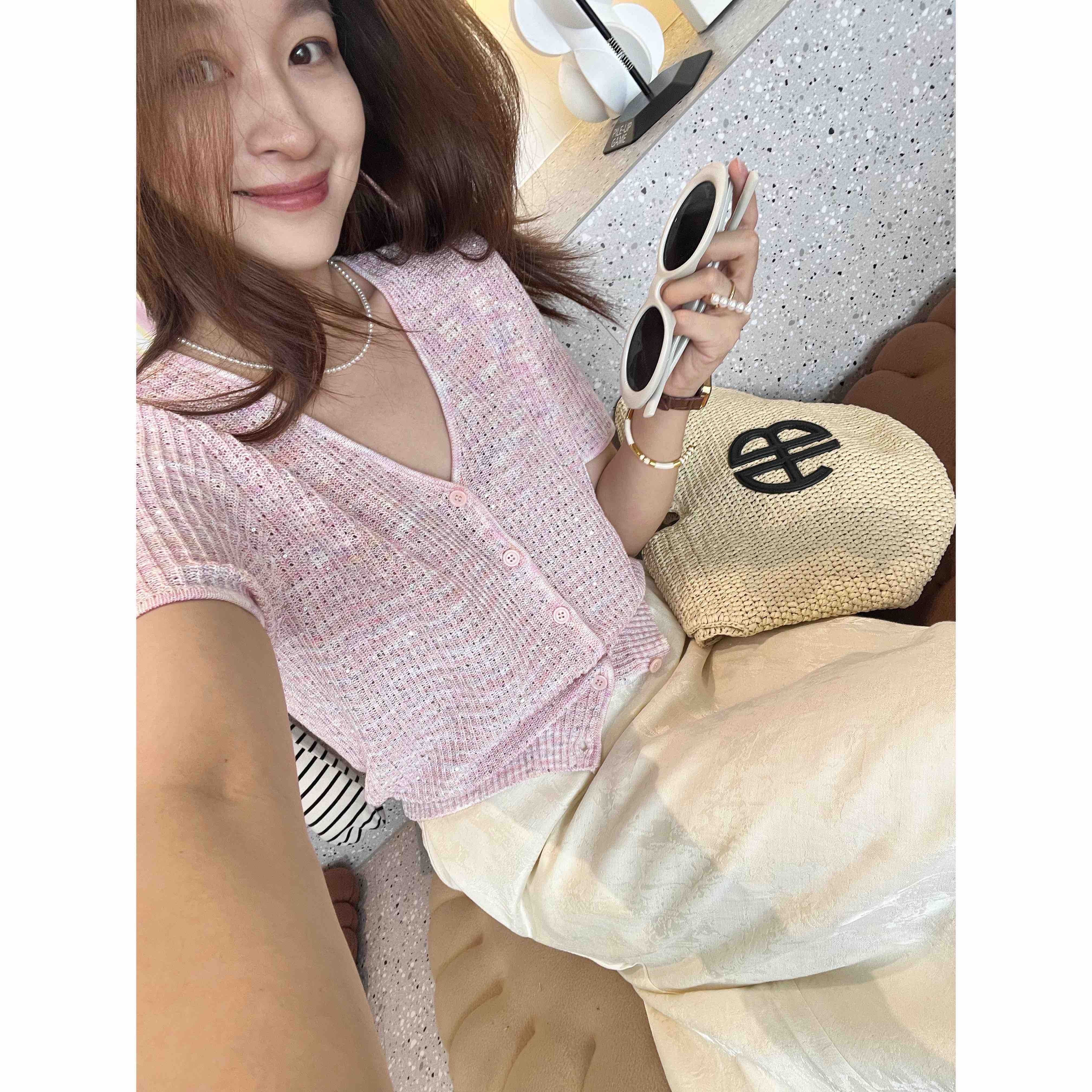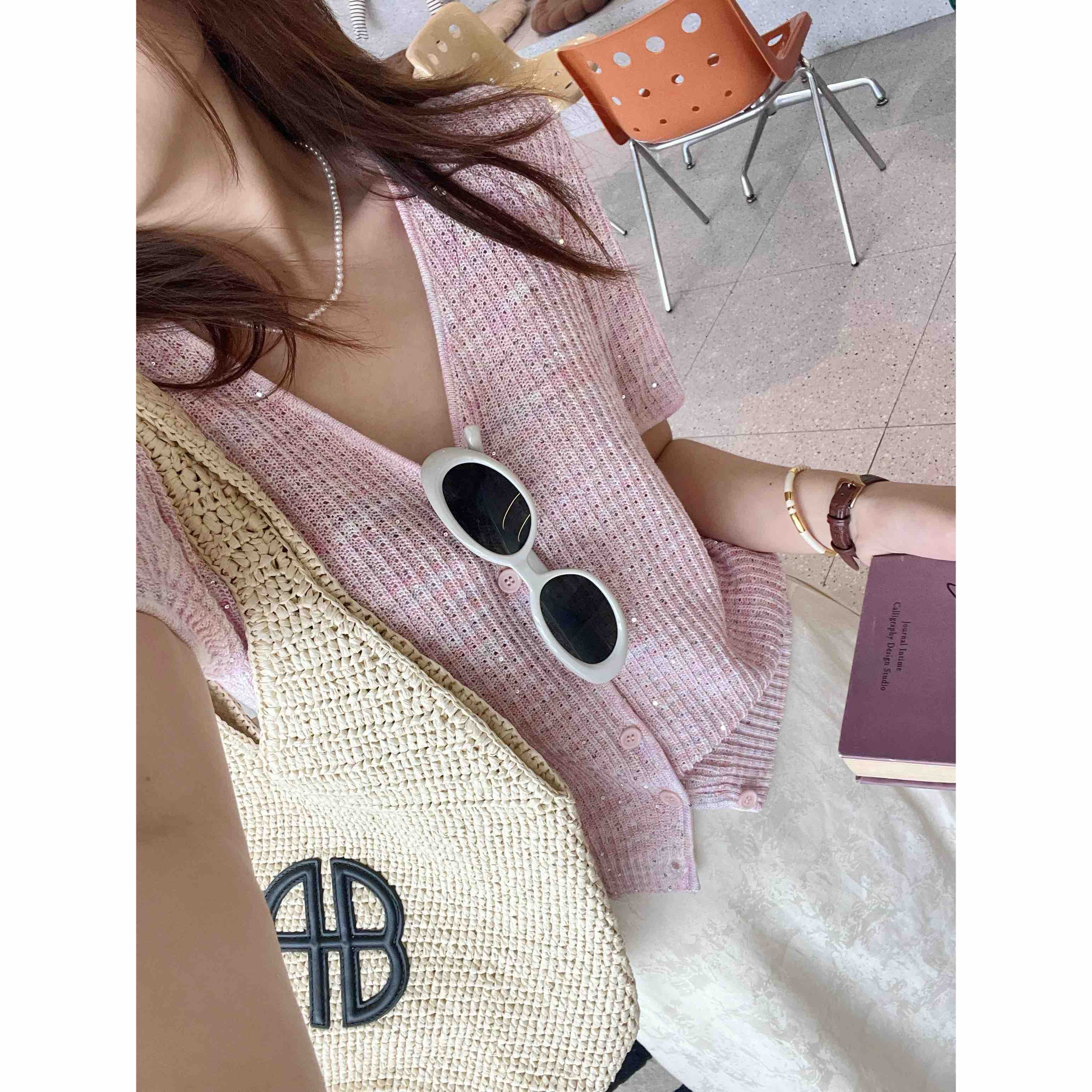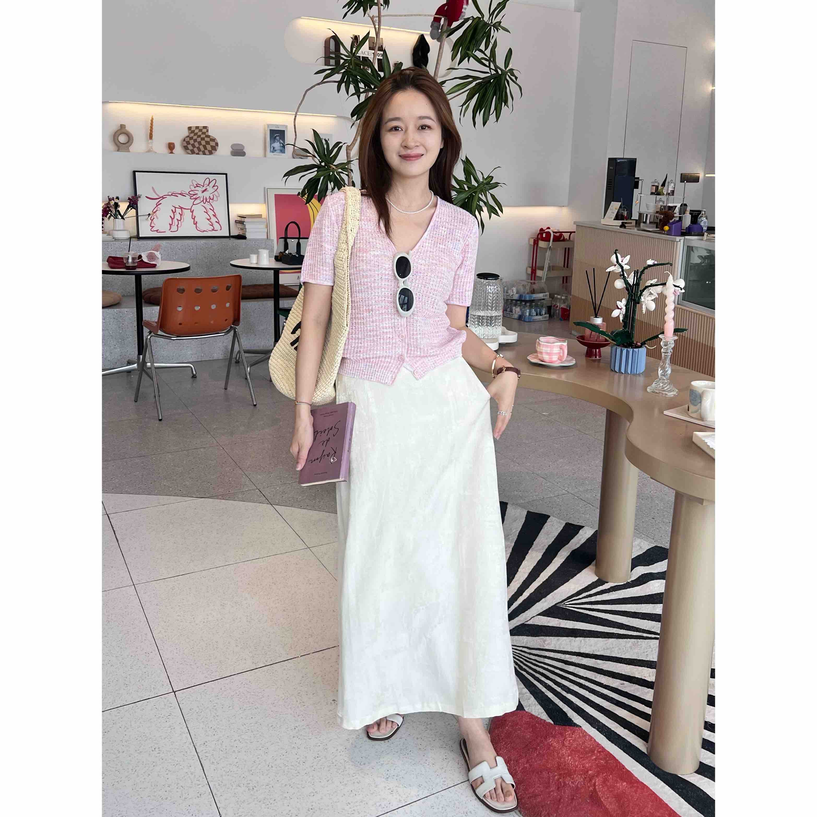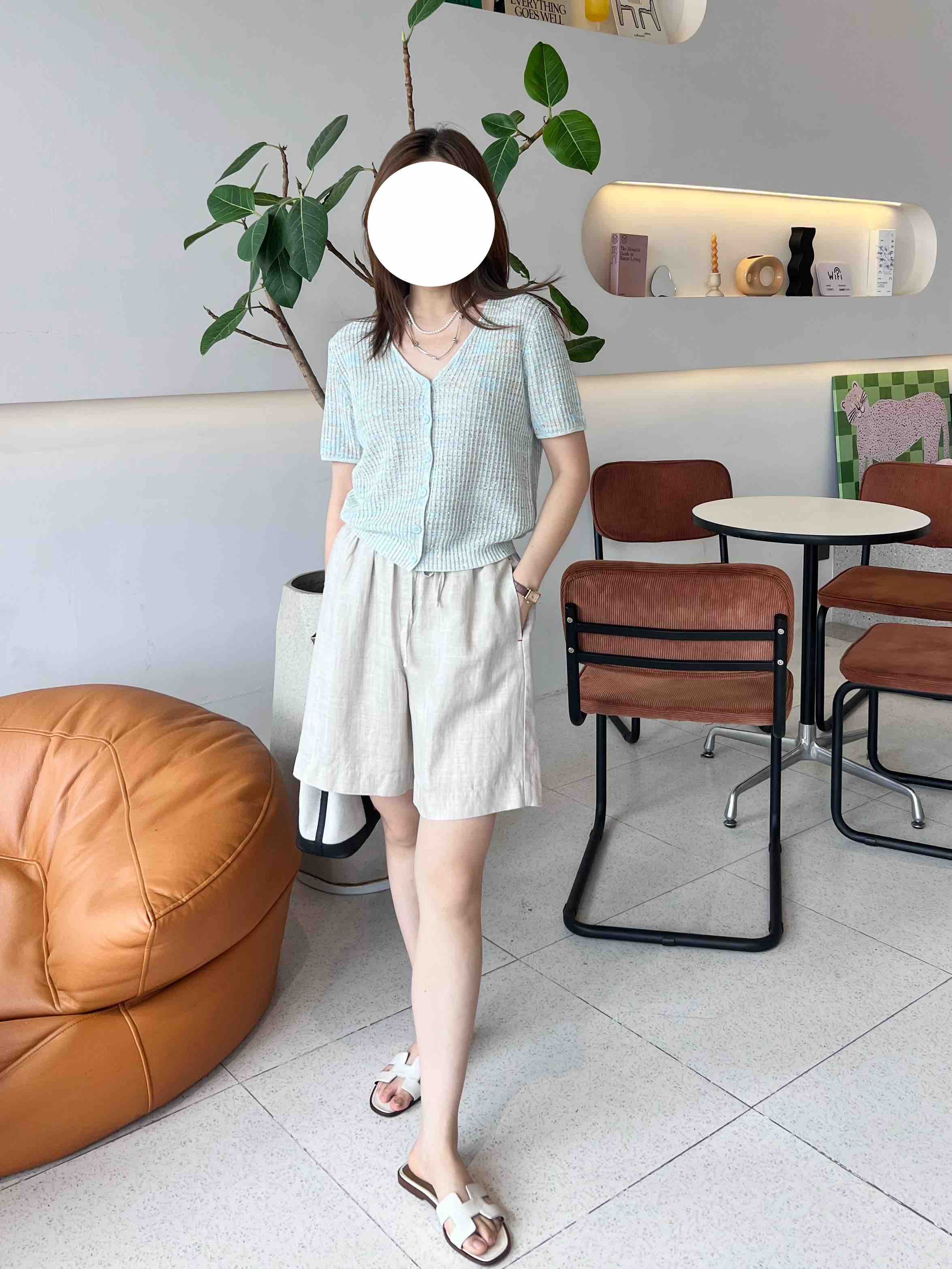 2507414 顶级“康宝莱” 亚麻珠片 短袖开衫