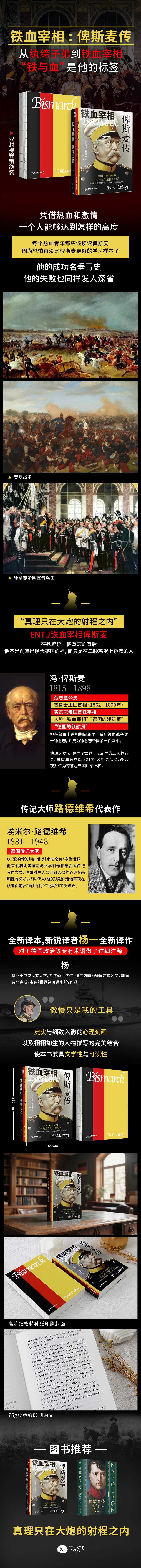 1. 德国传记大师路德维希代表作,塑造了一个有血有肉的俾斯麦形象。一部探究伟人心路历程的命运史诗。凭借热血和激情,一个人能够达到怎样的高度?每个热血青年都应该读读俾斯麦。他的成功名垂青史,他的失败也同样发人深省。