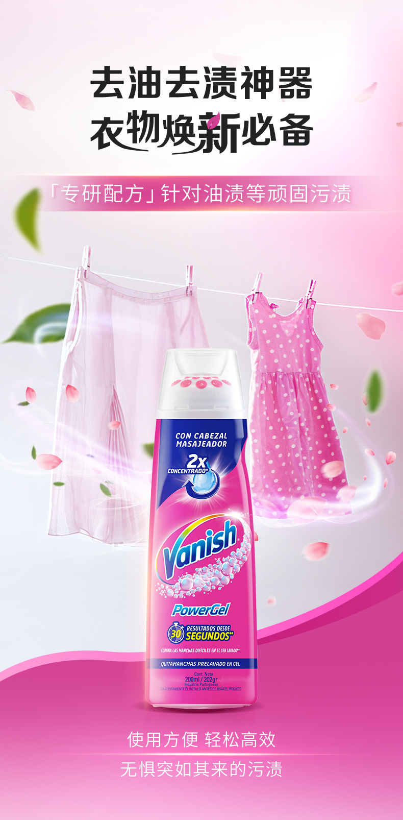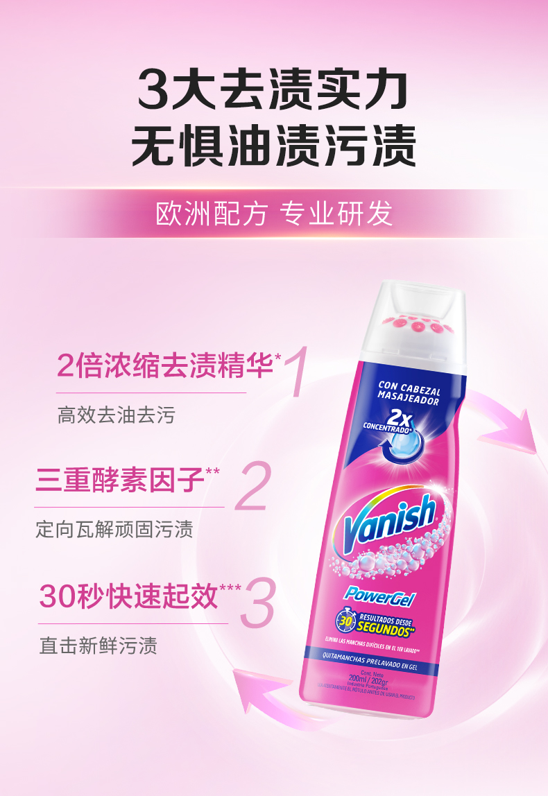 Vanish渍无踪去渍啫喱200ml 去油渍衣服油迹神器去污渍清洁剂衣物渗透剂