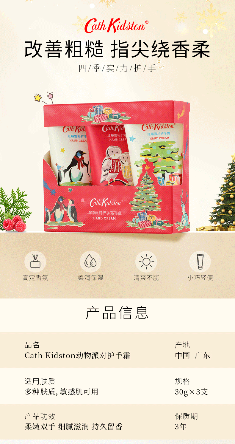 「自用或伴手礼」英国Cath Kidston · 田园小屋护手霜套盒系列 动物派对护手霜30g*3支|品牌直发
