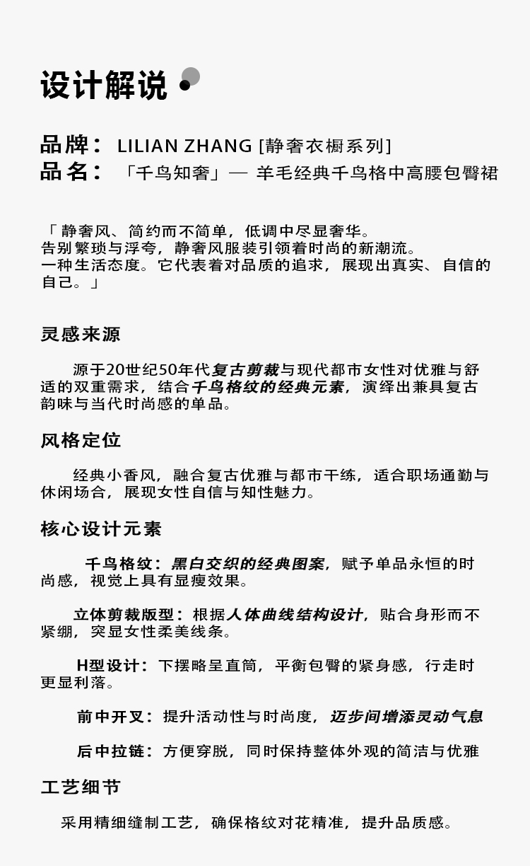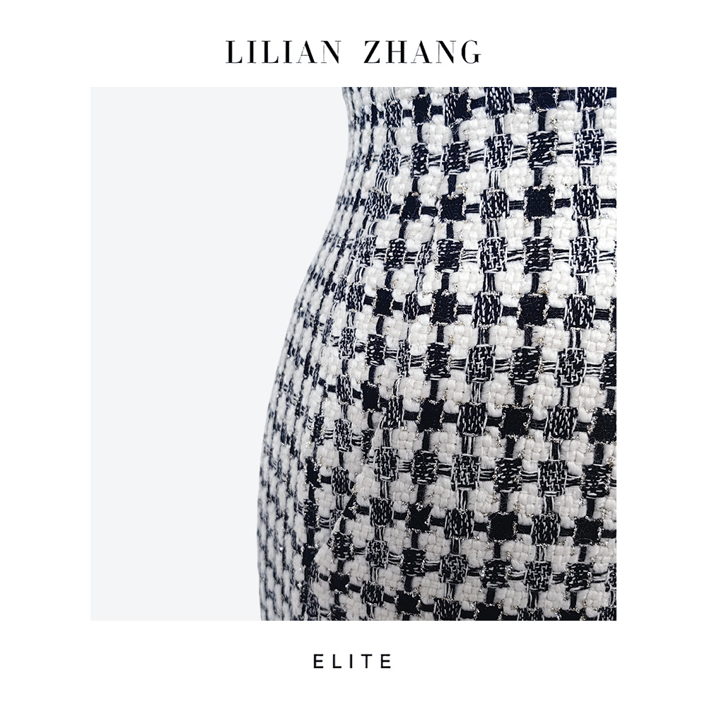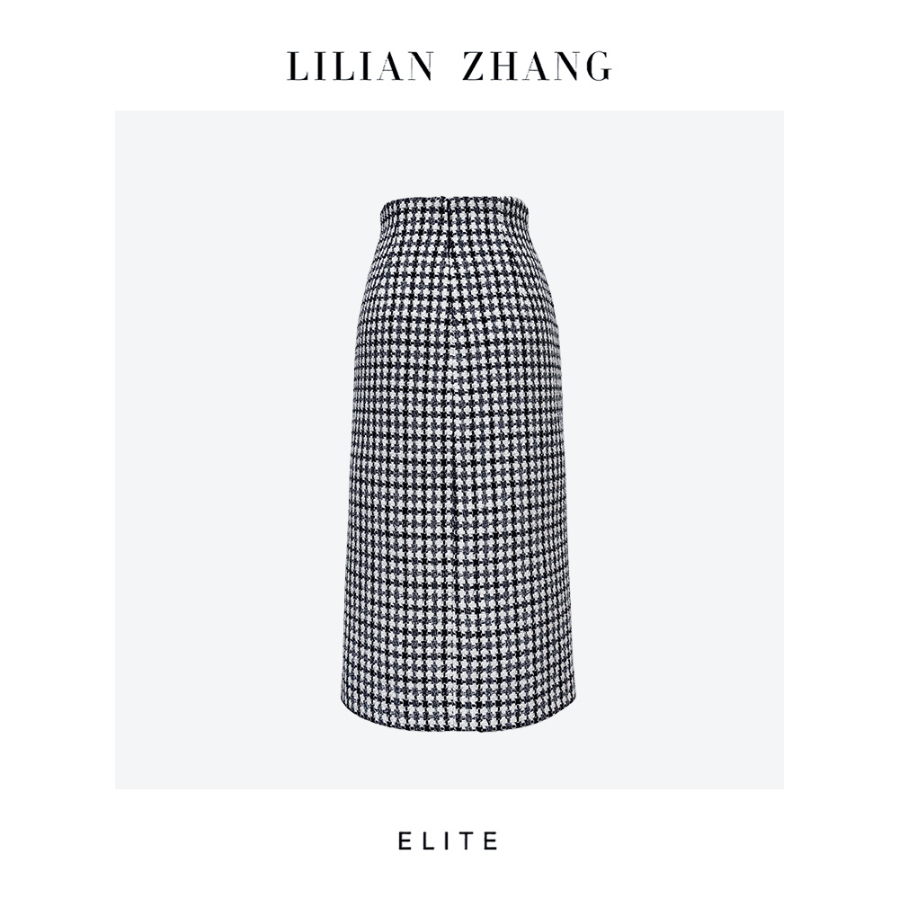 静奢风—都市摩登—千鸟知奢—羊毛经典千鸟格中高腰包臀半裙2503020