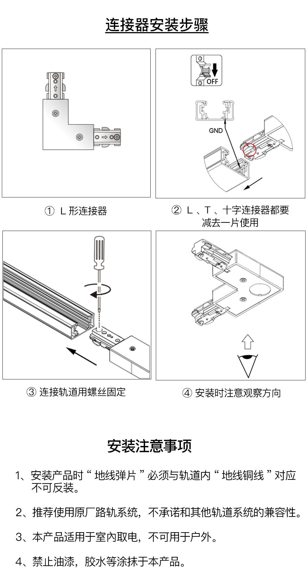 伽罗JALO 轨道射灯L形连接器:适用于连接两条台湾Powergear三线一回路轨道,黑白两色可选