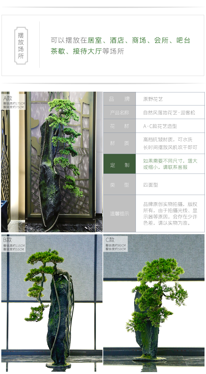 酒店仿真迎客松商场软装大型绿植假松树造型高档落地景观摆件摆设