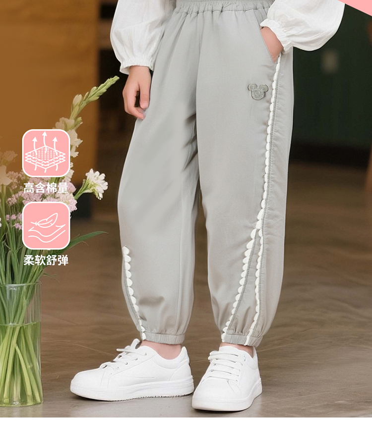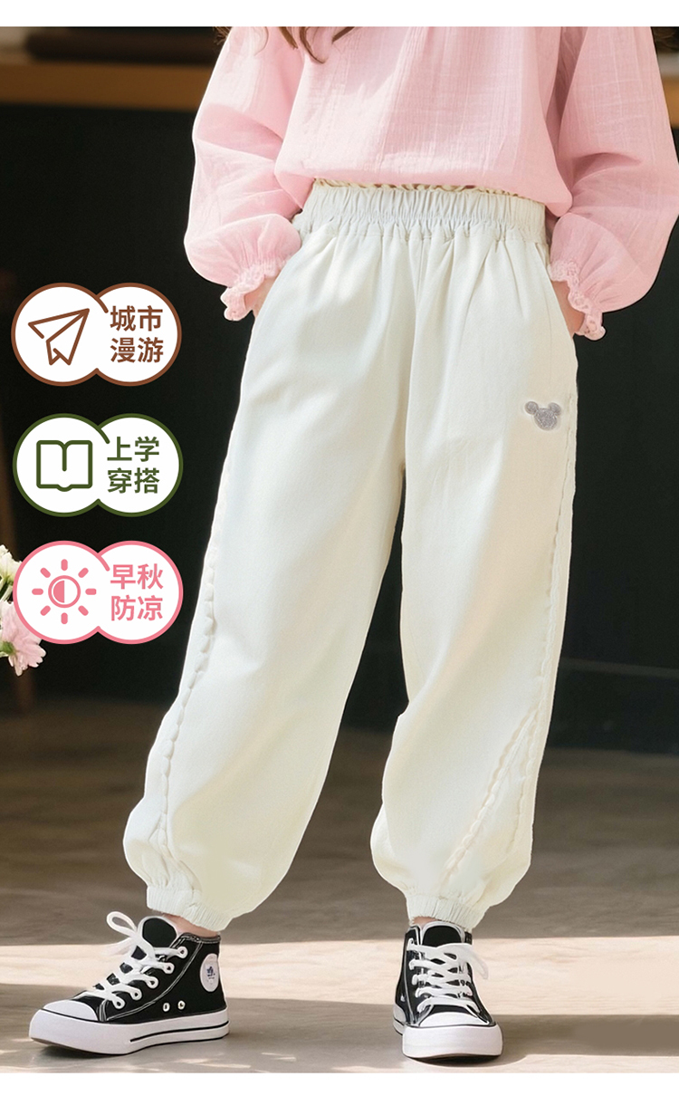 迪士尼2025春秋新款女童休闲裤中大童运动跑步长裤女孩百搭亲肤卫裤XD1EK042