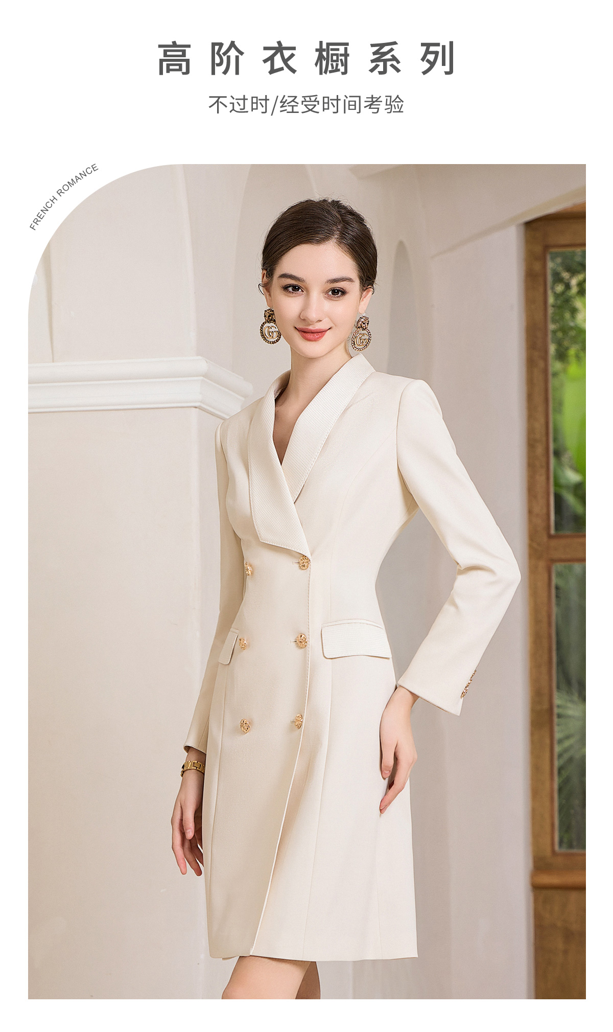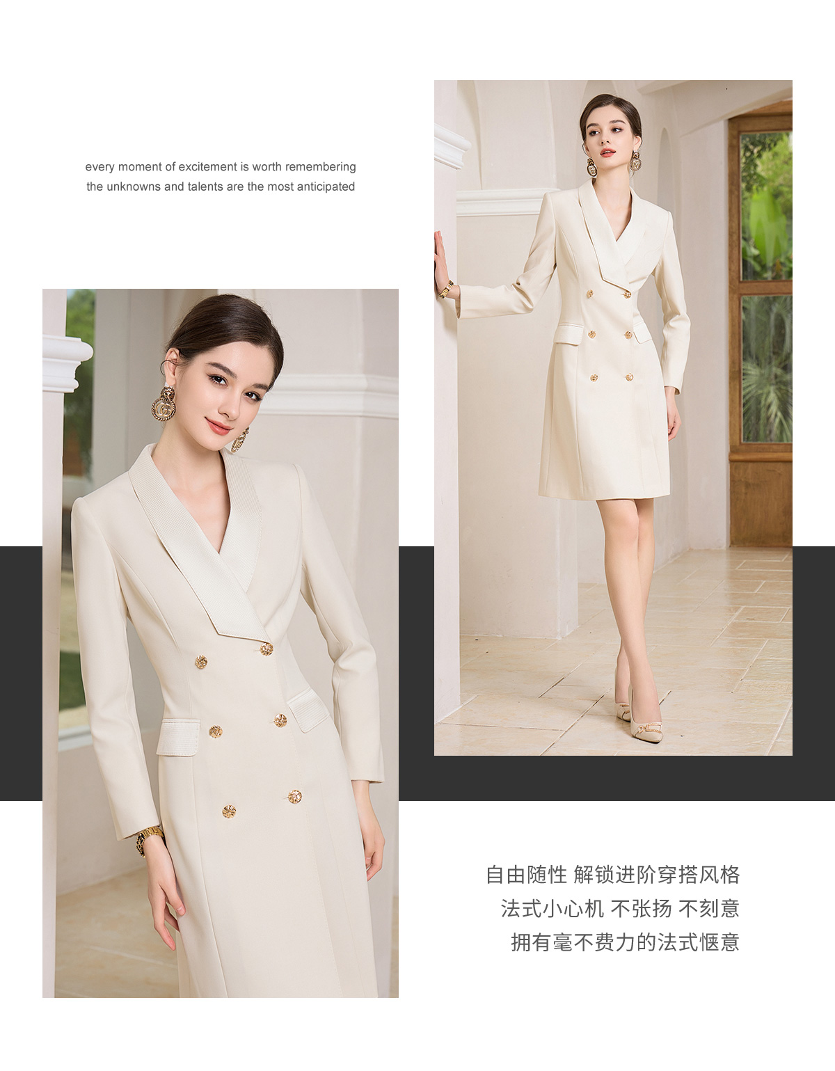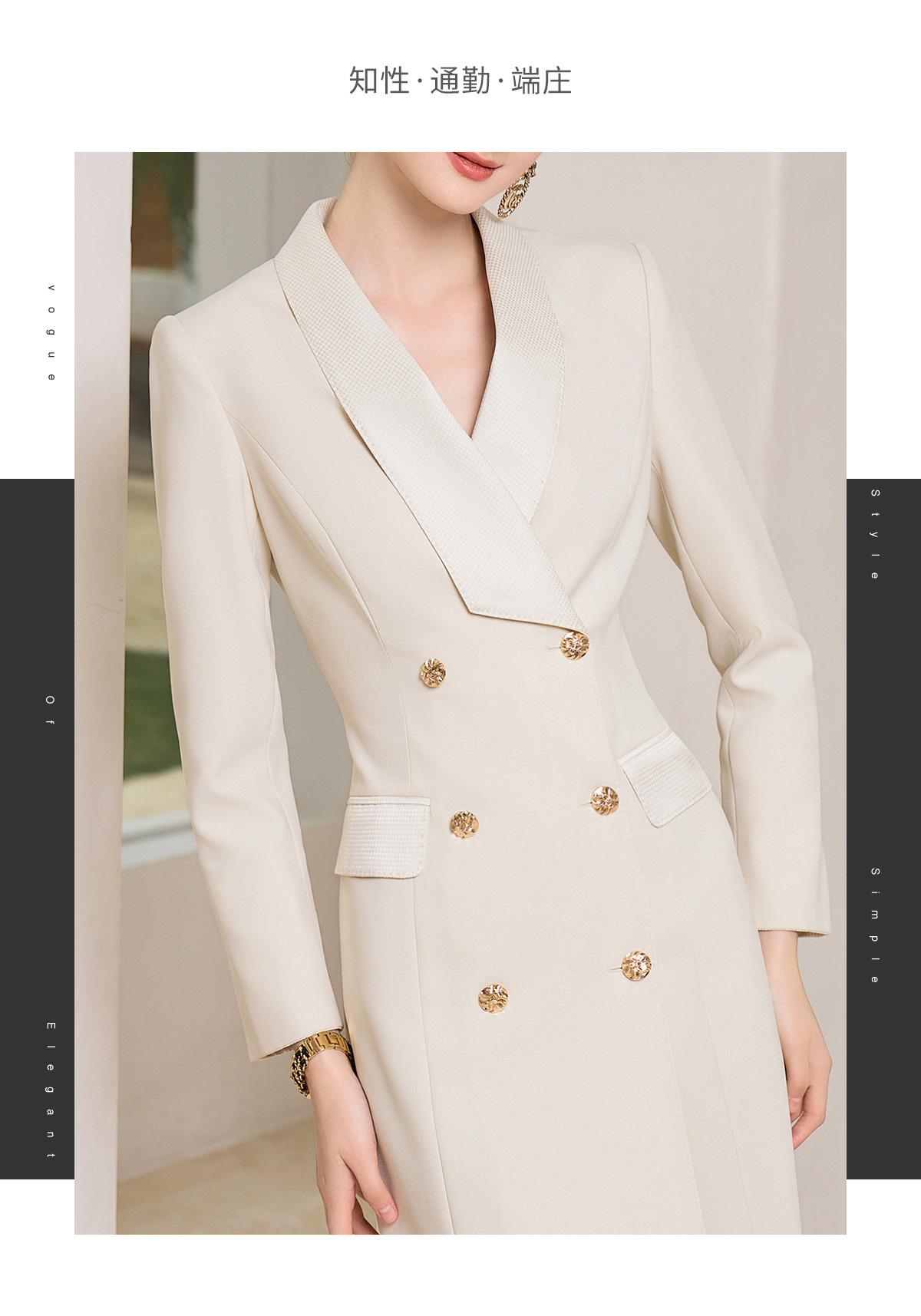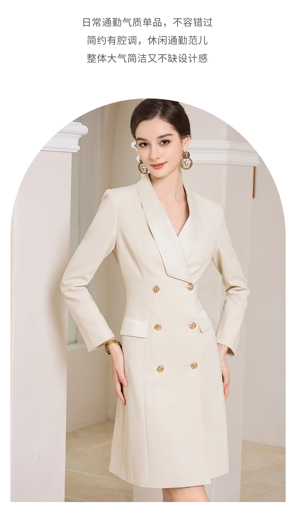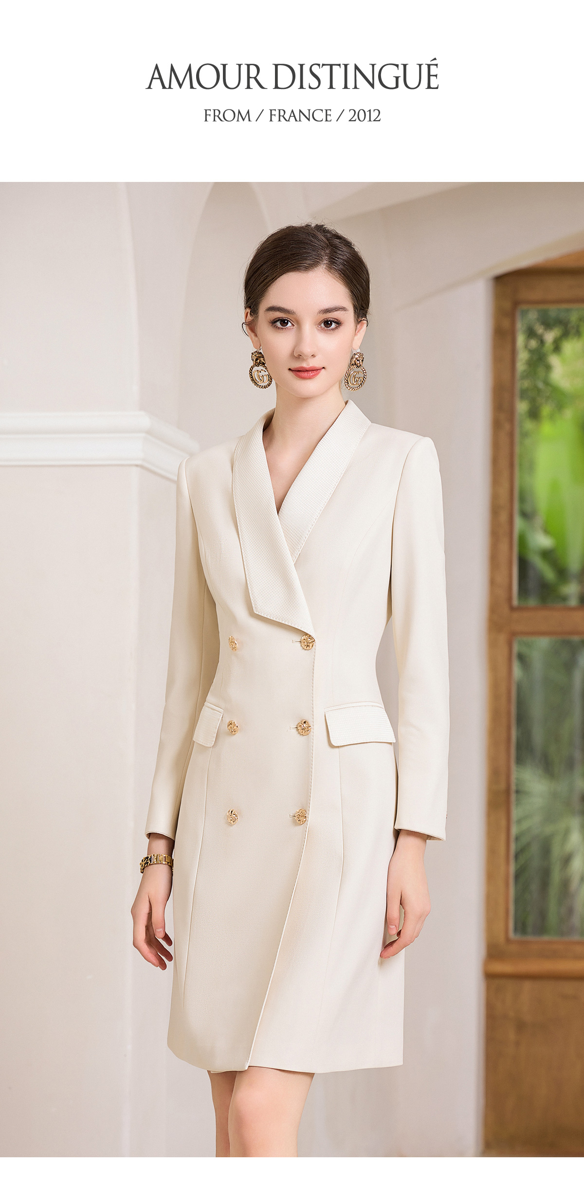 AD缎面连衣裙女2023新款米色长袖西服裙时尚气质正装连身裙