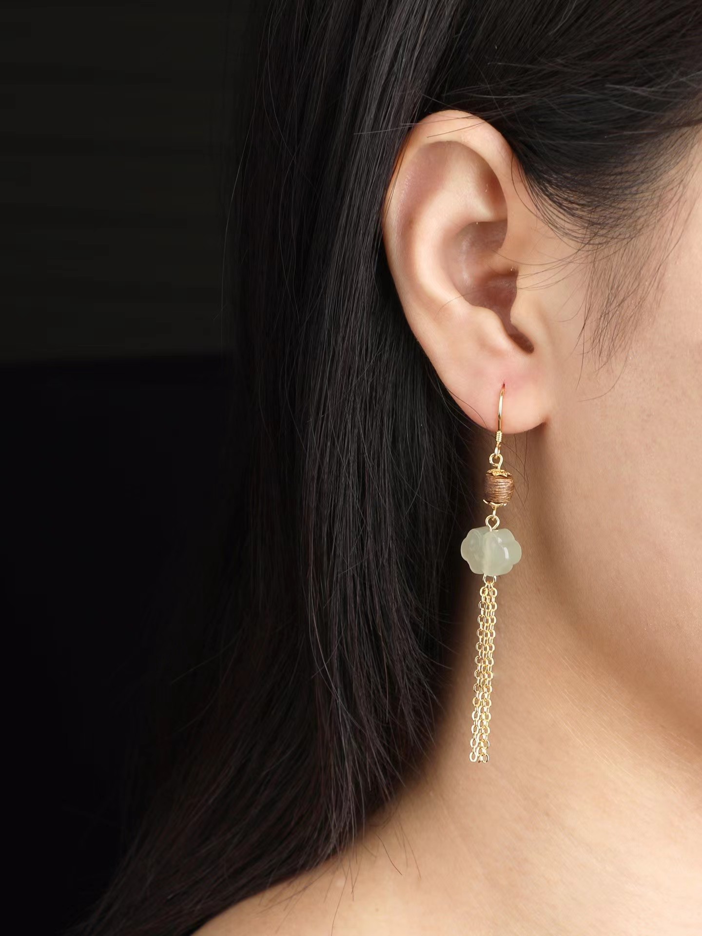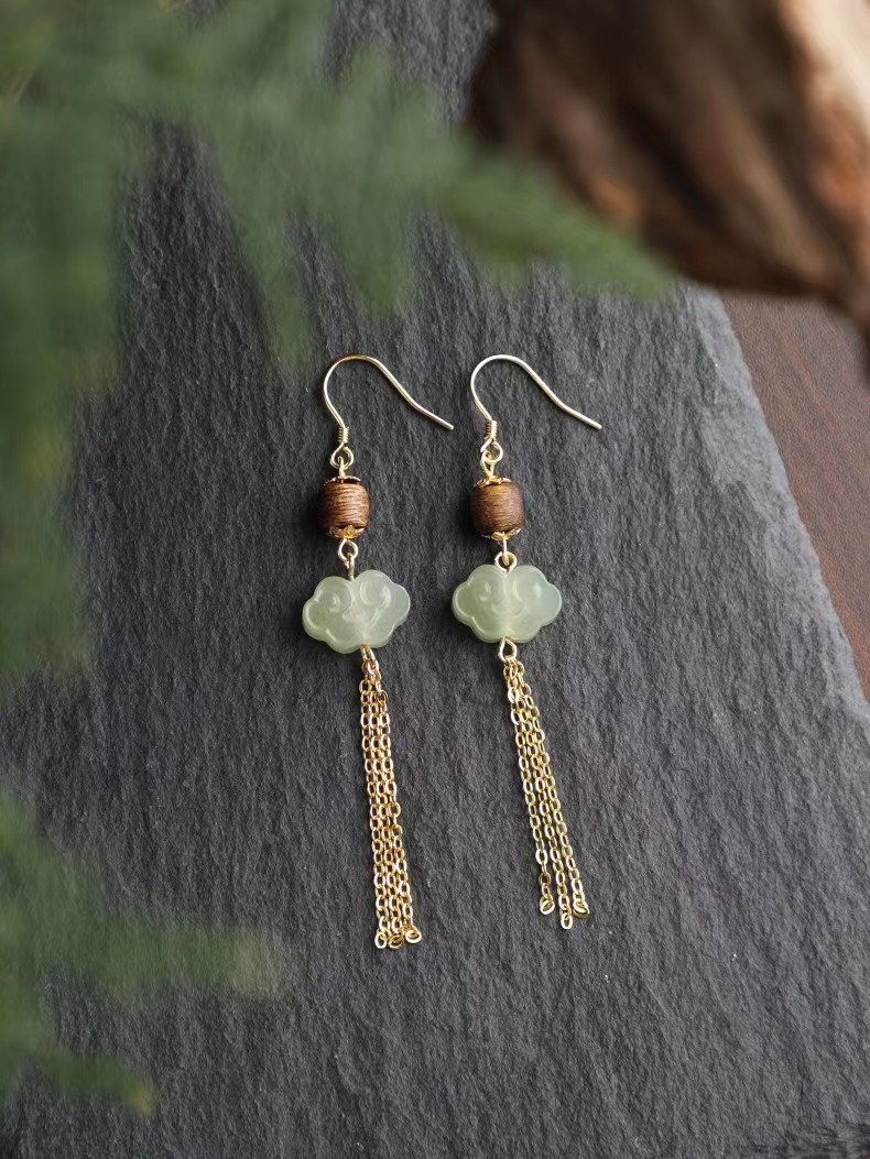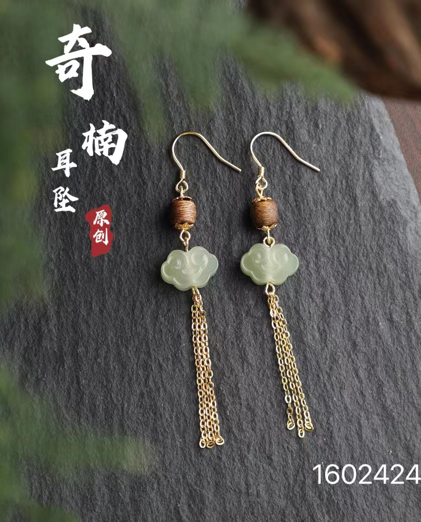 0.6鼓珠如意和田玉耳环