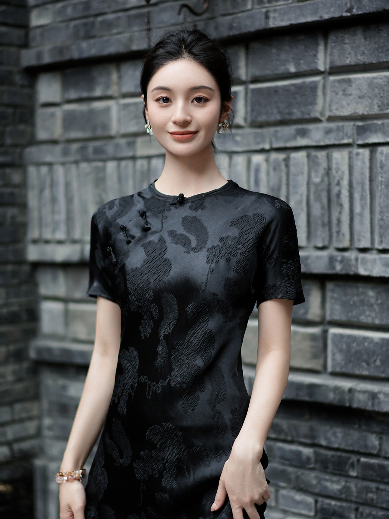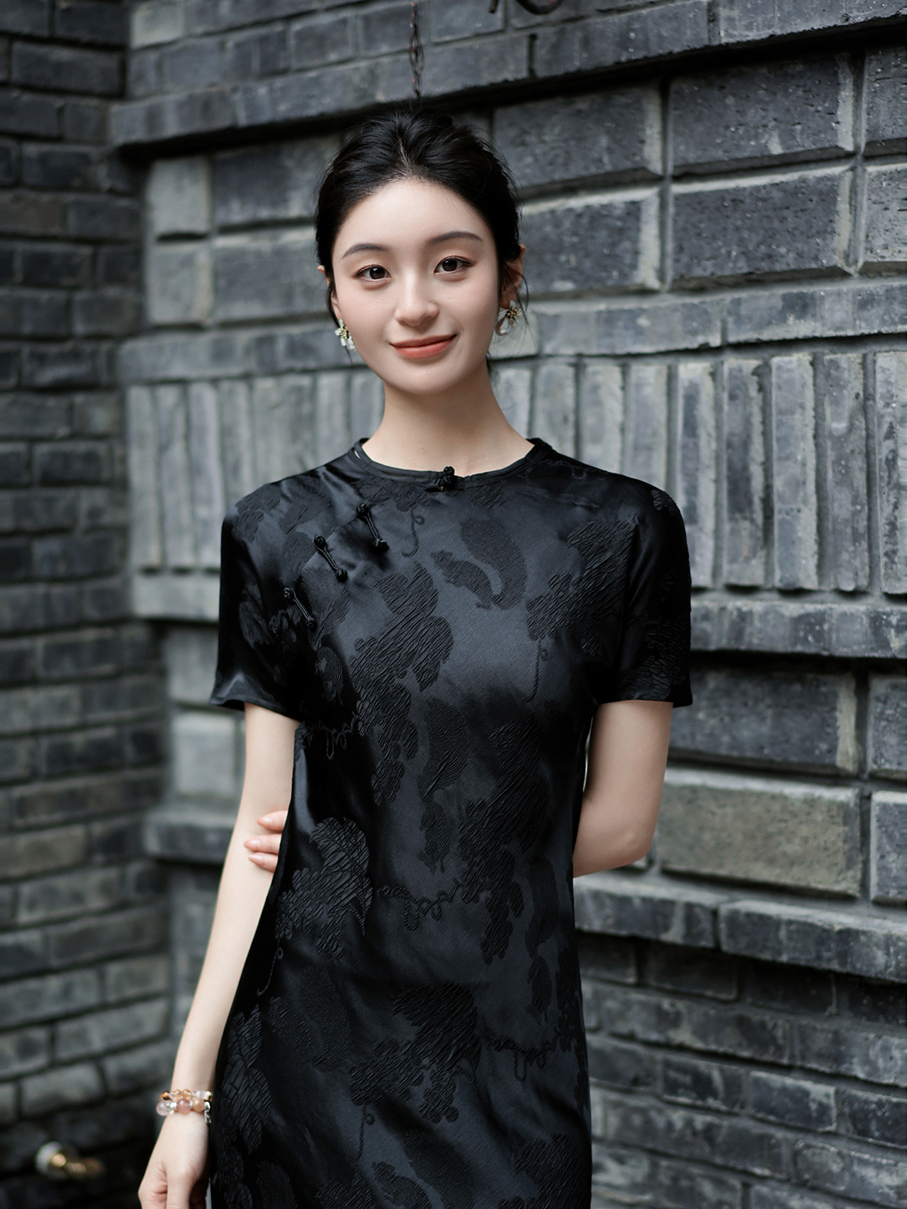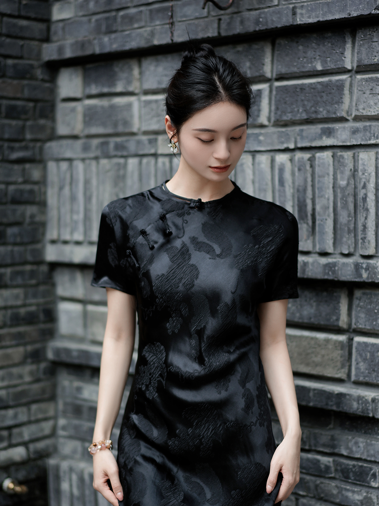盛唐牡丹| 黑色短袖旗袍裙(黑松鼠)