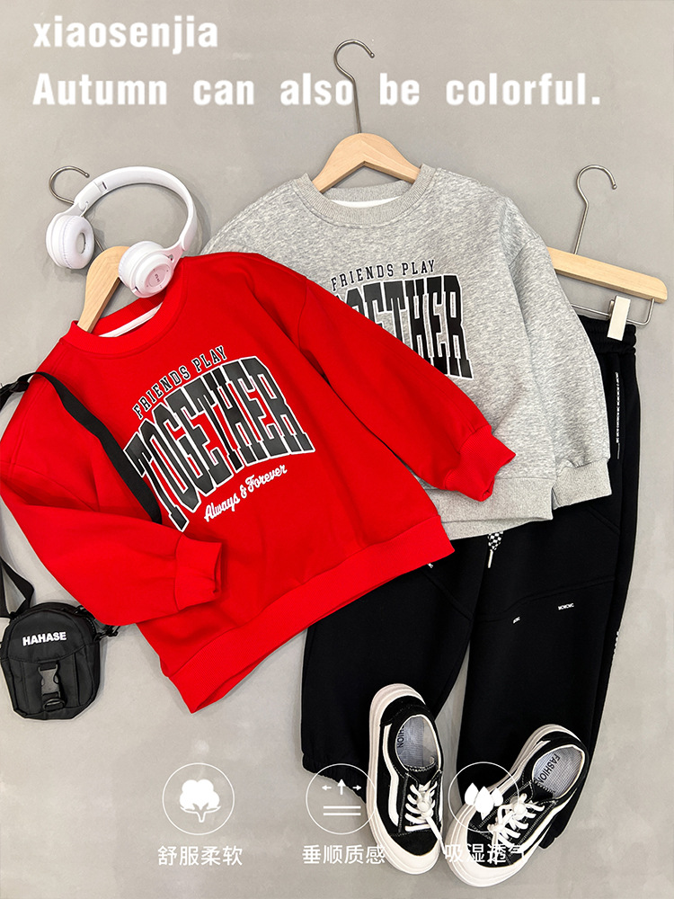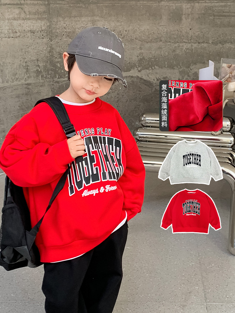 【男女同款❗️儿童加绒卫衣】国标母婴级A类标准,面料柔软舒适,亲肤透气,2026新款秋冬款红色洋气保暖上衣长袖潮外套QQ