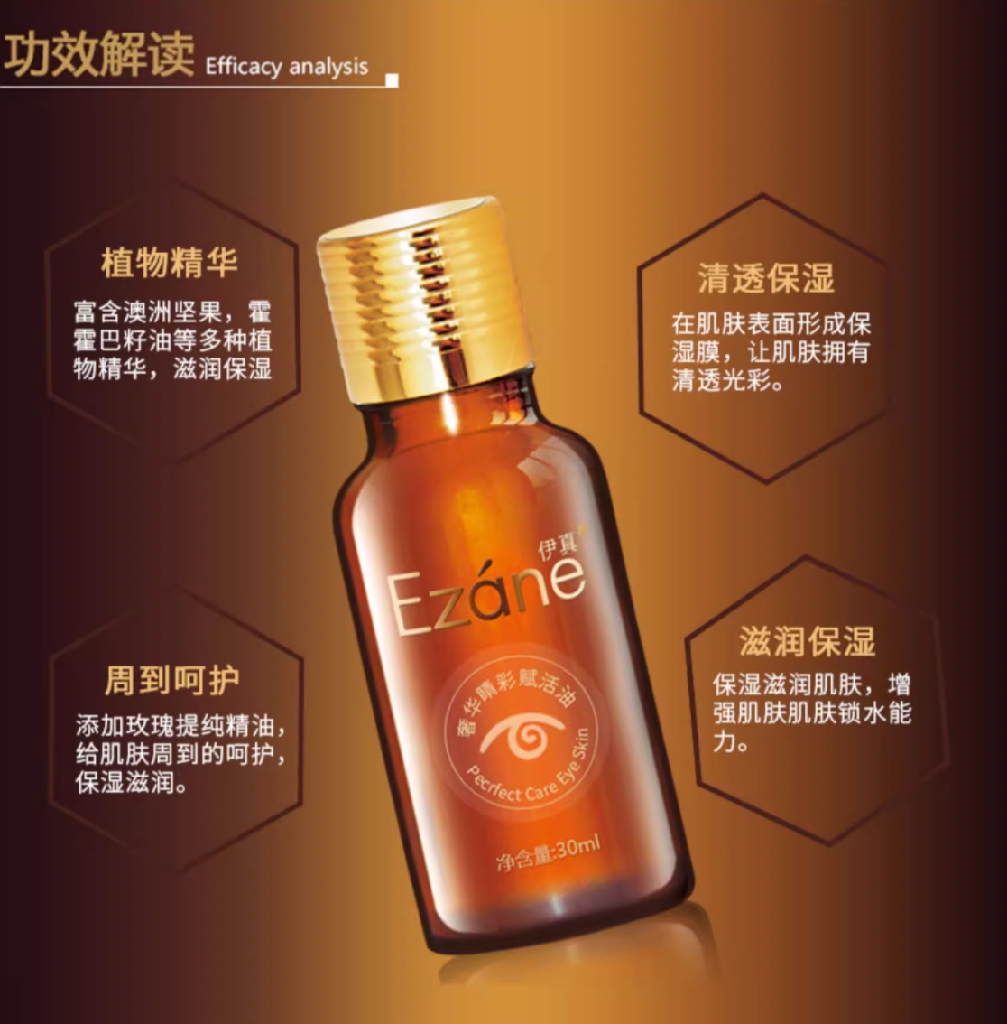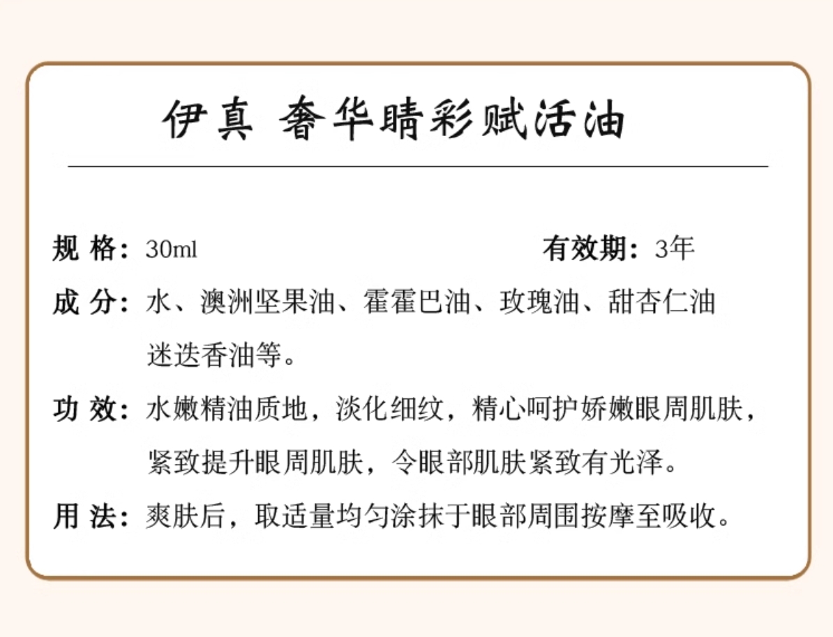 《眼部精华》伊真 奢华睛彩赋活油30ml 滋润保湿补水 紧致淡纹按摩眼精华