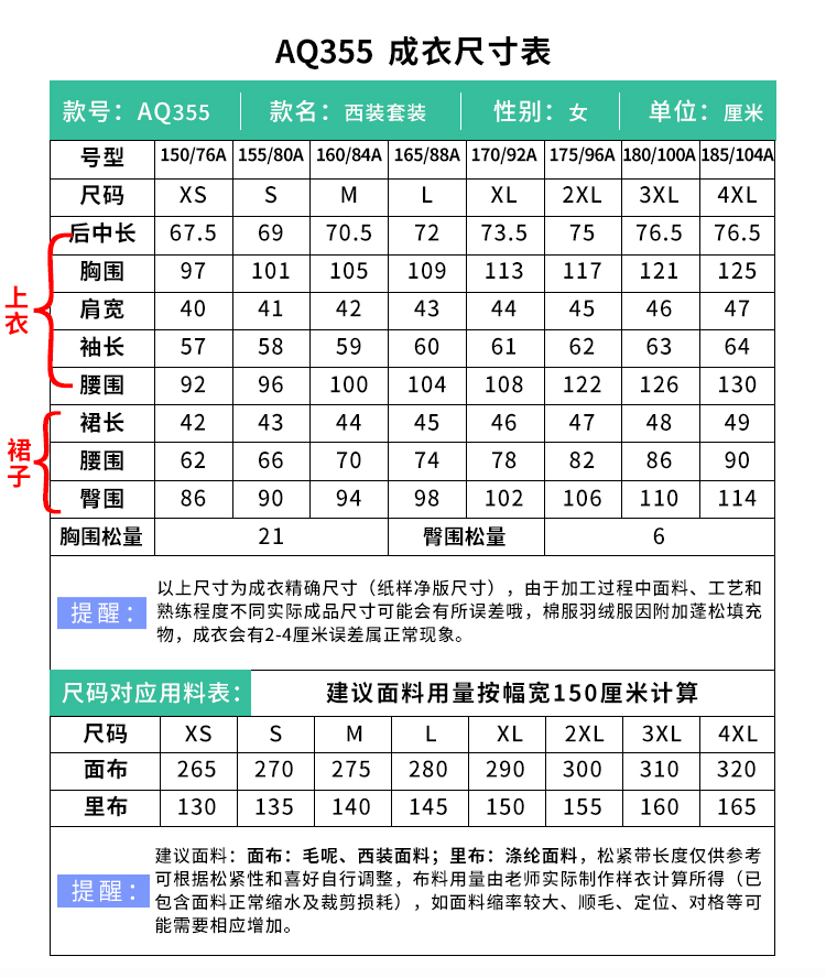 裁缝学苑AQ355小香风毛呢西装纸样半身裙女装学院风套装样板