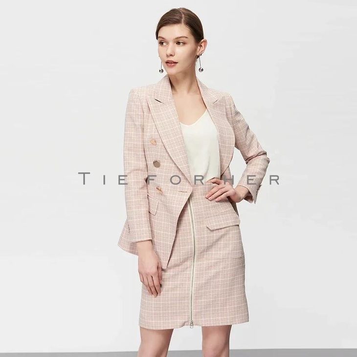 19SSDU118 玫瑰粉格纹西装半裙两件套
