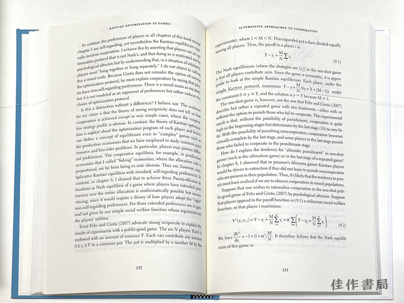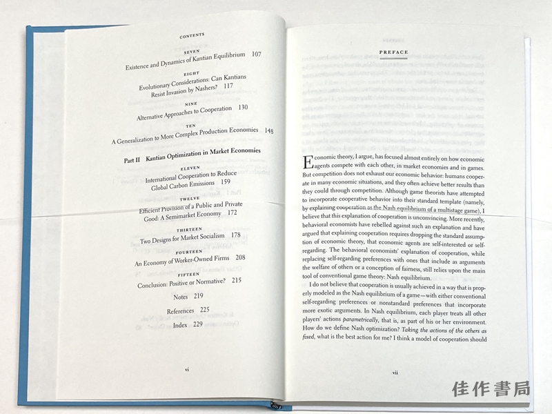 Game theory explains competitive behavior by working from the premise that people are self-interested. People don’t just compete, however; they also cooperate. John Roemer argues that attempts by orthodox game theorists to account for cooperation leave much to be desired. Unlike competing players, cooperating players take those actions that they would like others to take—which Roemer calls “Kantian optimization.” Through rigorous reasoning and modeling, Roemer demonstrates a simpler theory of cooperative behavior than the standard model provides.