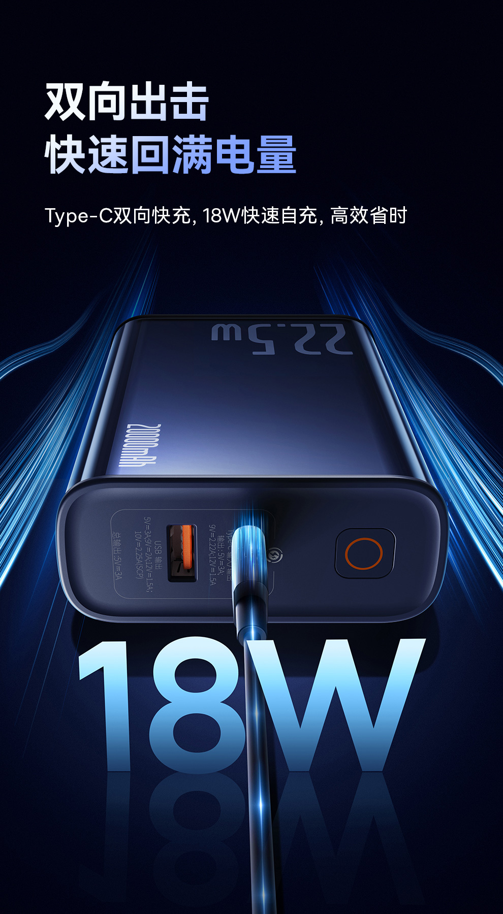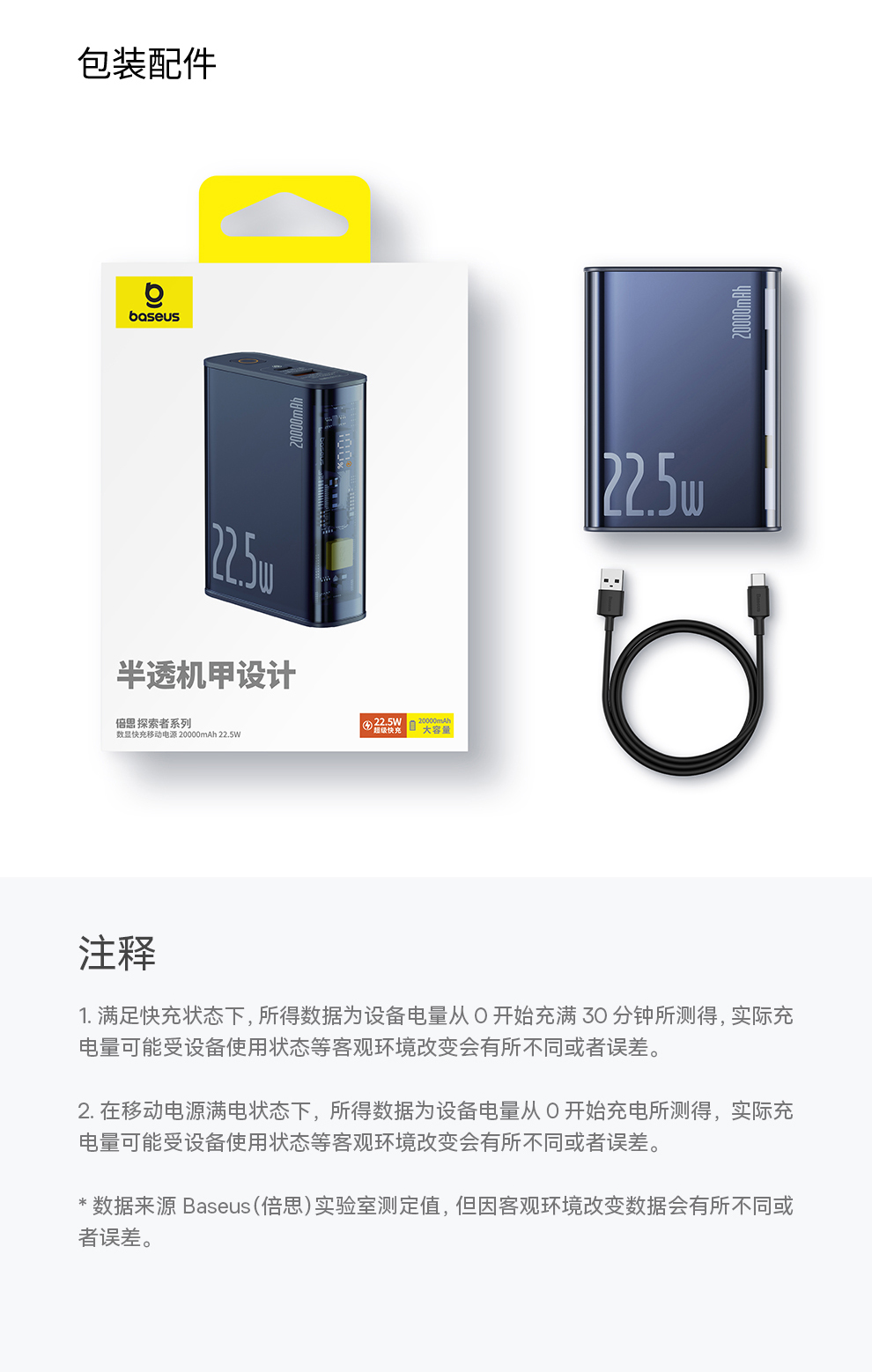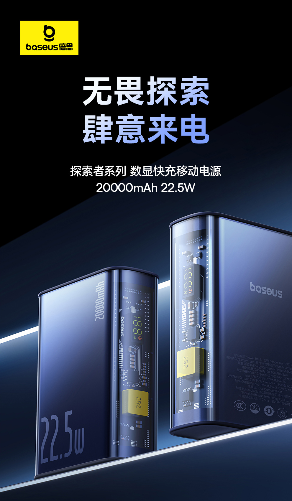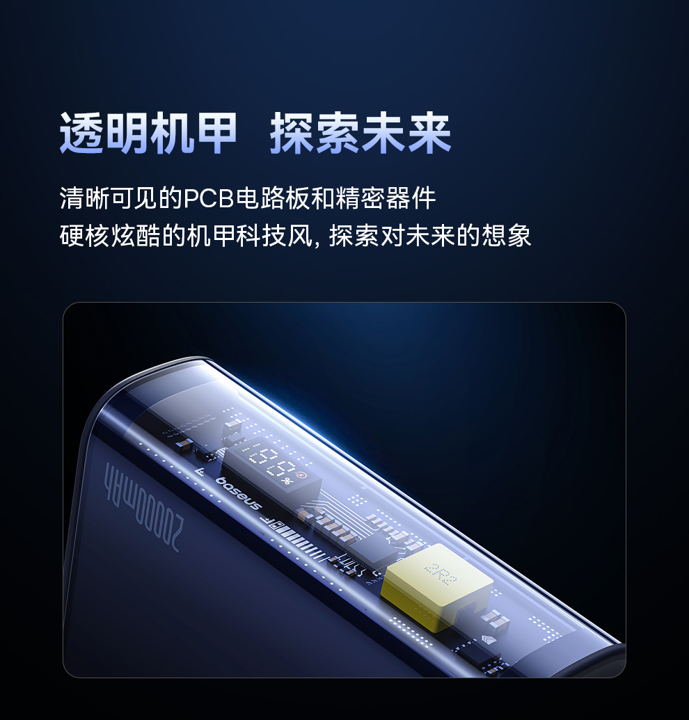 倍思 探索者系列 数显快充移动电源10000mAh/10000mAh 22.5W 雾夜蓝