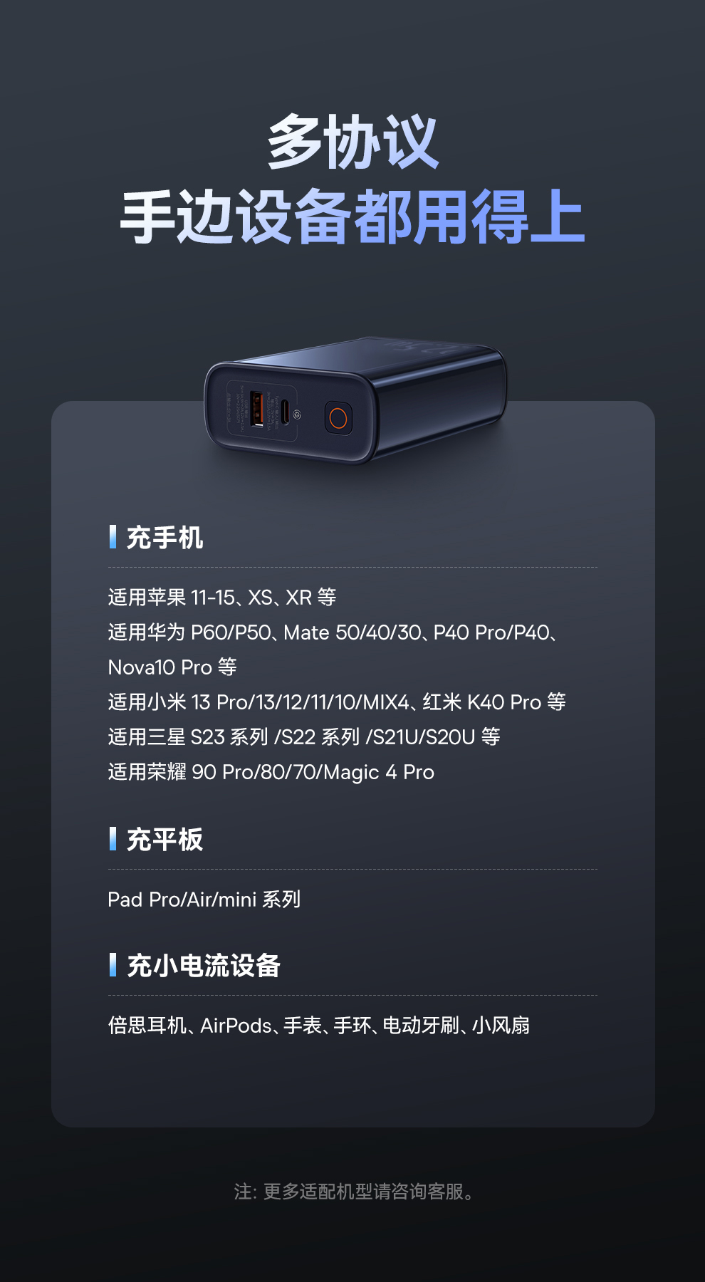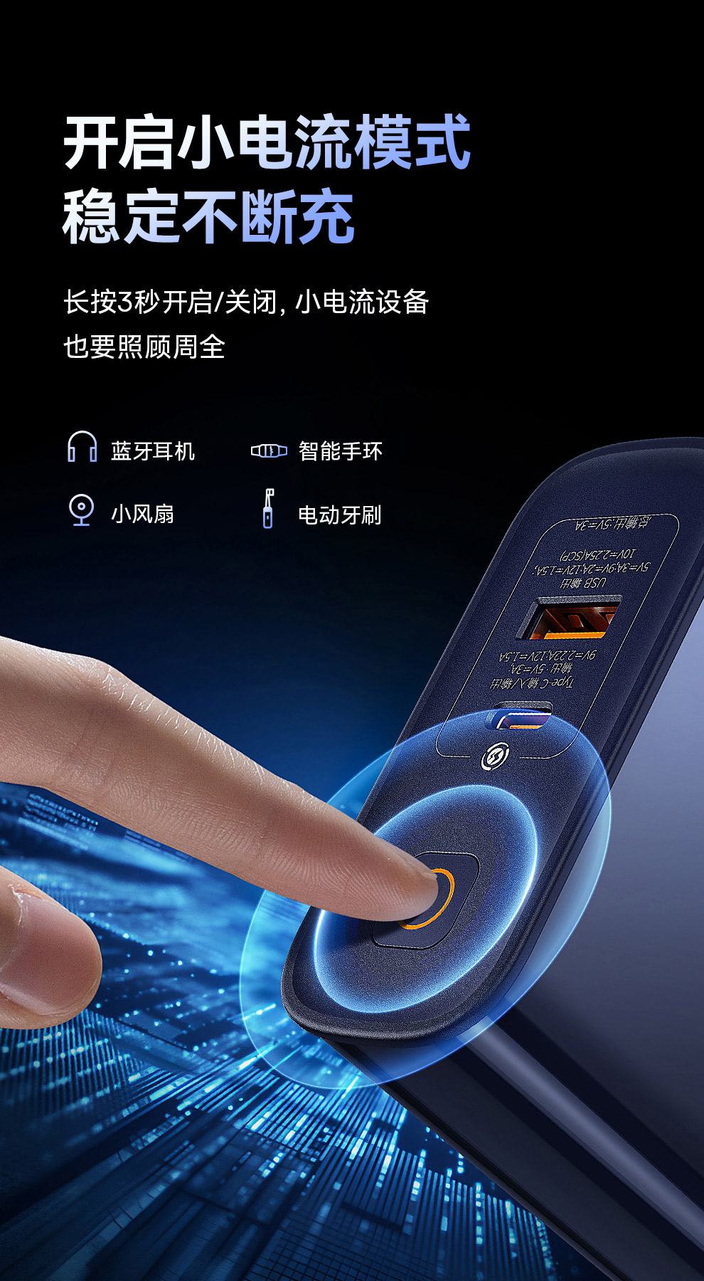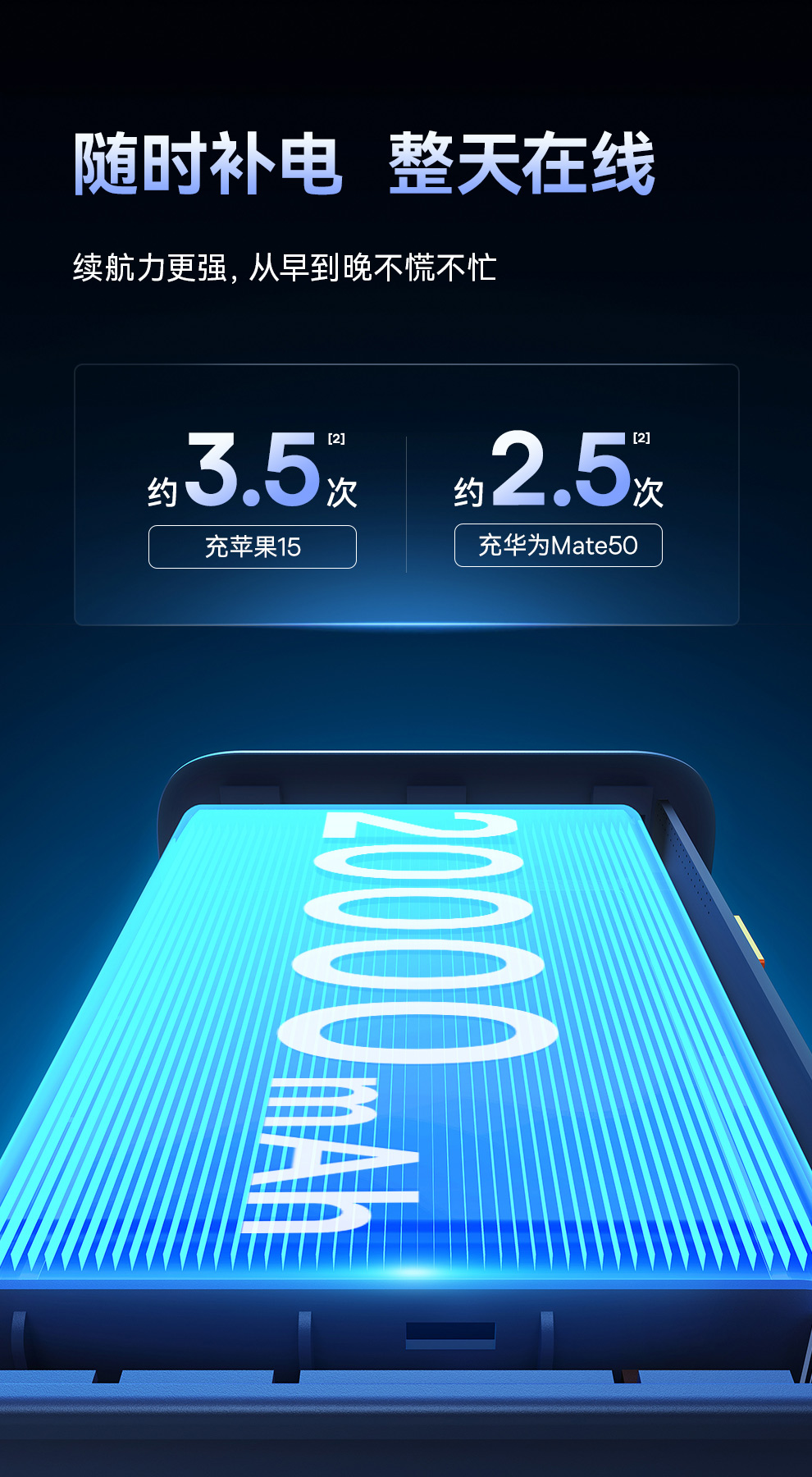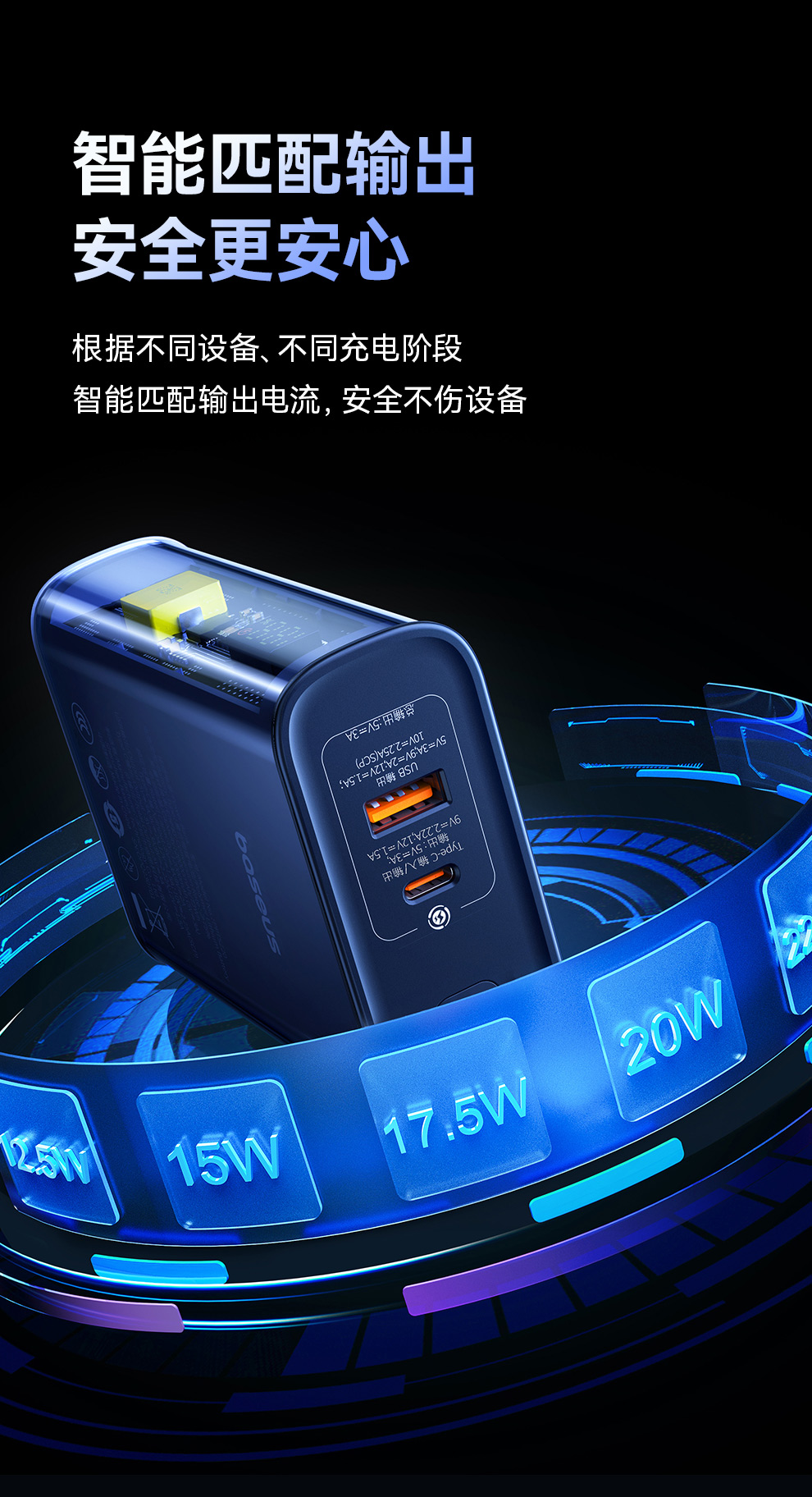 倍思 探索者系列 数显快充移动电源10000mAh/10000mAh 22.5W 雾夜蓝