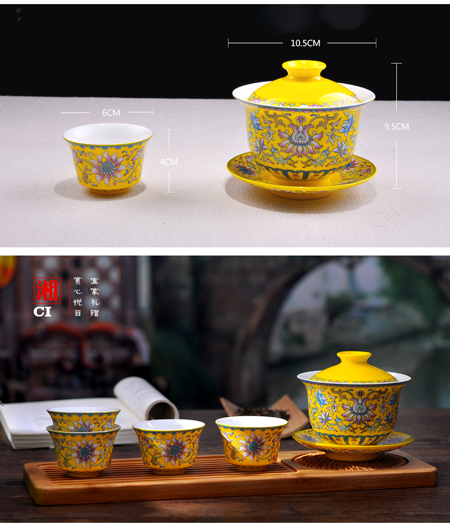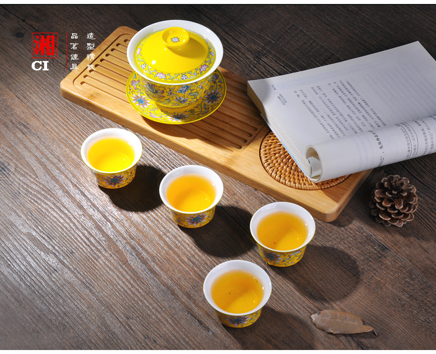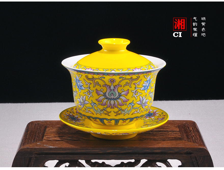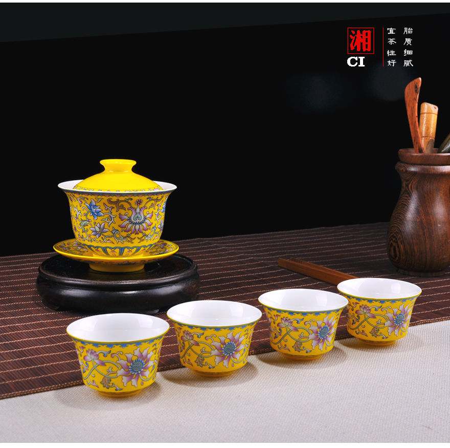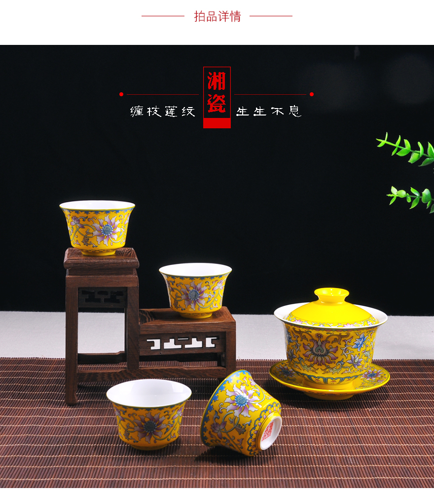 【湘瓷】功夫茶具《缠枝纹》黄