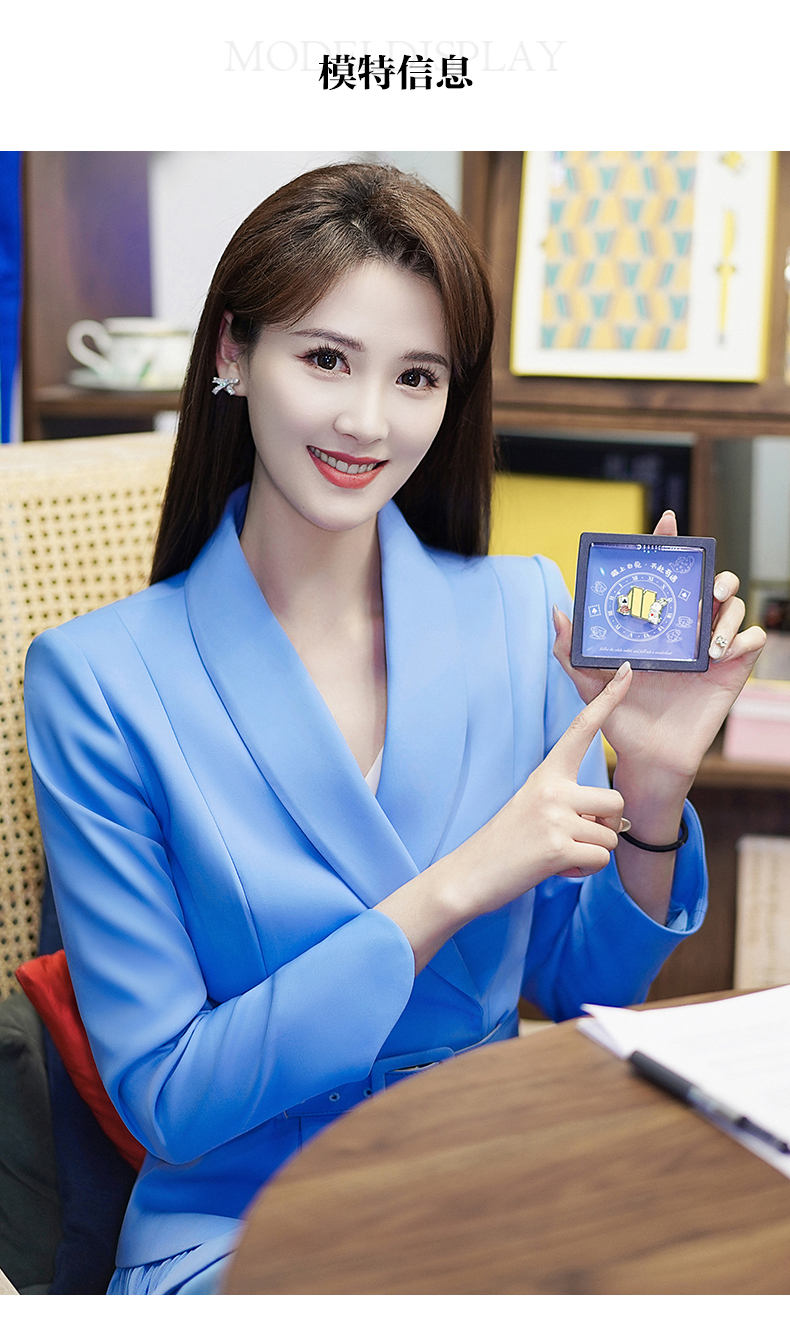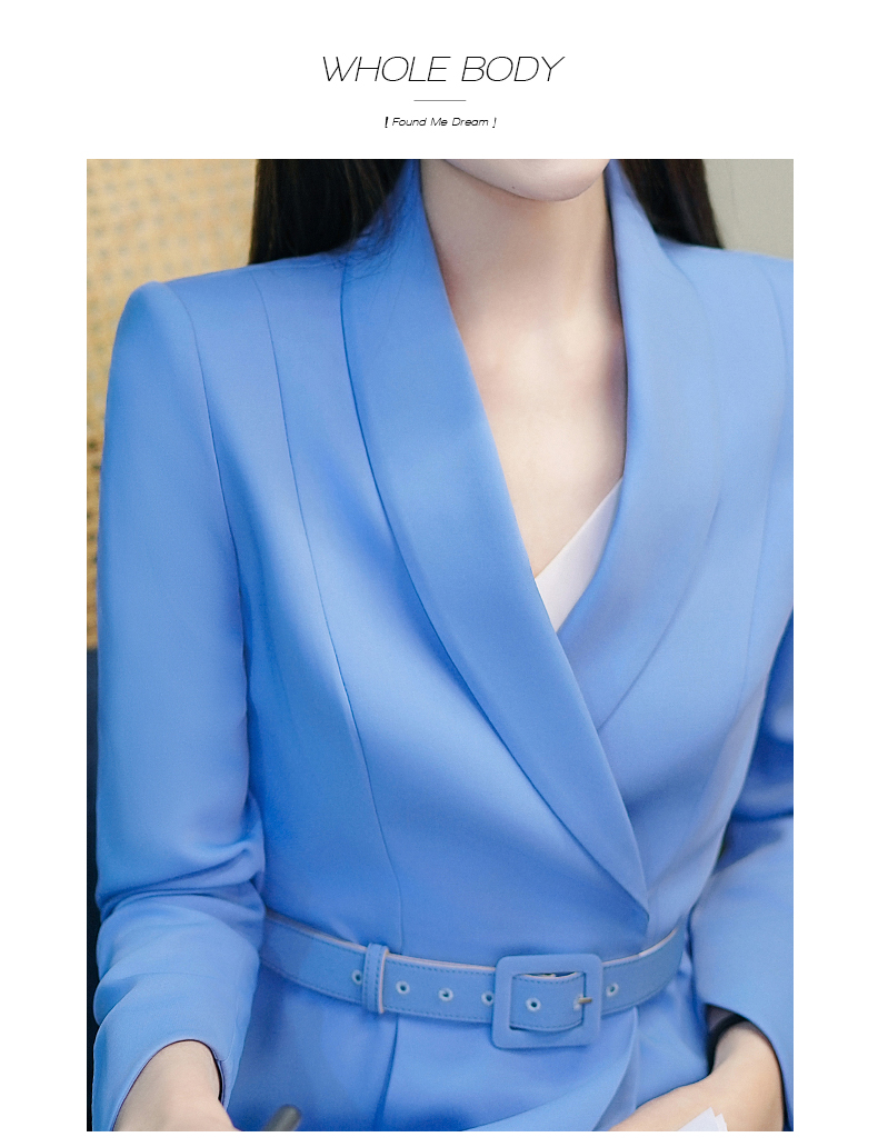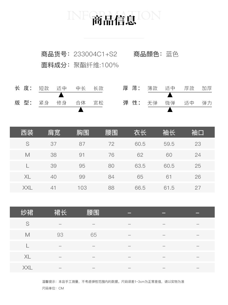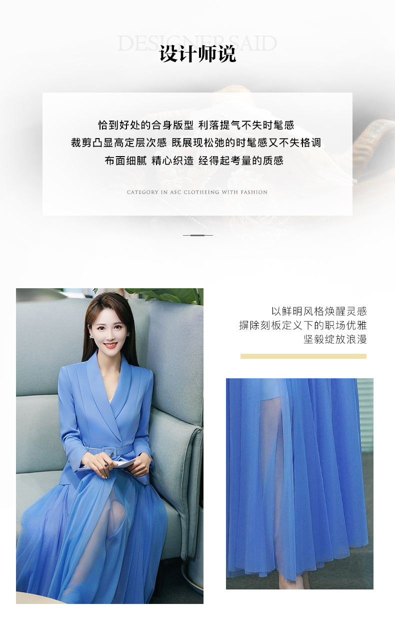 高端时尚蓝色西装纱裙套装绑带西服播音艺考主持人职业女装套裙