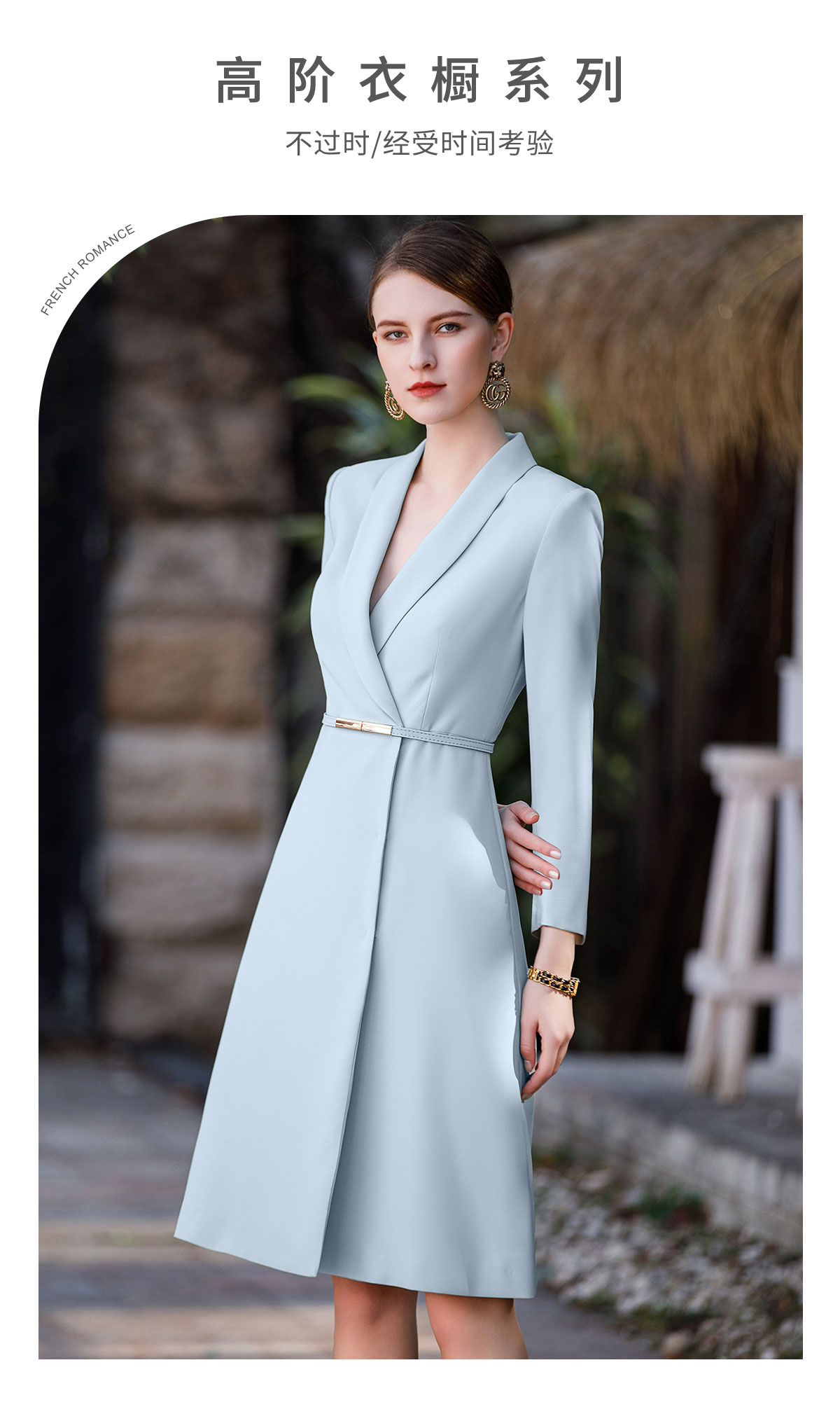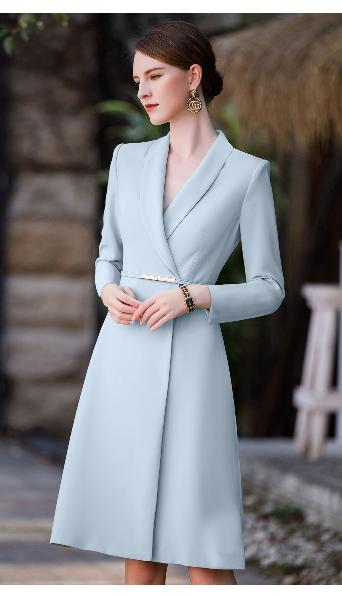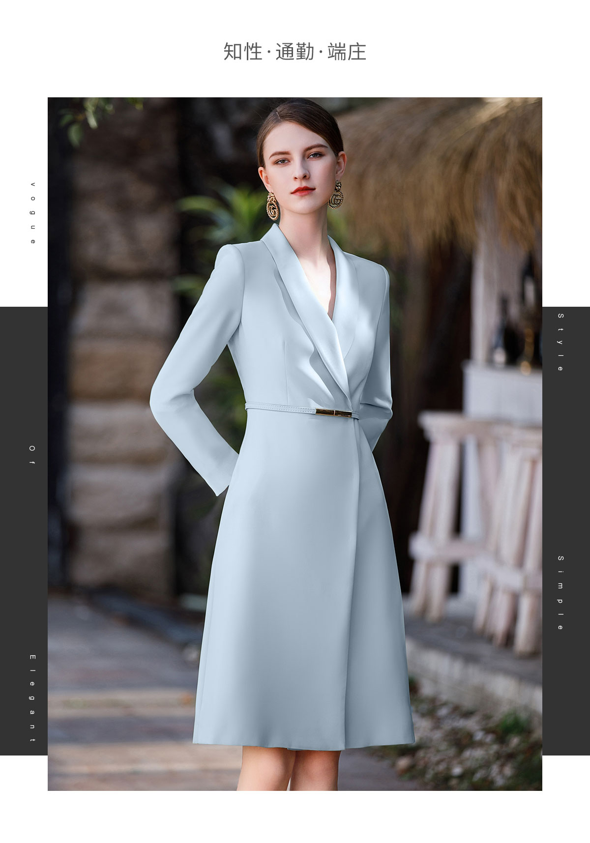 长袖连衣裙女正式场合职业西装裙中长款主持人正装