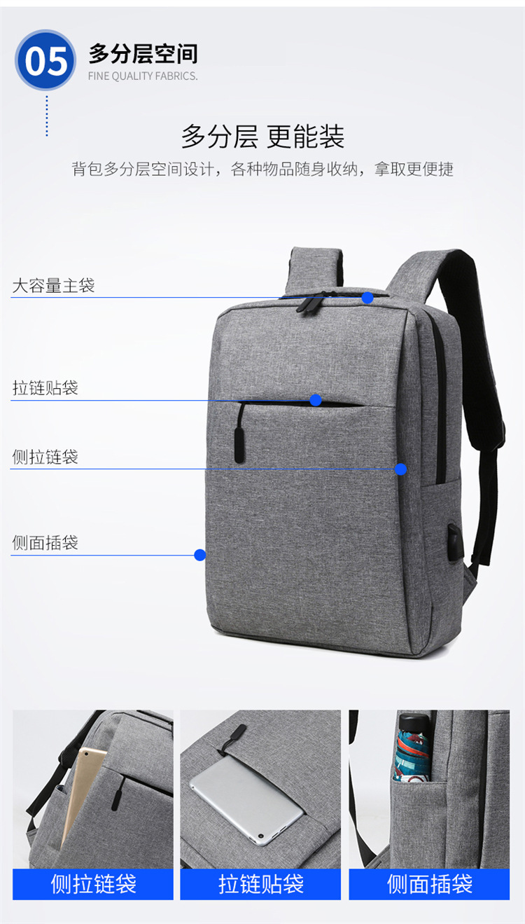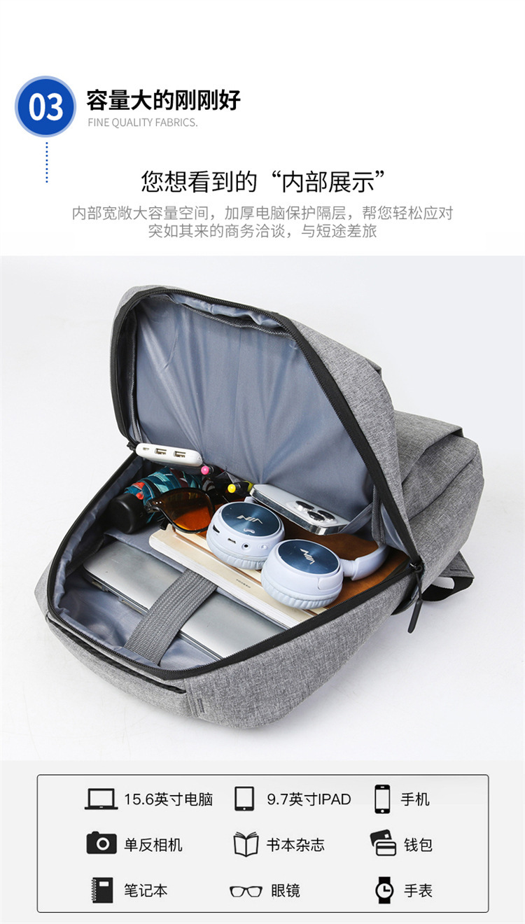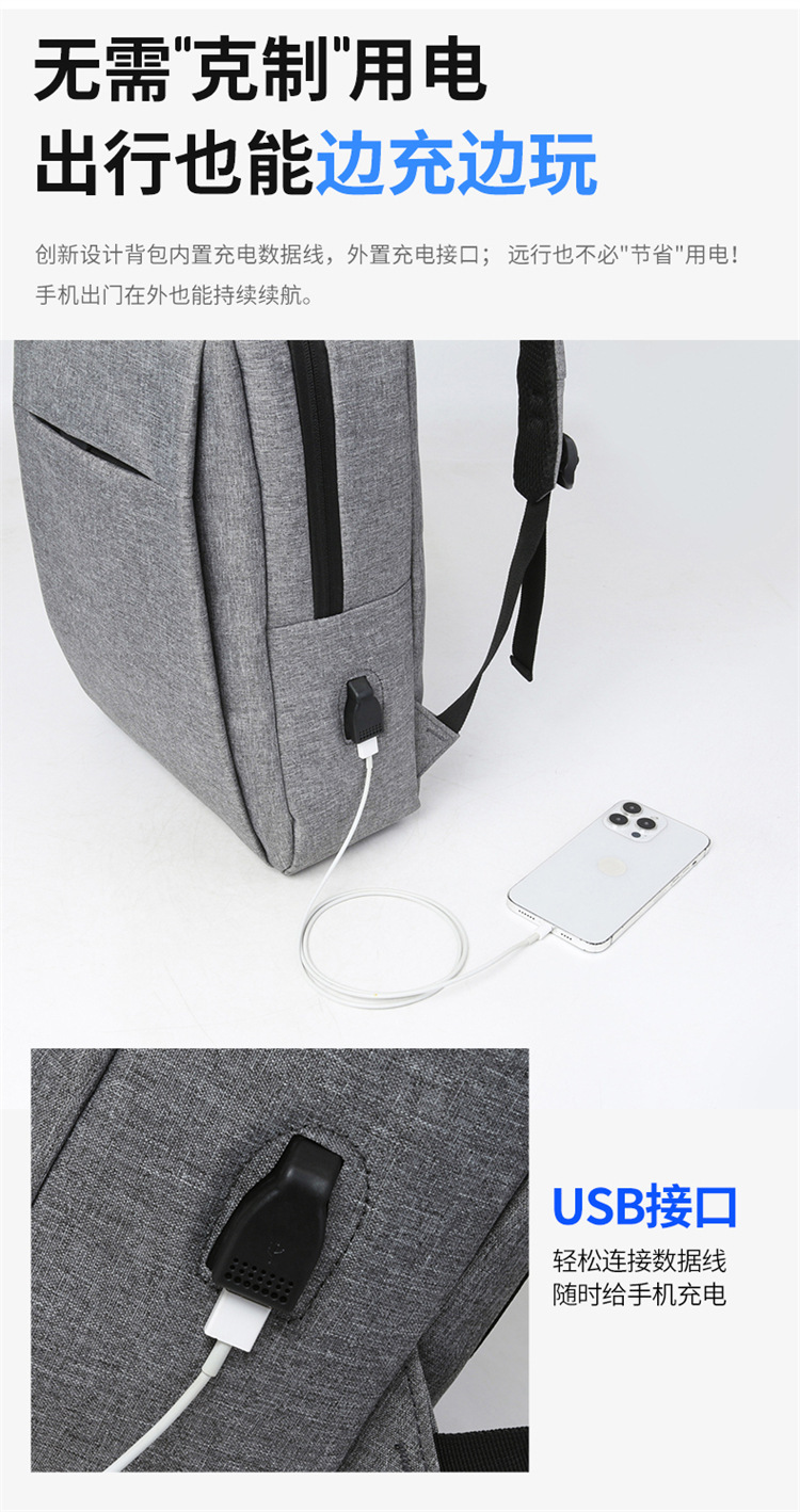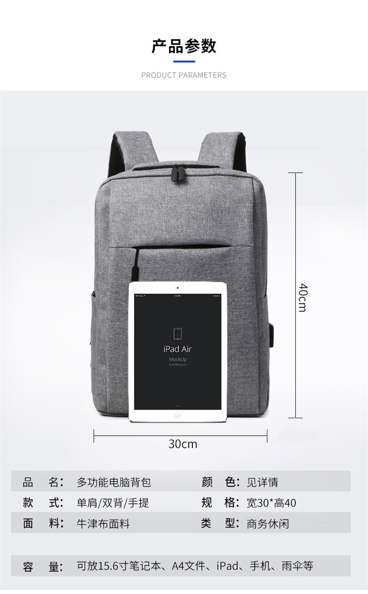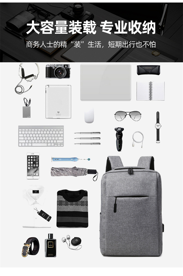 【40cm*30cm】简约大容量双肩包usb充电电脑包休闲商务笔记本背包