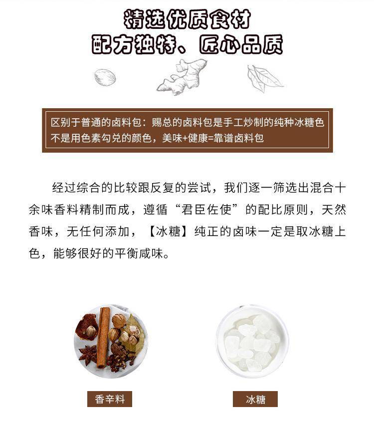 罗粑说食材:只需加水就能做专业级卤味,想想就很赞!喜欢吃卤味的我,但又怕外面买的卤味原料不好,这款卤料包解决了我在家轻松做健康卤味难题,我是大爱了。