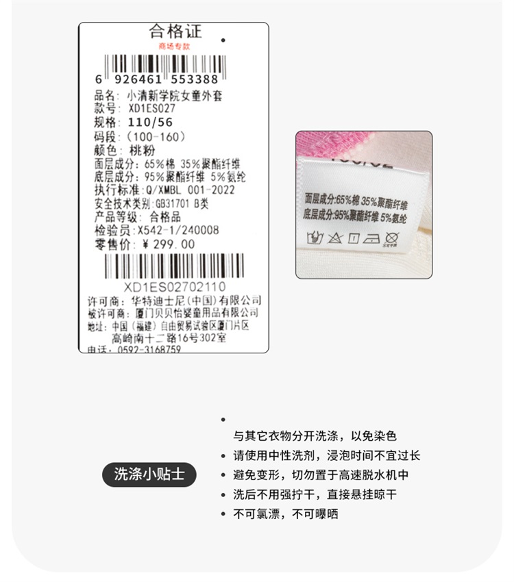 迪士尼女童外套XD1ES027