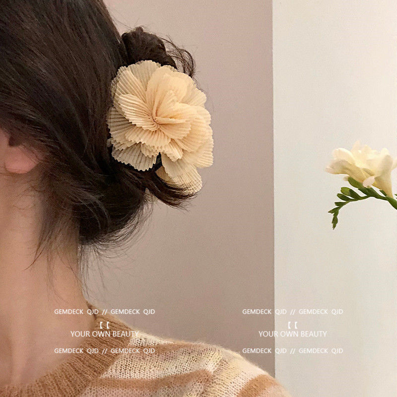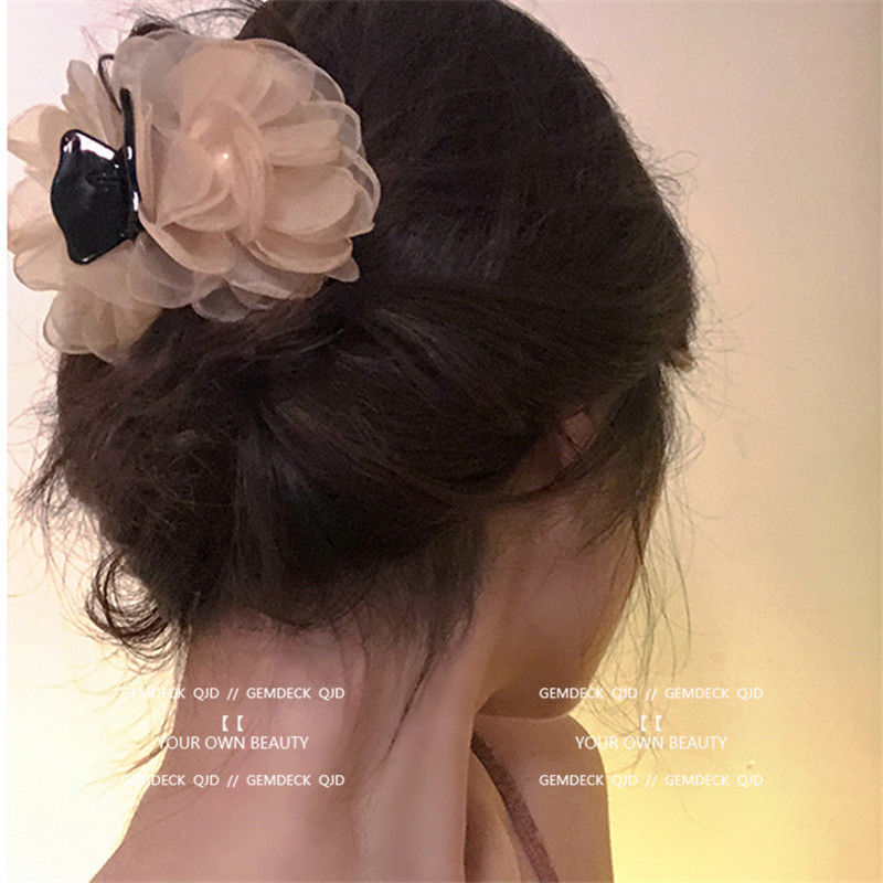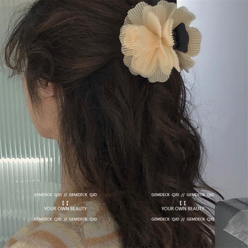 气质花朵珍珠网纱抓夹 复古法式网红外出百搭发夹发卡后脑勺发饰