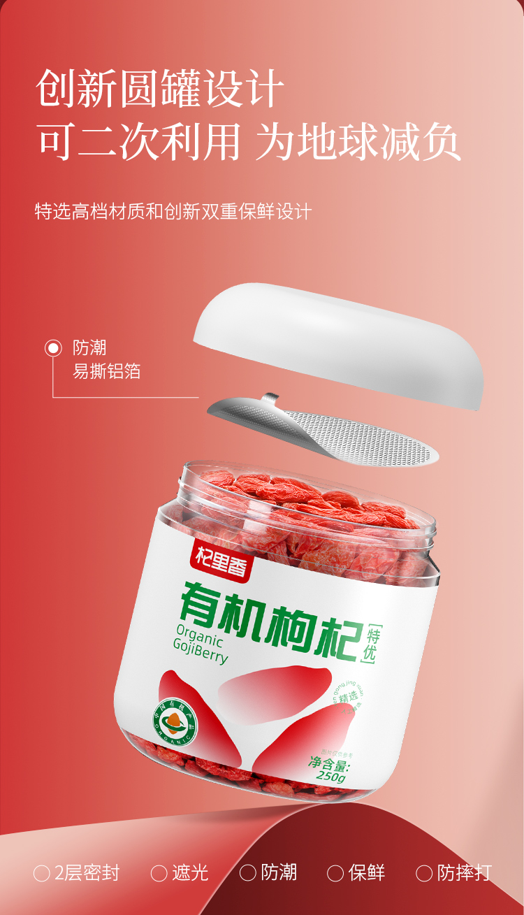 【冬季滋补】【有机系列】 杞里香250g白色圆罐有机枸杞280粒沙漠有机枸杞,来自青藏高原的馈赠泡酒、泡茶煲汤