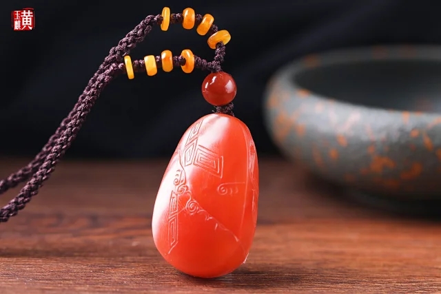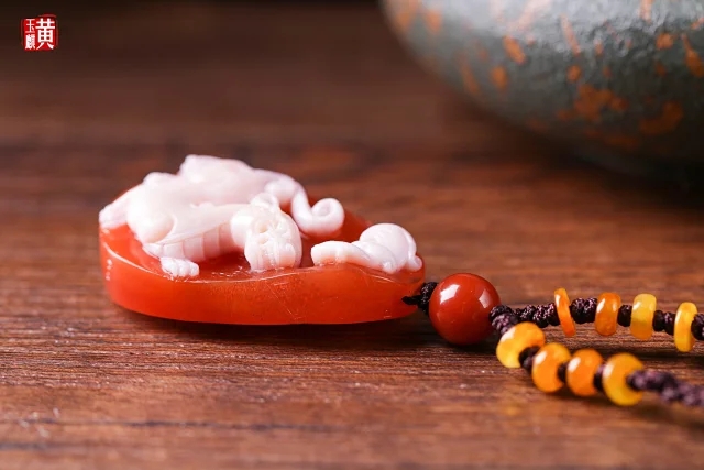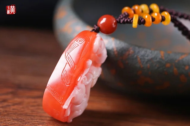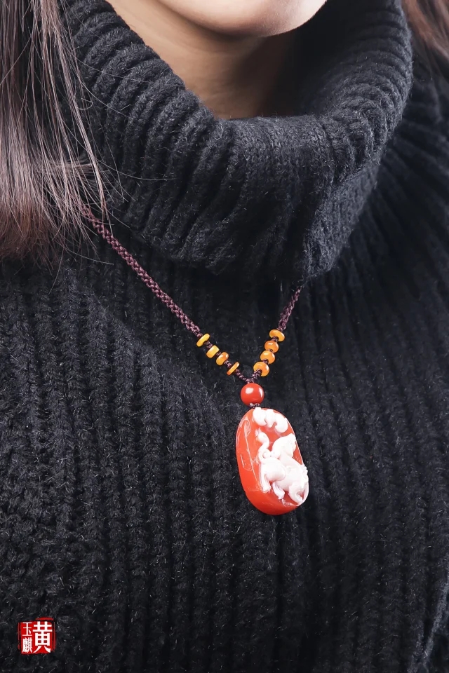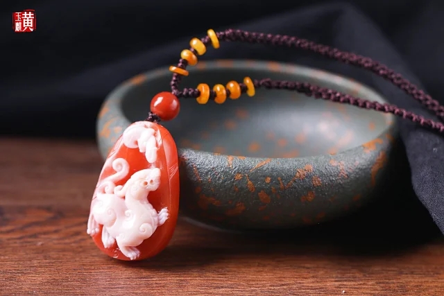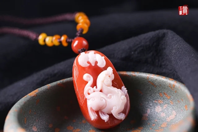 南红精雕【麒麟】吊坠 配精美编织挂绳
