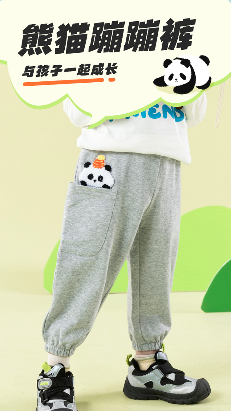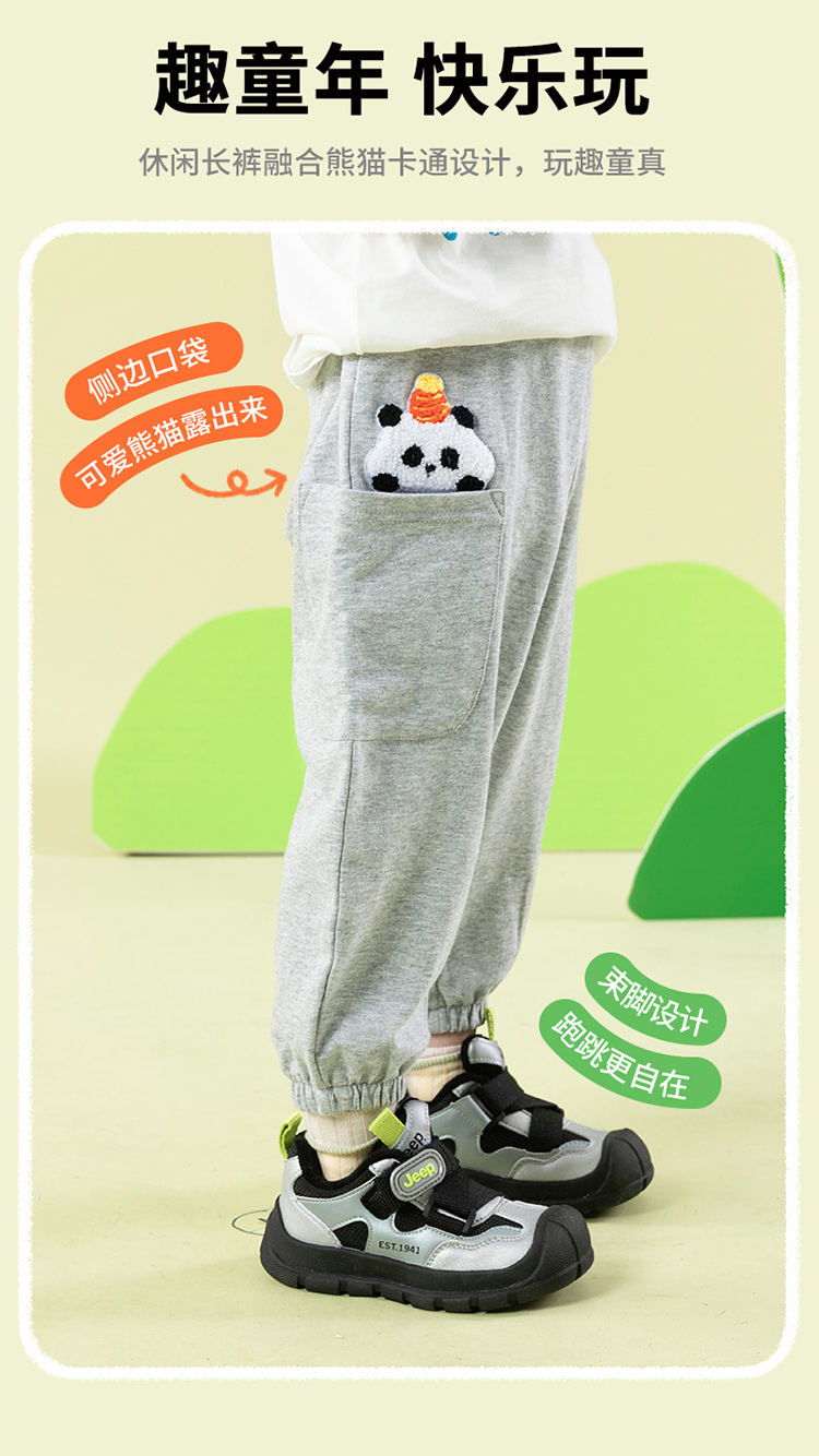 男童裤子2025春季新款纯棉运动萌趣卡通儿童束脚休闲裤子男