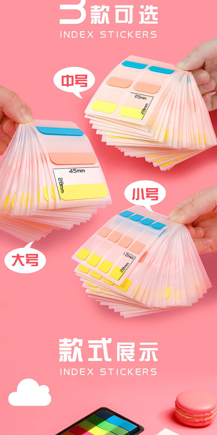索引贴荧光贴条便利贴小条学生用重点标记书签贴纸可书写笔记标签