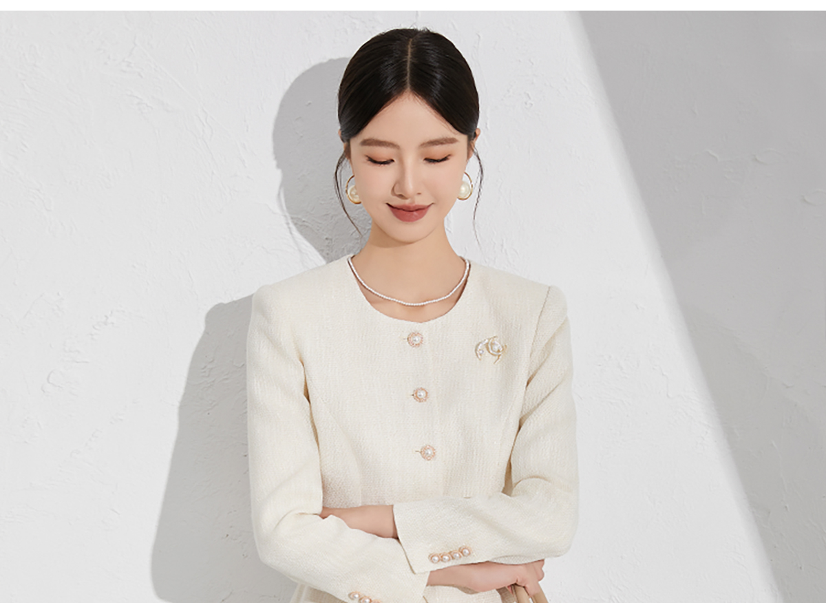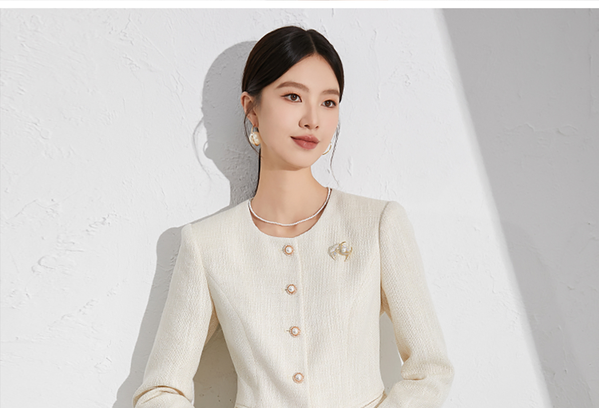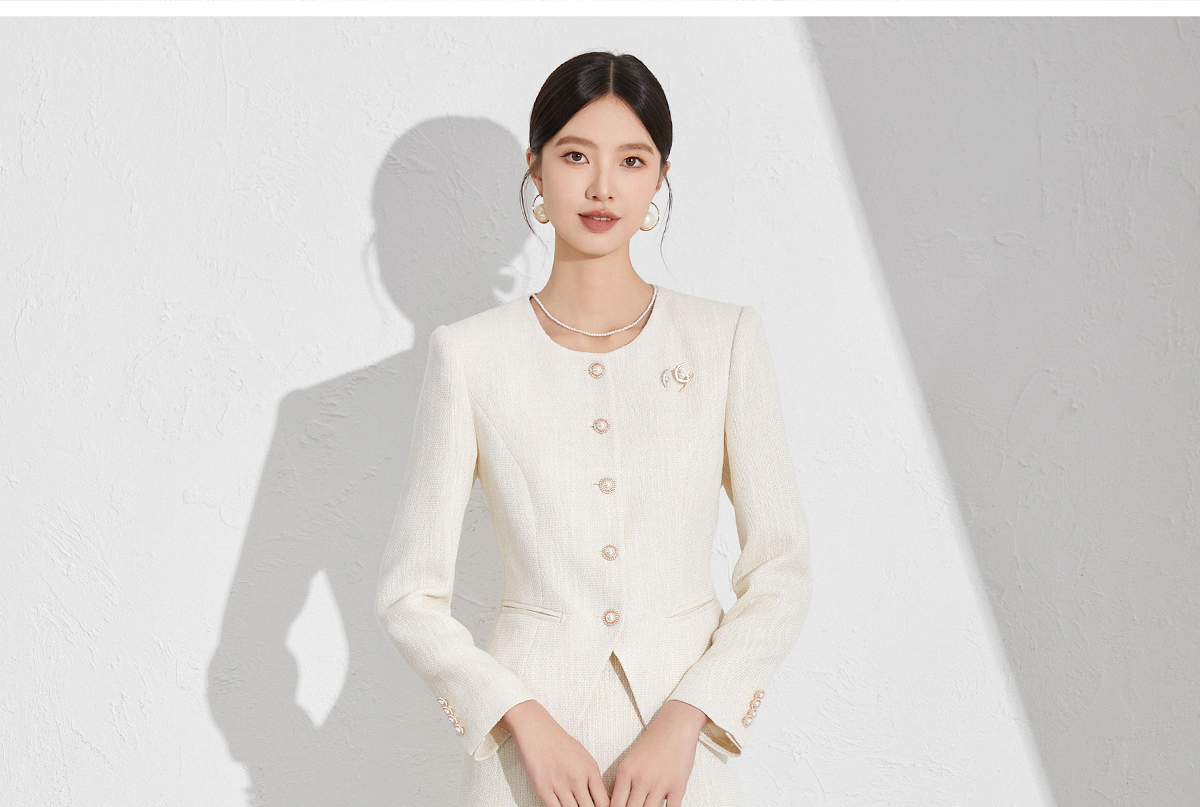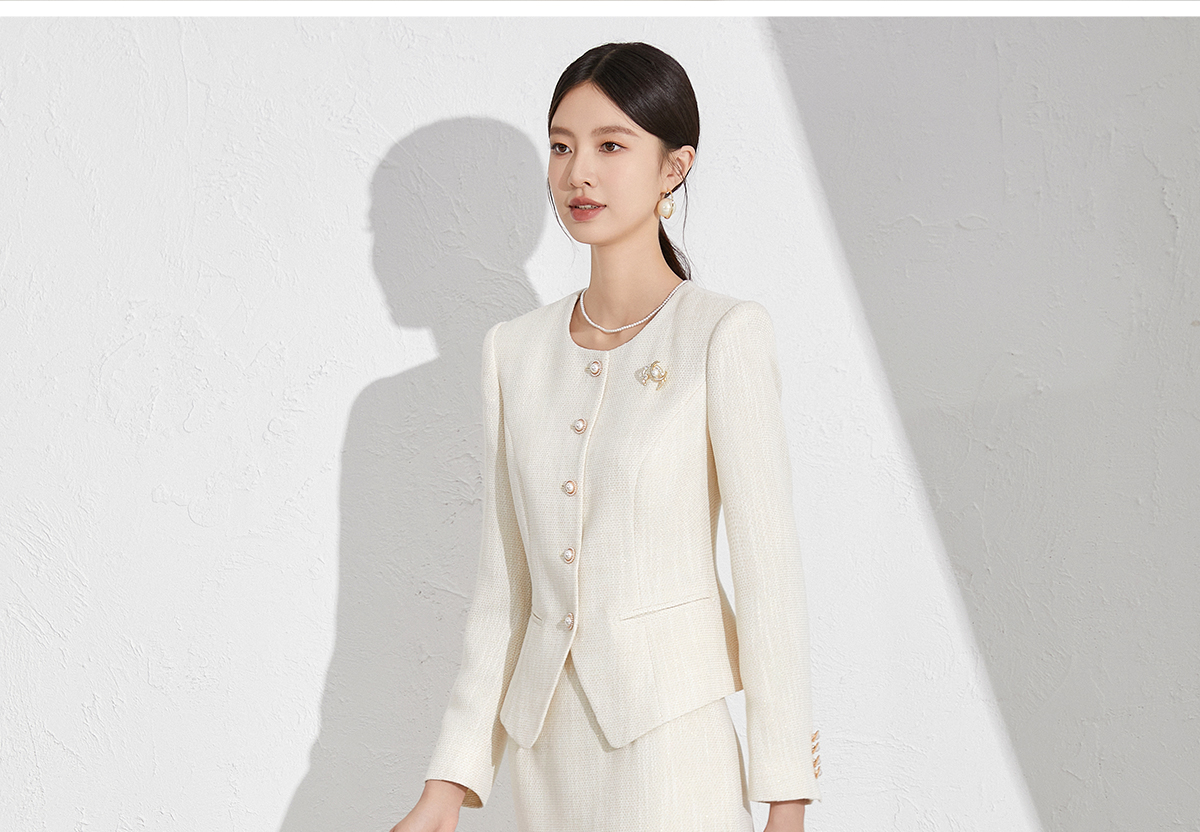 艾尚臣米色小香风套装洋气减龄秋季新款女装收腰显瘦职场两件套裙