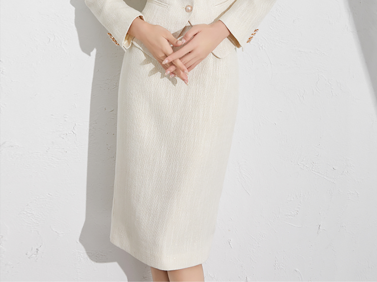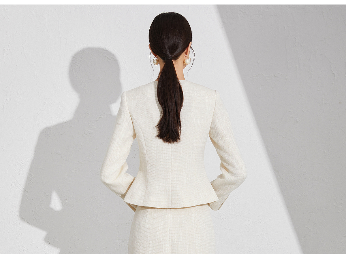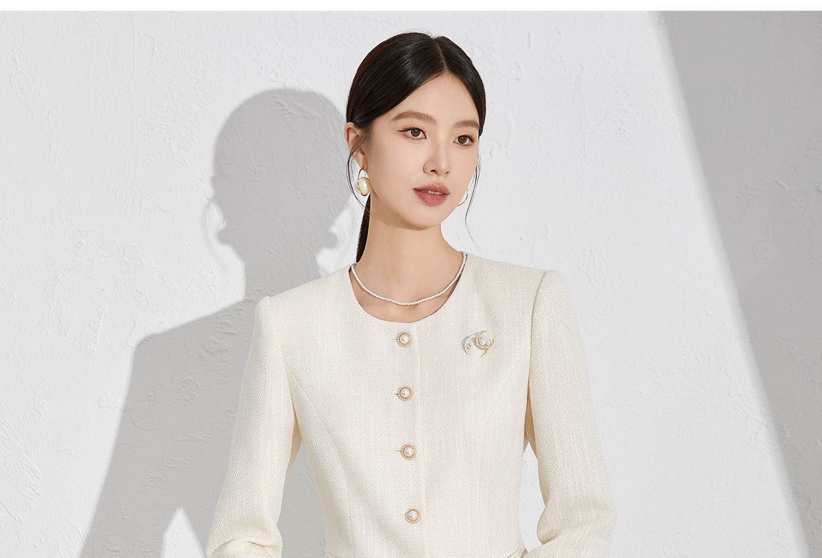 艾尚臣米色小香风套装洋气减龄秋季新款女装收腰显瘦职场两件套裙