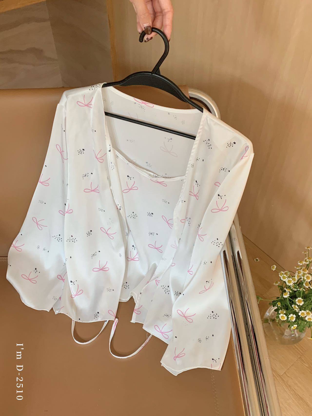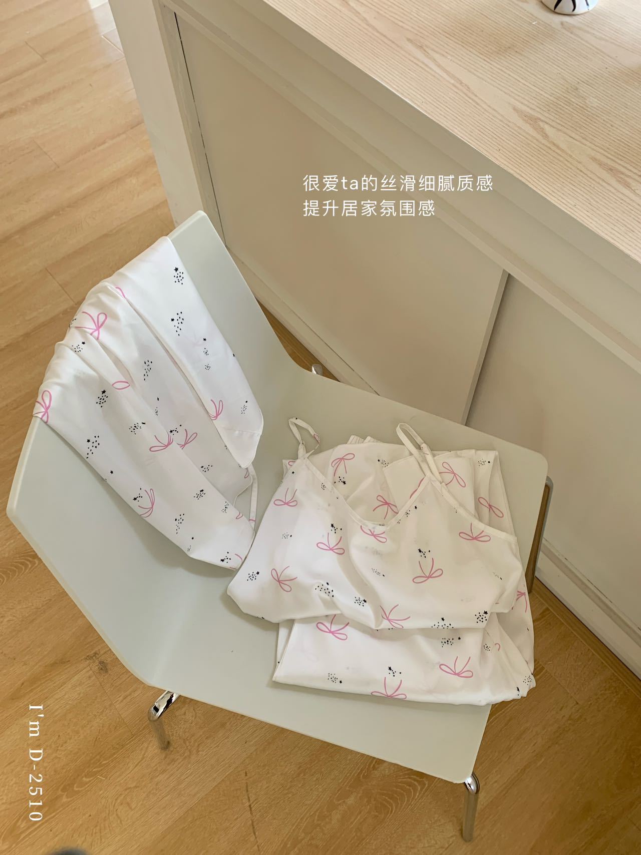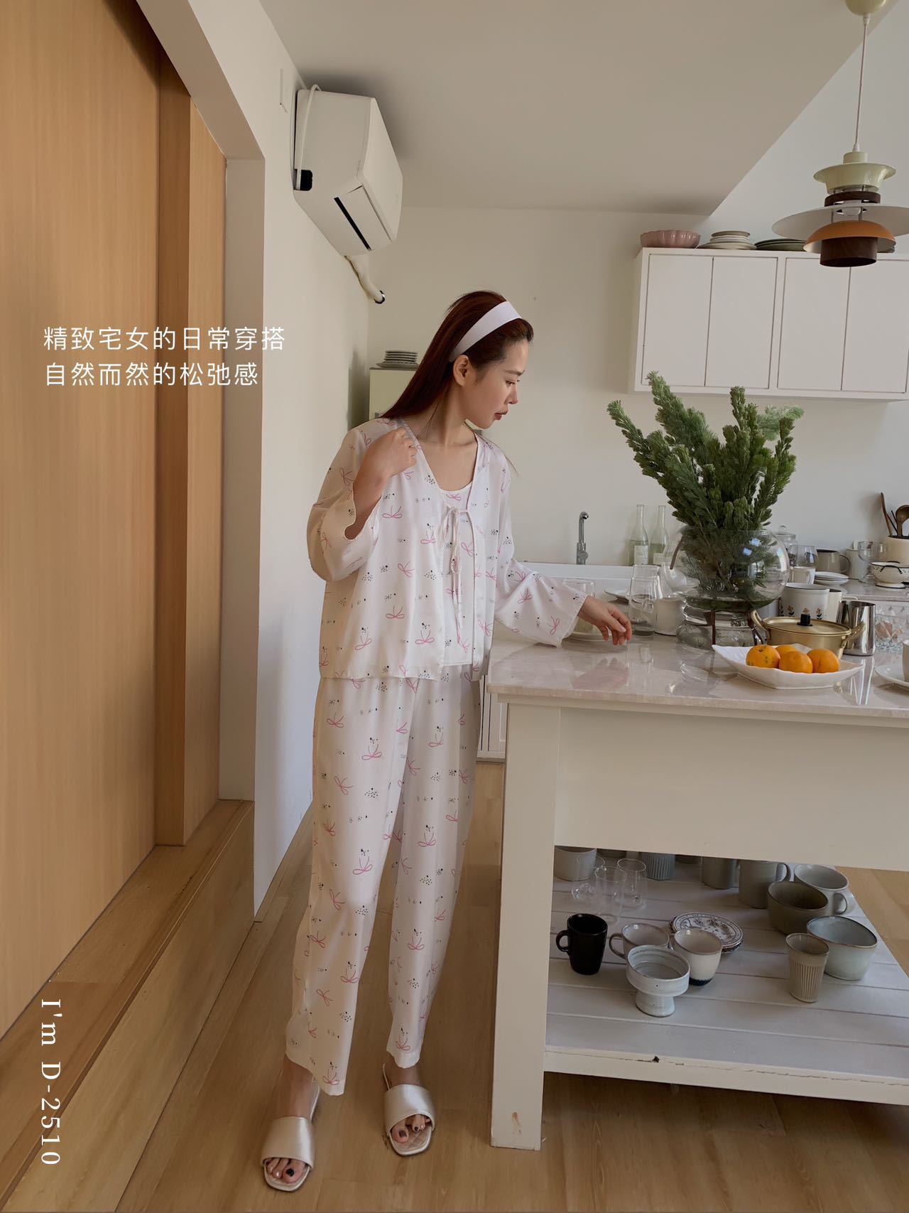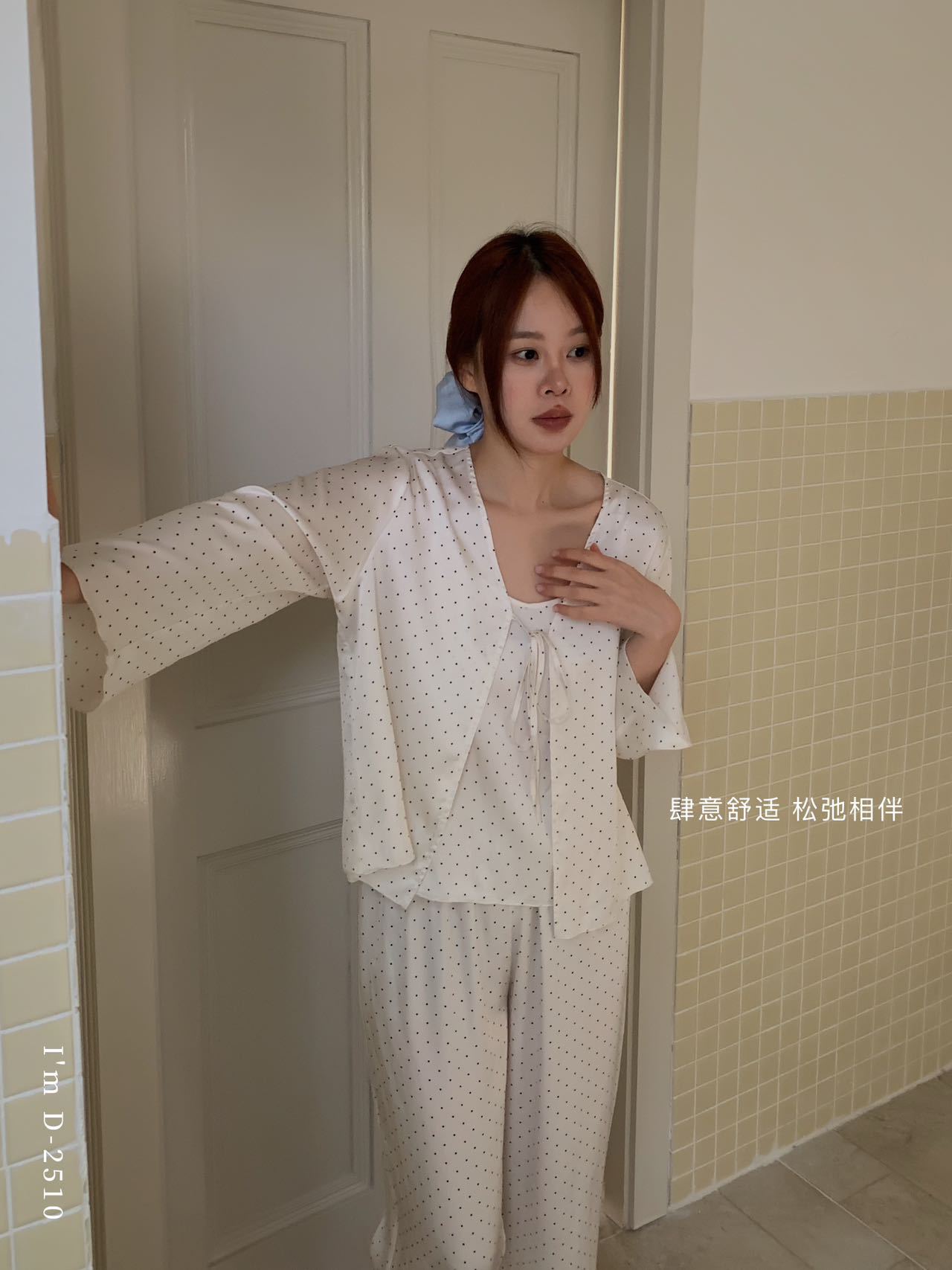 【一缕清风】2025春夏新款仿丝三件套家居服套装女 吊带+长袖+长裤 可外穿休闲套装睡衣