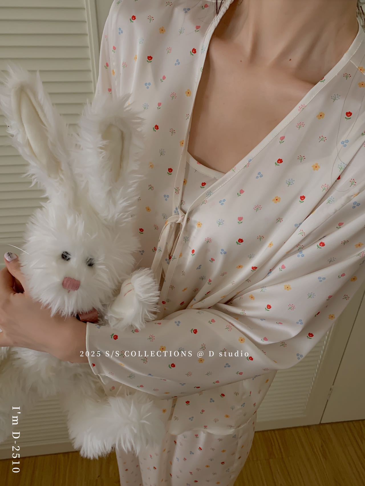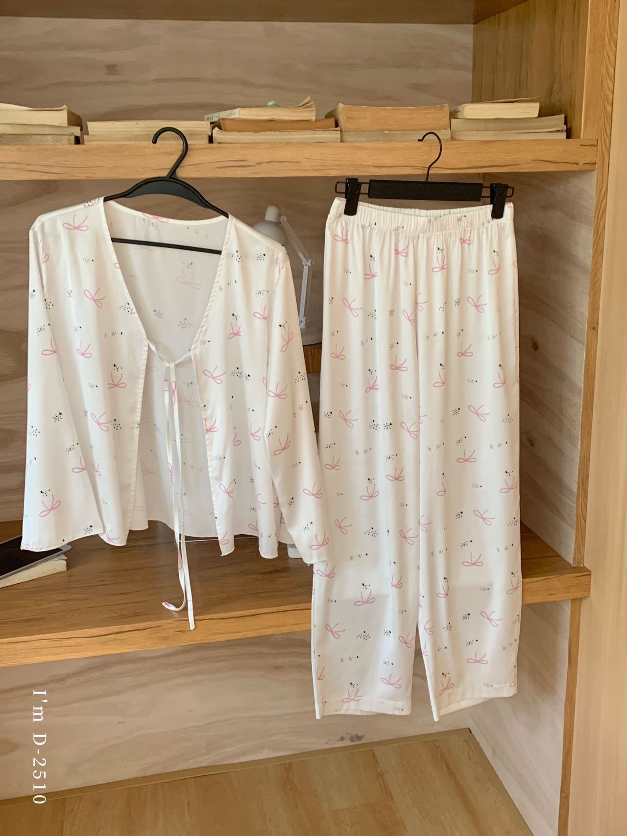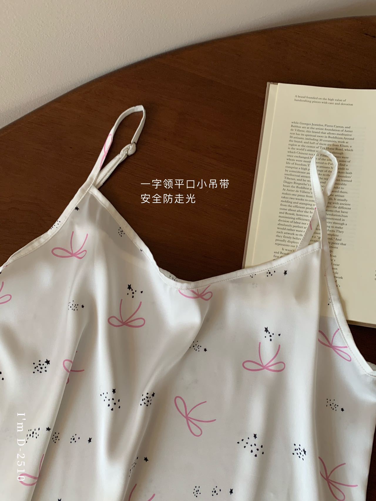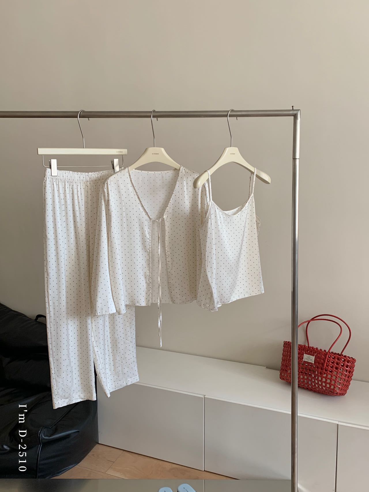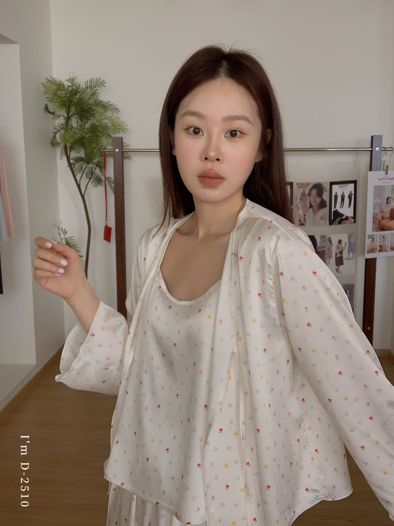 【一缕清风】2025春夏新款仿丝三件套家居服套装女 吊带+长袖+长裤 可外穿休闲套装睡衣