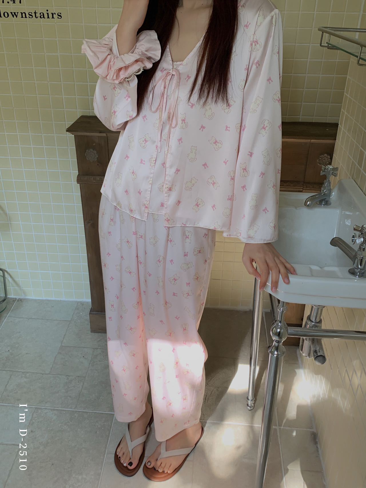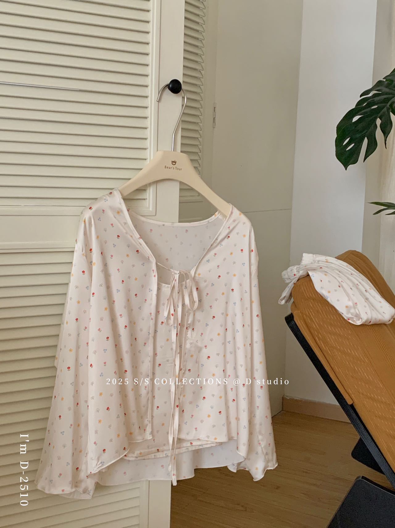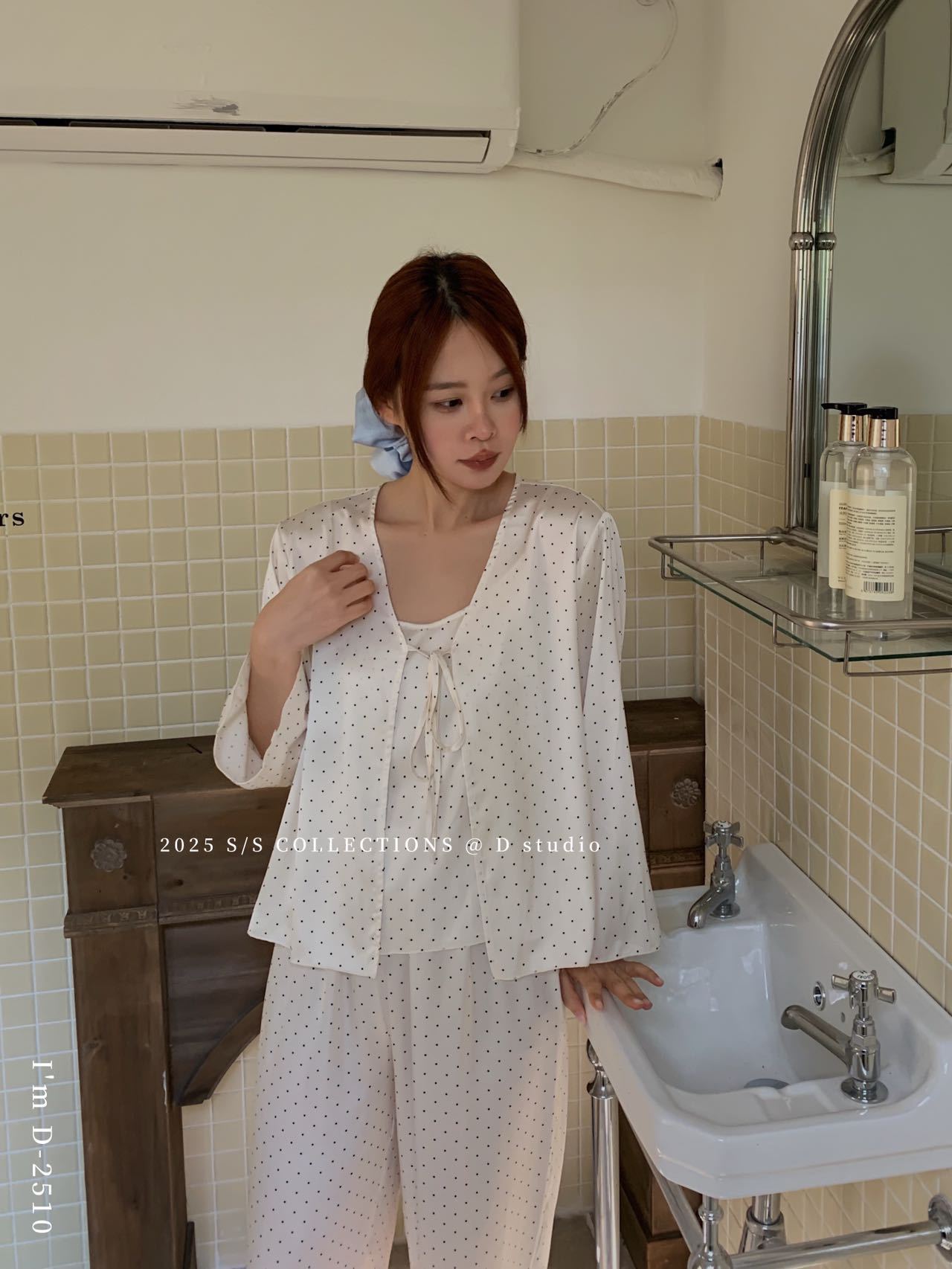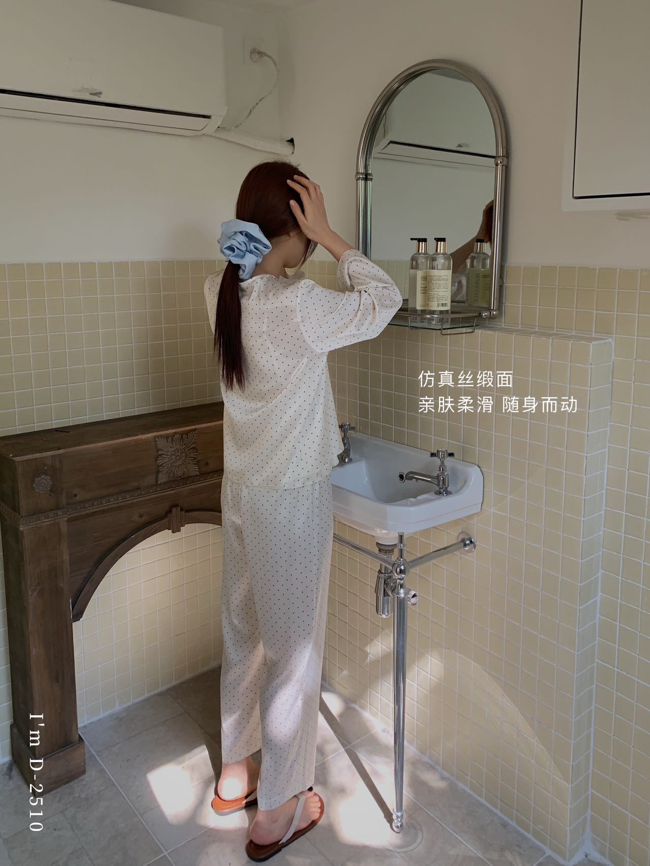 【一缕清风】2025春夏新款仿丝三件套家居服套装女 吊带+长袖+长裤 可外穿休闲套装睡衣