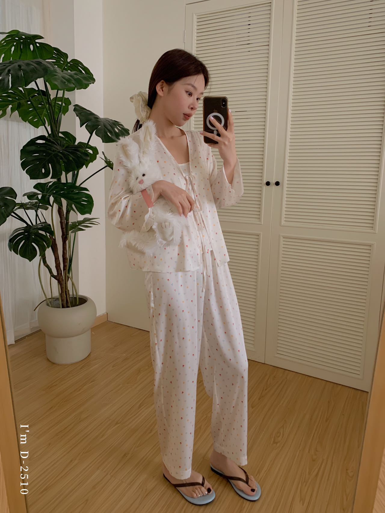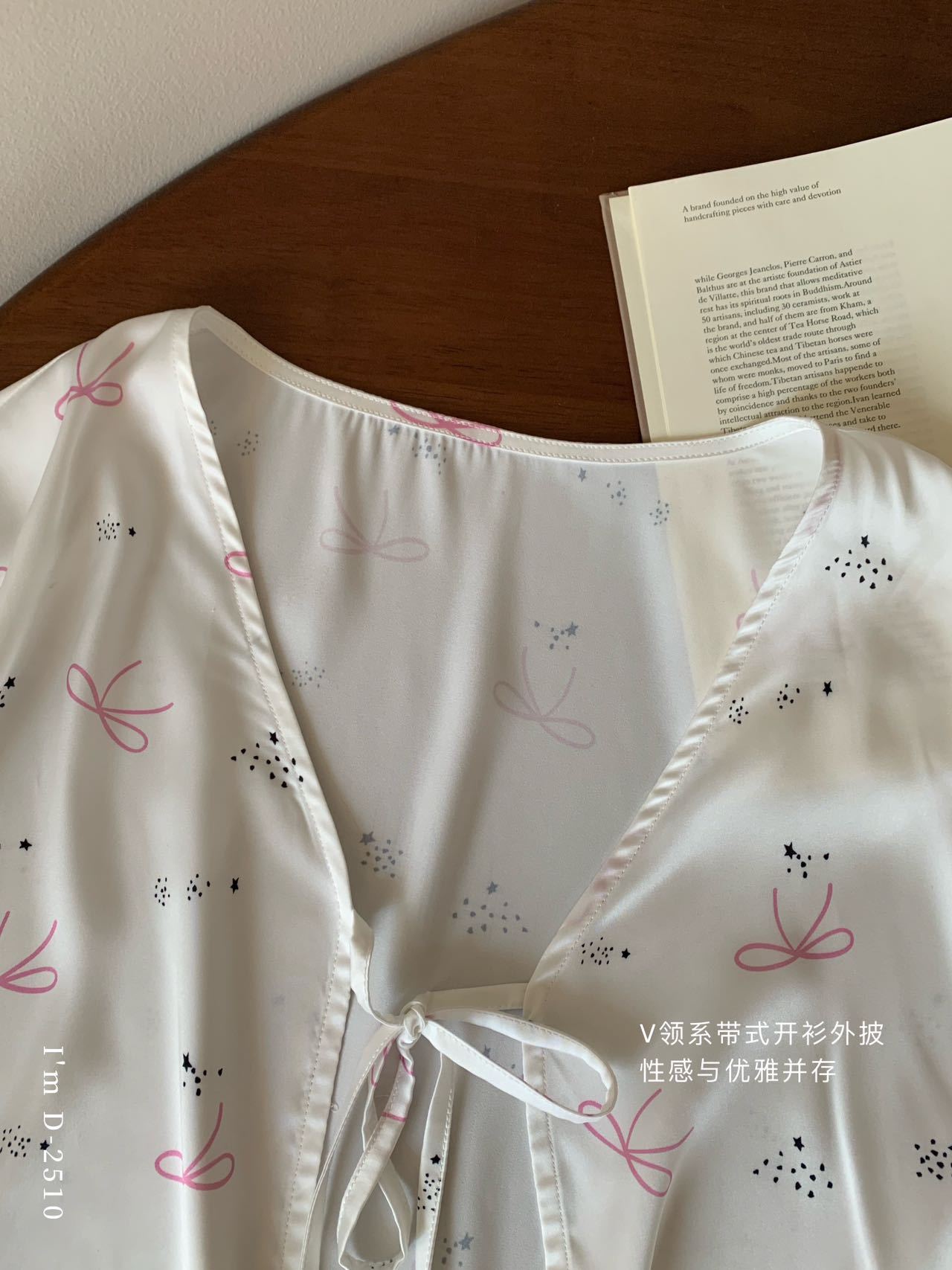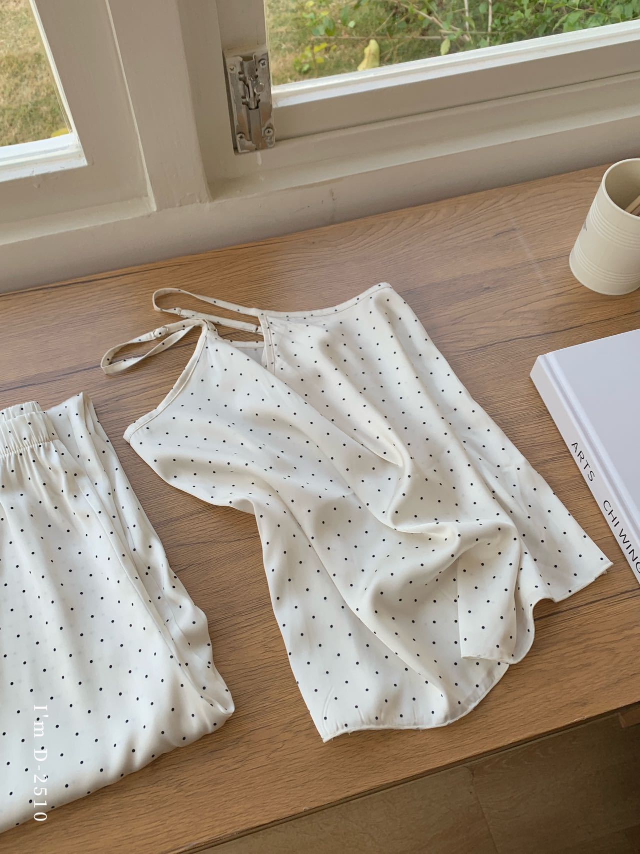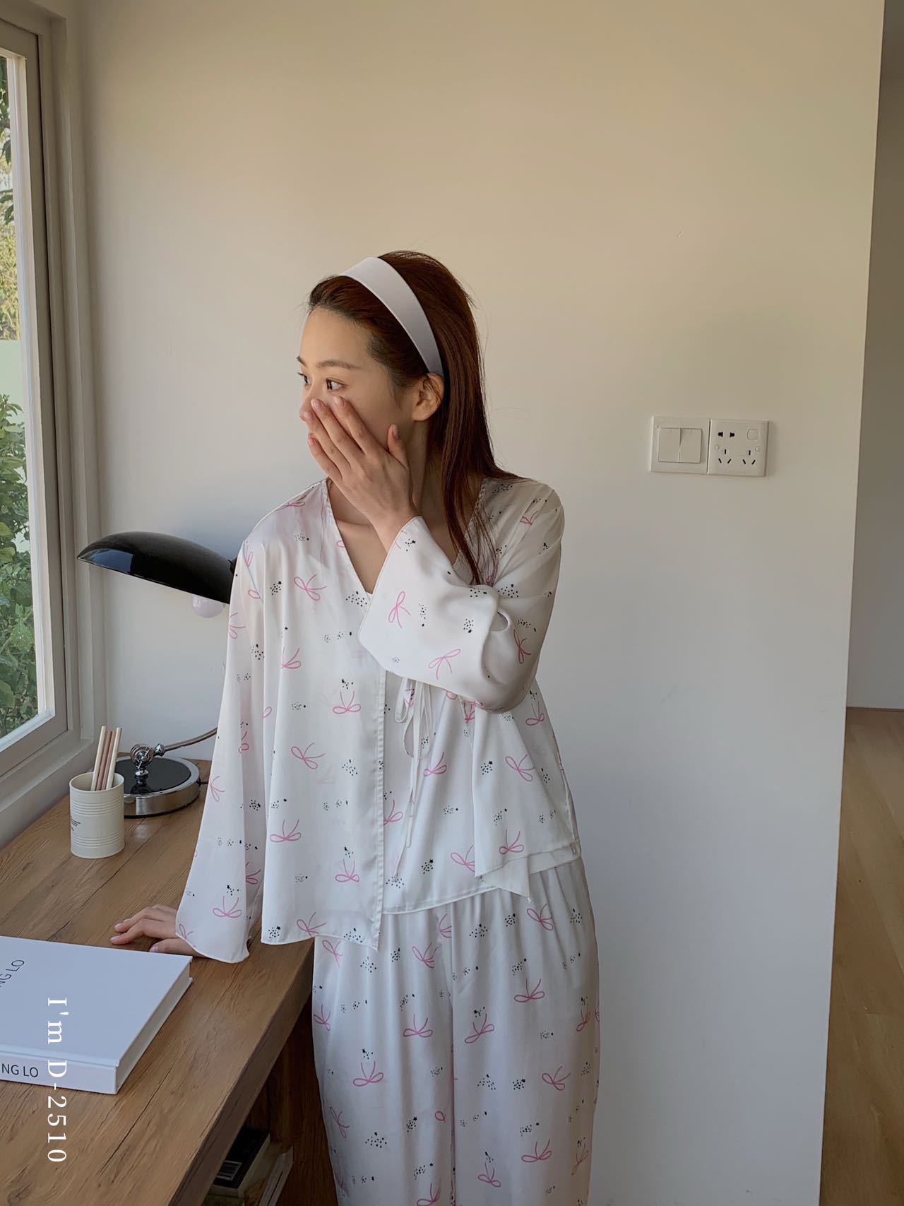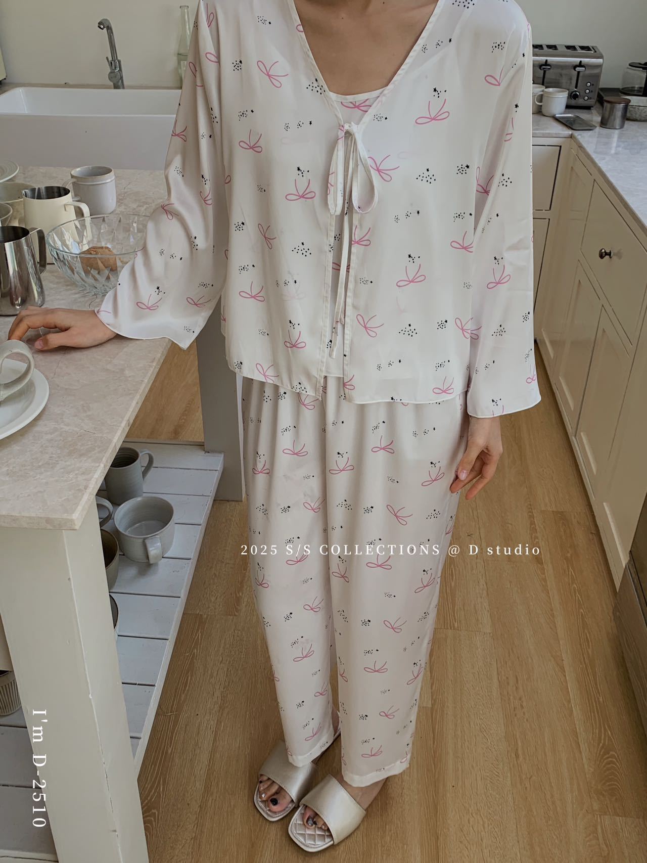 【一缕清风】2025春夏新款仿丝三件套家居服套装女 吊带+长袖+长裤 可外穿休闲套装睡衣