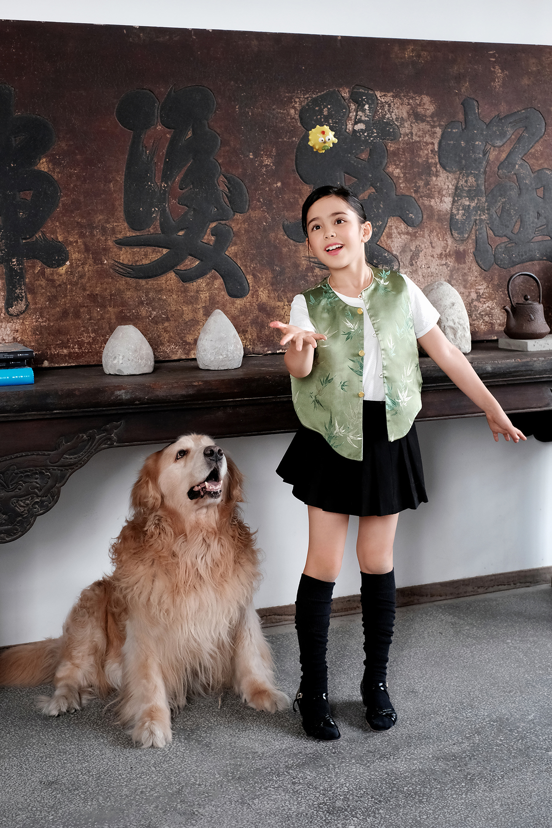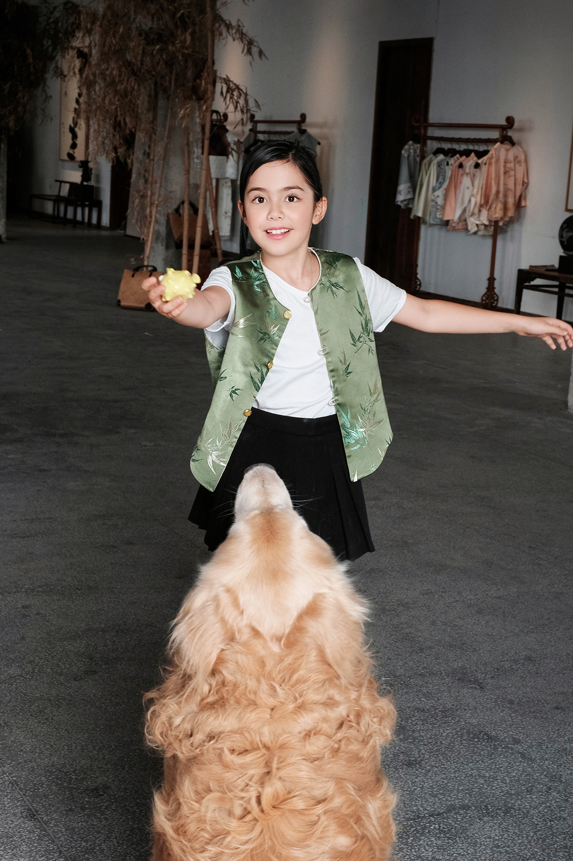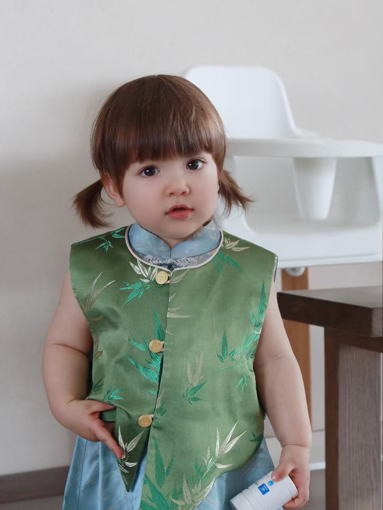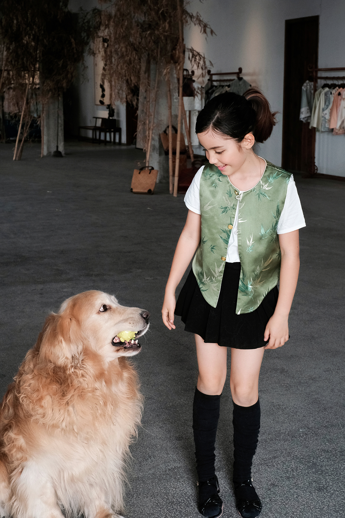 盛唐牡丹| Kids 文竹织锦缎儿童马甲[特价品]