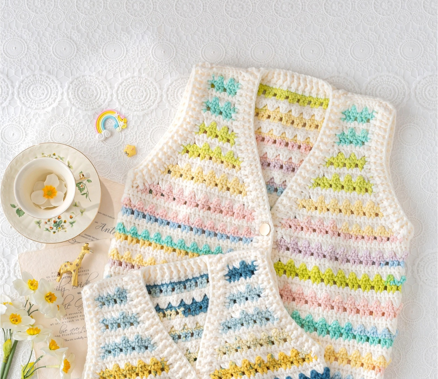 苏苏姐家叠彩亲子马甲手工diy编织钩针毛线团自制衣服材料包