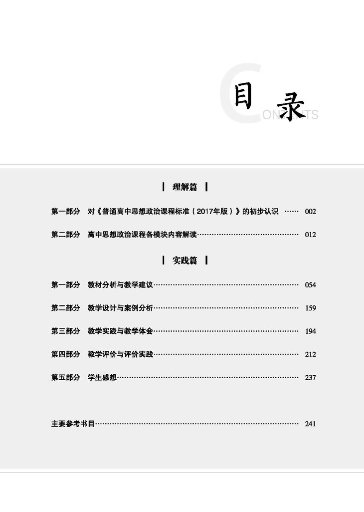 本书包含“认识篇”和“实践篇”两大部分内容。“认识篇”一方面介绍了对《普通高中课程标准(2017年版)》的总体认识以及与2003年版课程标准的比较,另一方面介绍了各学科各模块的总体框架、内容要求和素养要求。“实践篇”对新版教材各模块进行了细致分析,并提供了教学建议、优秀的教学设计及案例分析、参与实验教学的教师教学体会、学业质量水平与考试评价的尝试,以及来自参与实验教学的学生和家长的感想。本书在诸多方面都有所突破和创新,为教师落实新的课程标准、改变原有的教学行为、提高教学质量标示了方向。