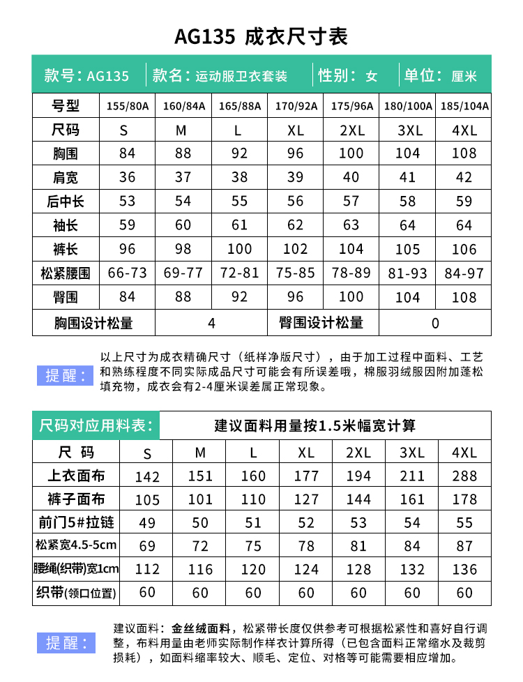 裁缝学苑AG135 运动服卫衣纸样女装外套裤子服装打版裁剪样板图样