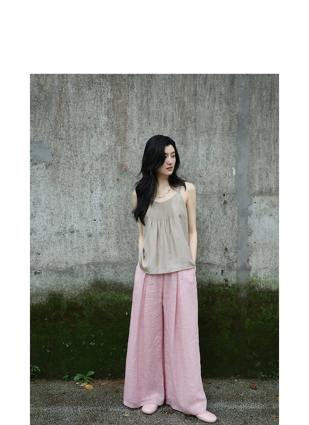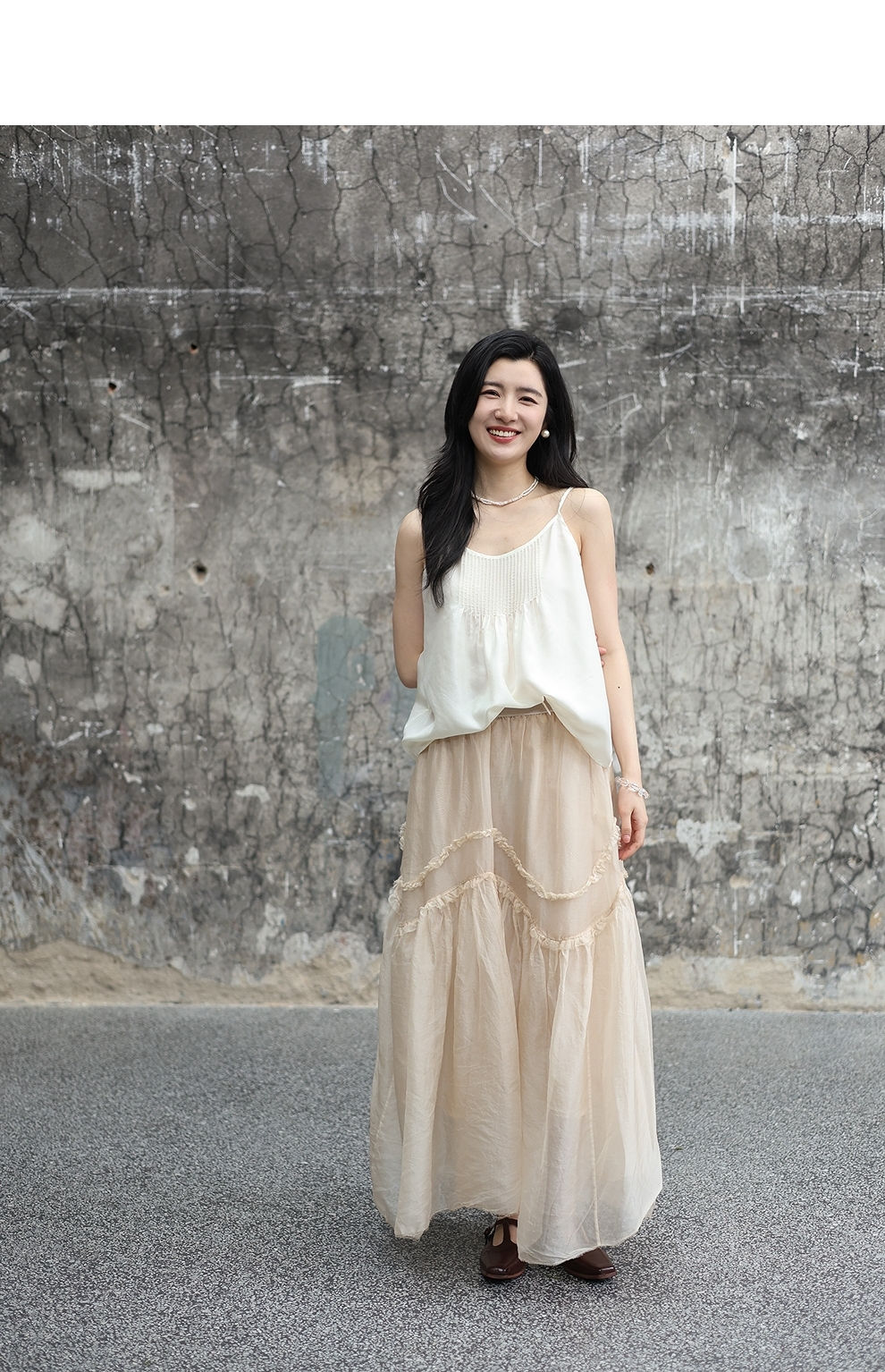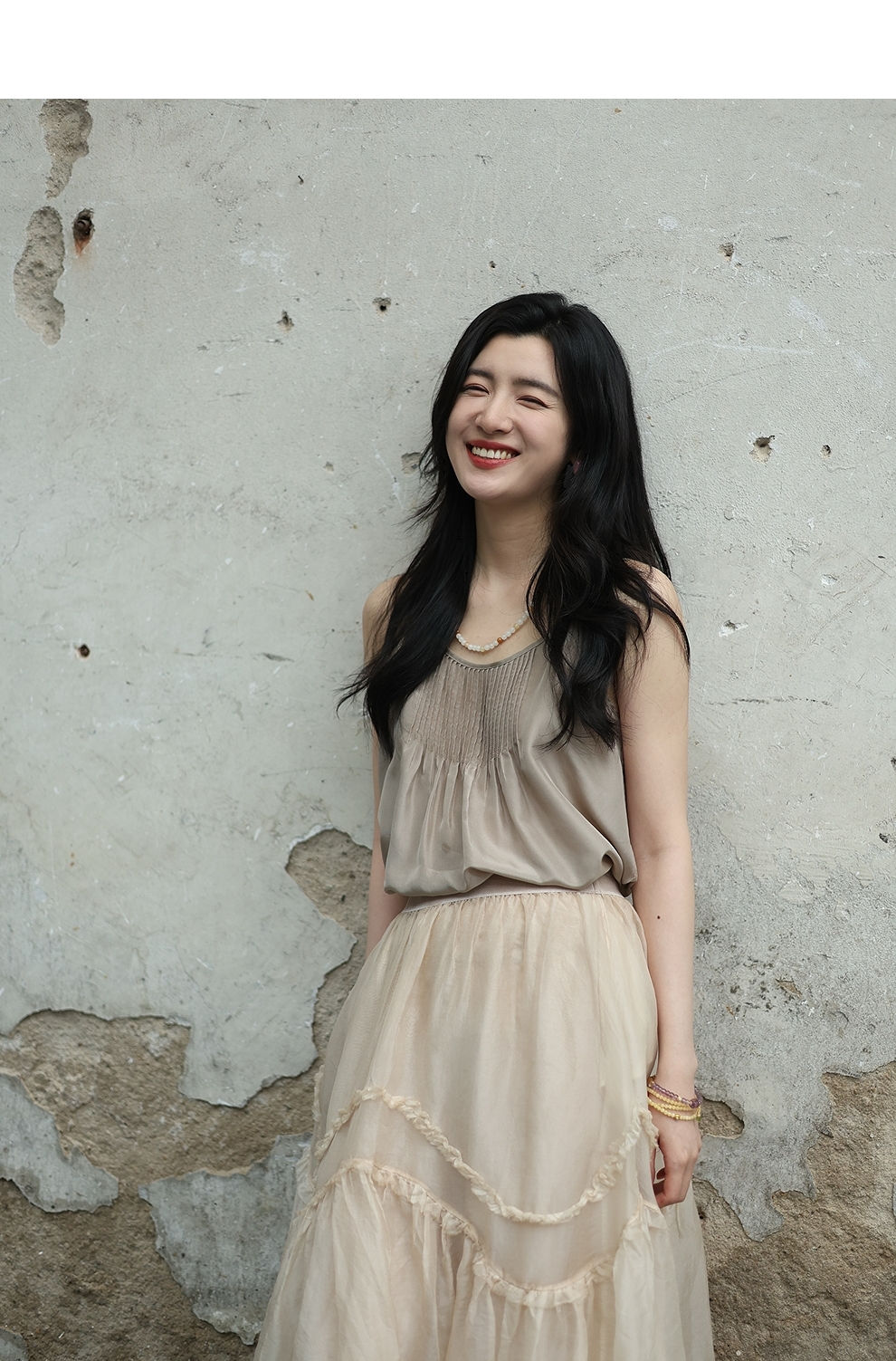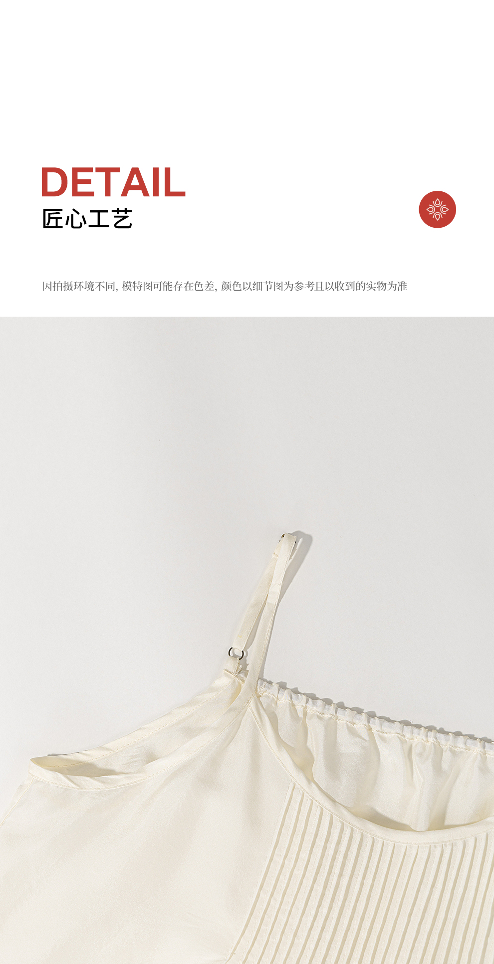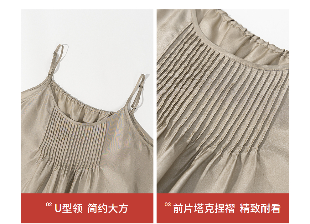 绽放女装363朵/【甜茶系列】真丝可调节肩带细塔克捏褶吊带背心夏