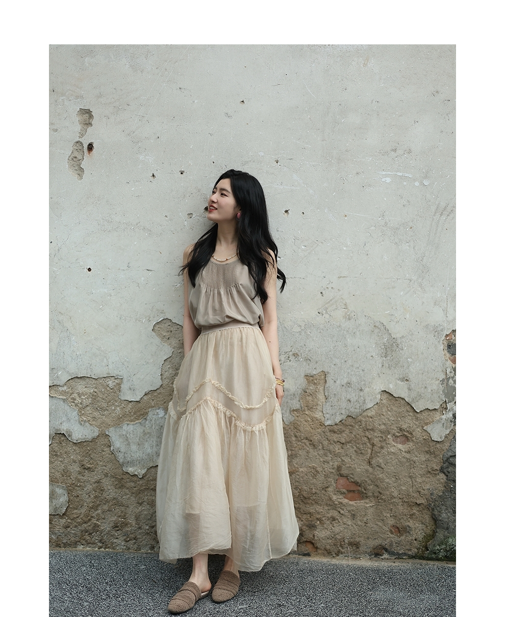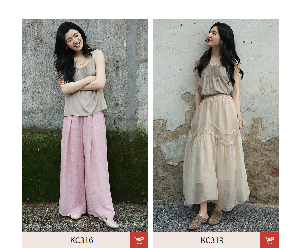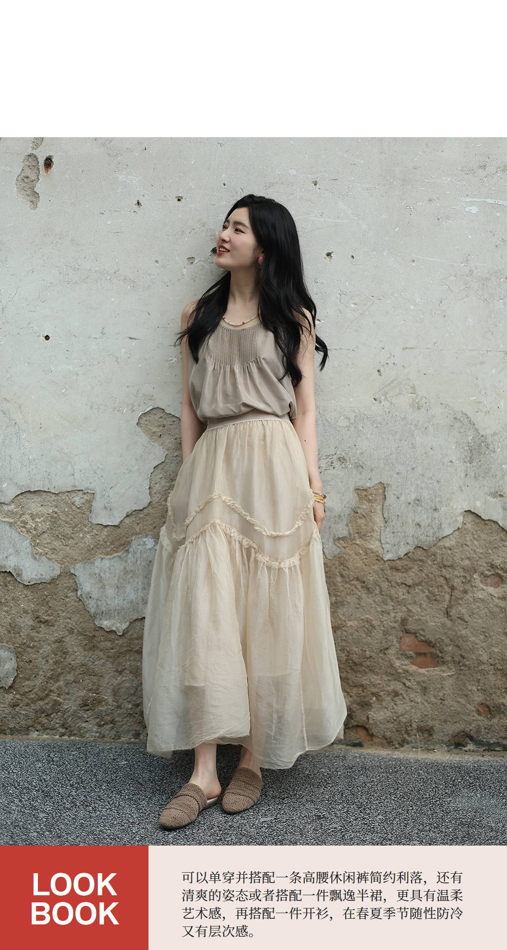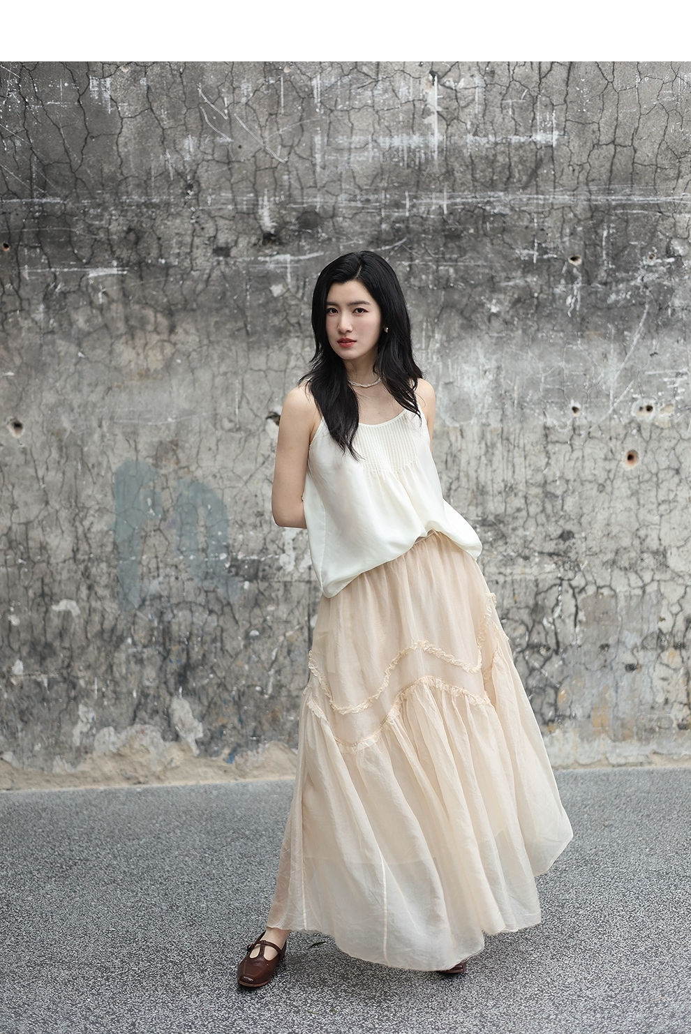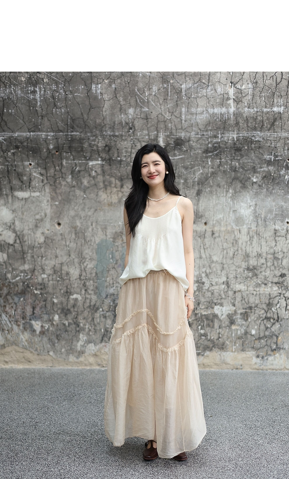 绽放女装363朵/【甜茶系列】真丝可调节肩带细塔克捏褶吊带背心夏