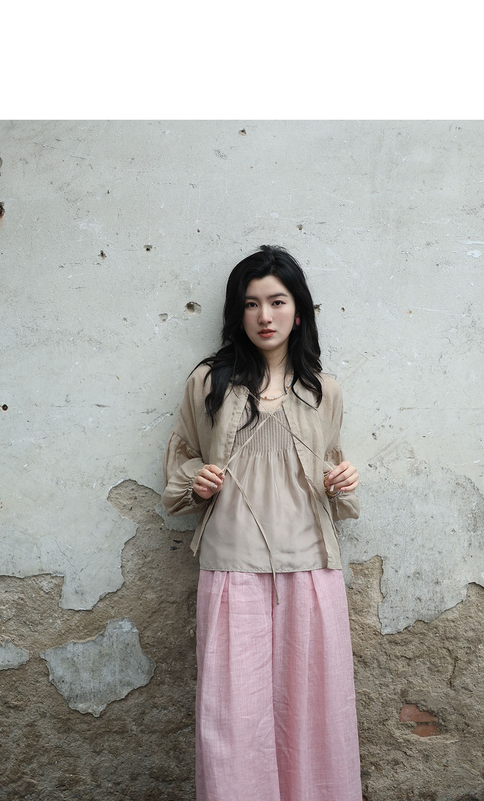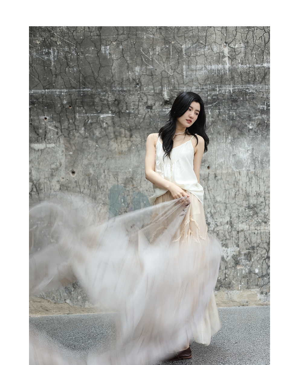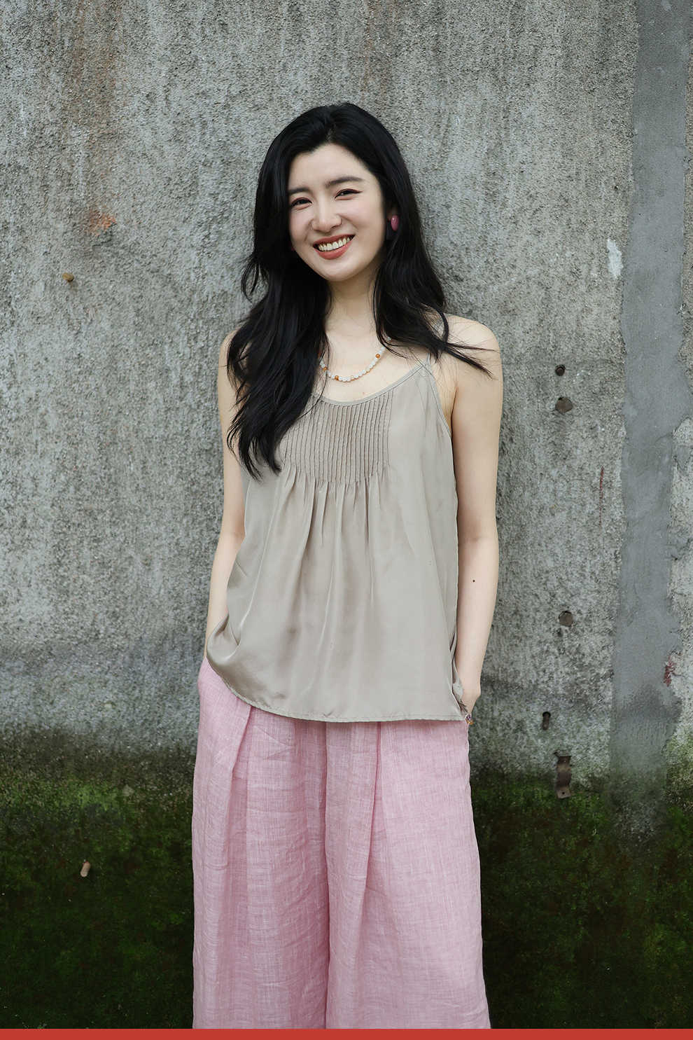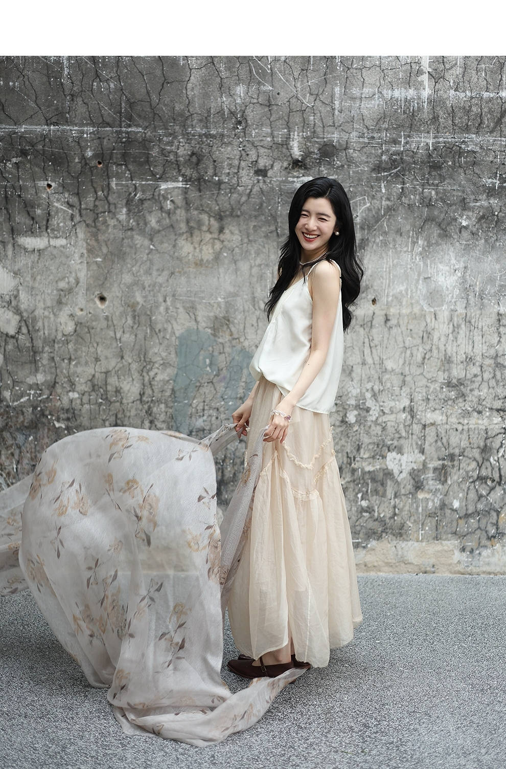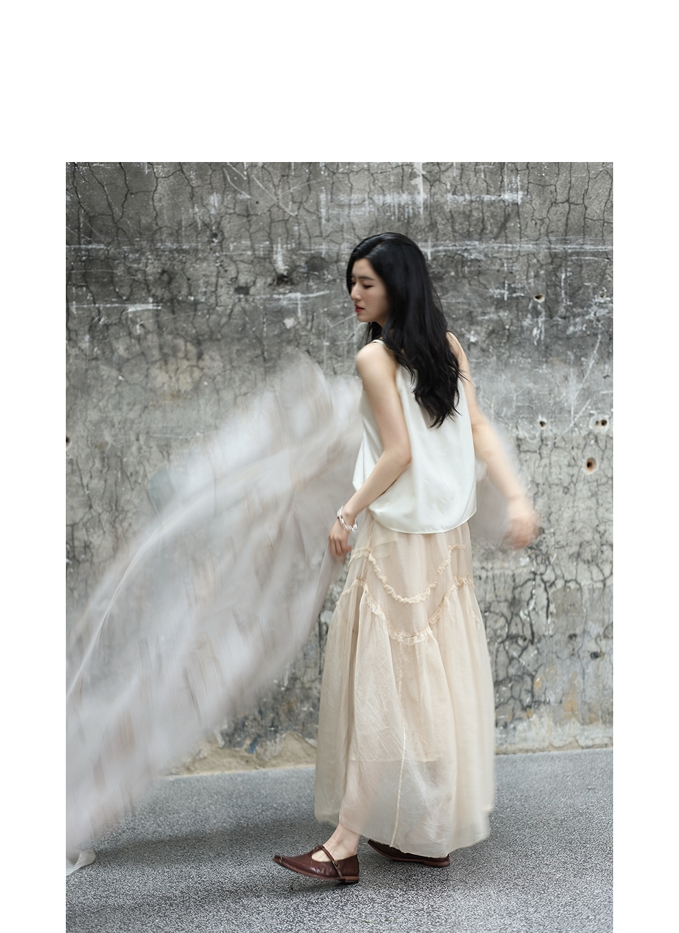 绽放女装363朵/【甜茶系列】真丝可调节肩带细塔克捏褶吊带背心夏