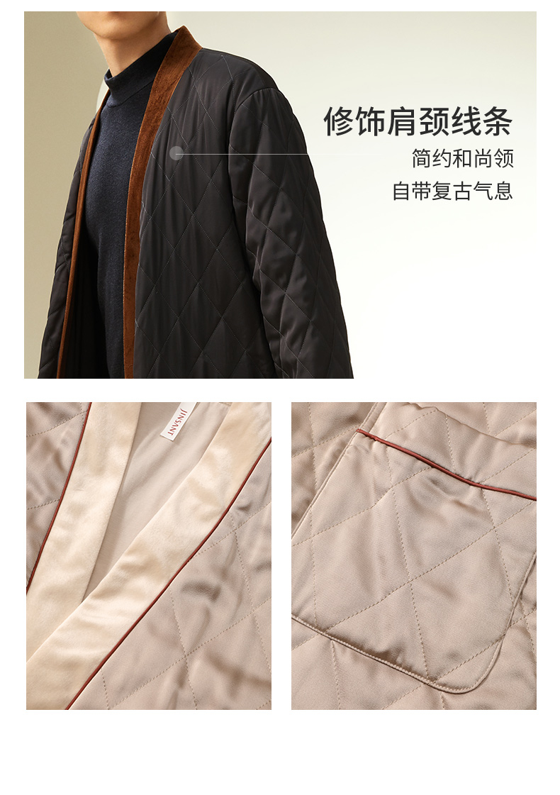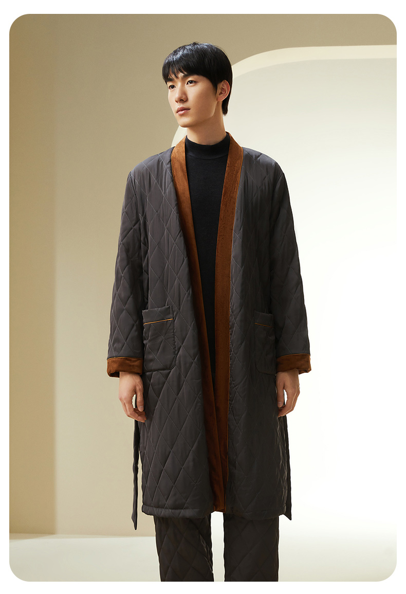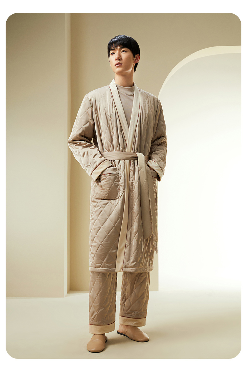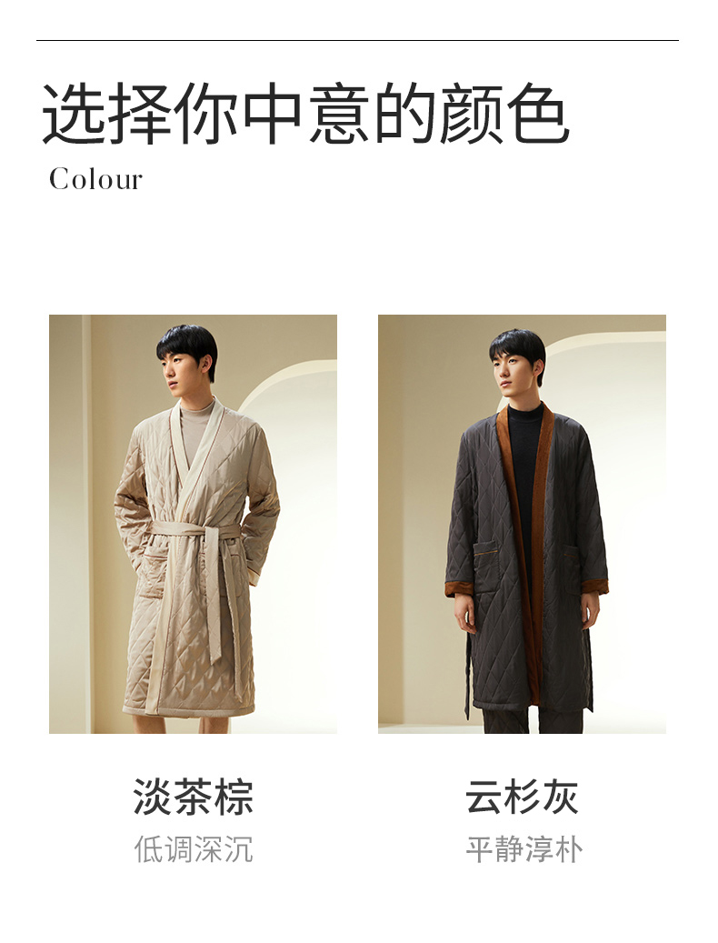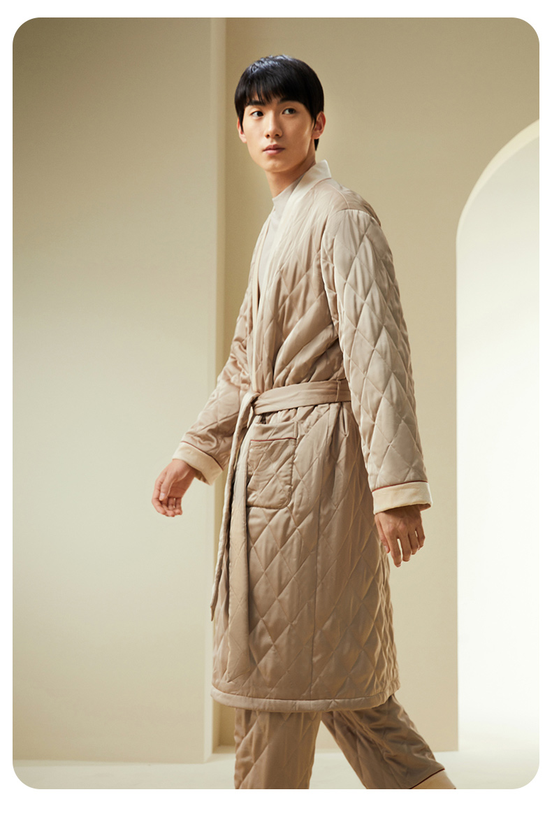 【暖暖家居服】金三塔桑蚕丝填充睡袍男士秋冬新品保暖丝绵家居服 YSMDD102