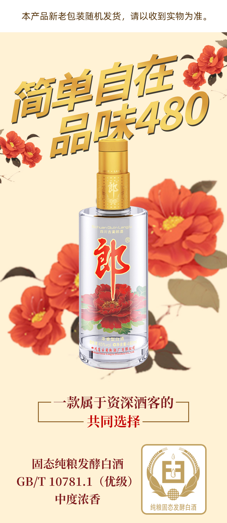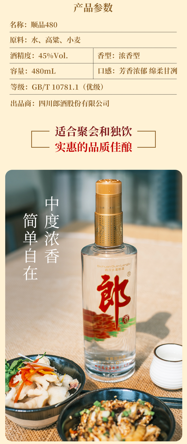 正品郎酒 45度顺品郎浓香型光瓶白酒480ml