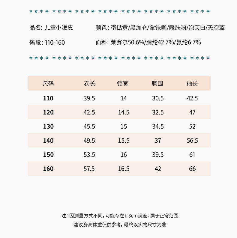 这个打底衫非常舒服,双面磨绒的,超级软糯又保暖,不愧是叫“小暖皮”!莱赛尔+植物纤维的,婴幼儿A类标准哈,敏感肌肤都能穿,透气性也很不错,准备让小小星去东北玩雪穿。