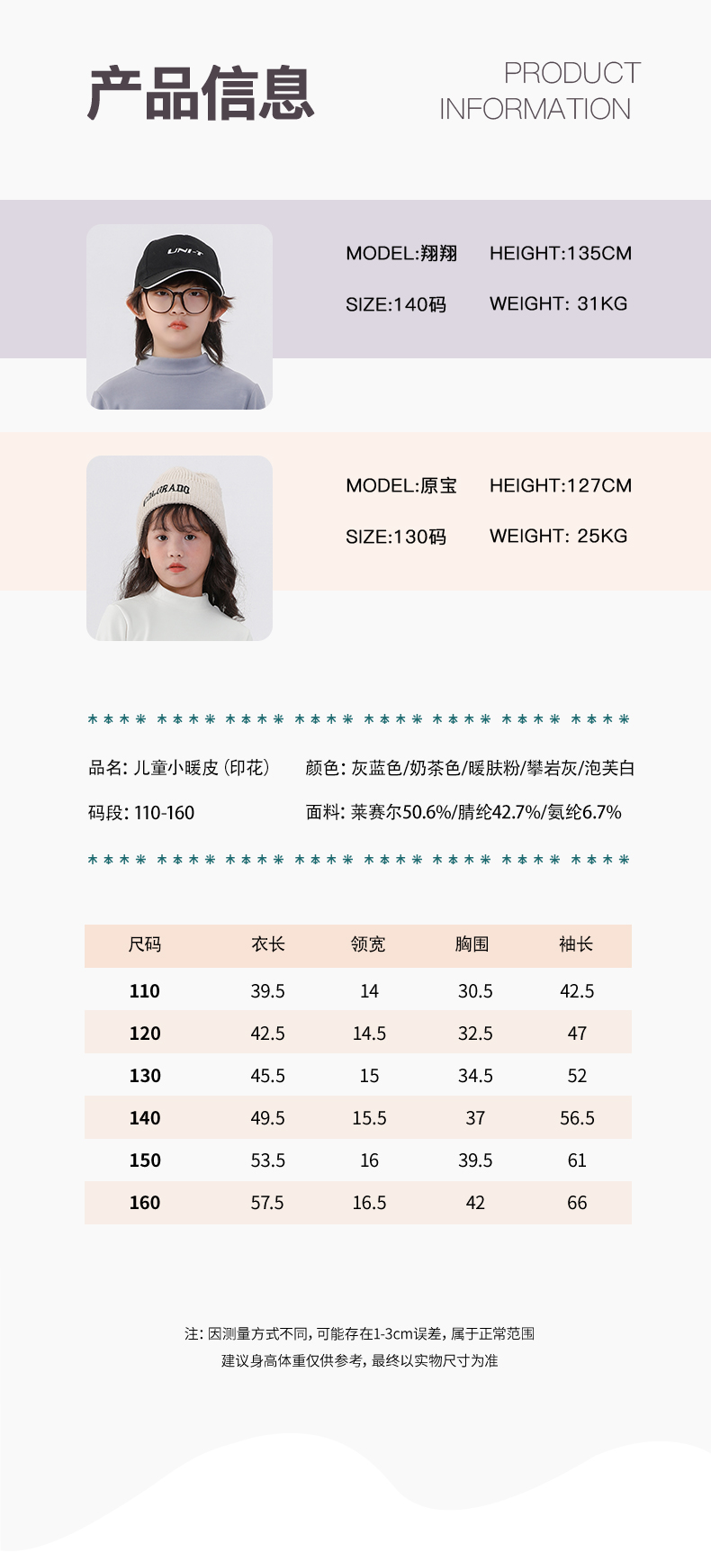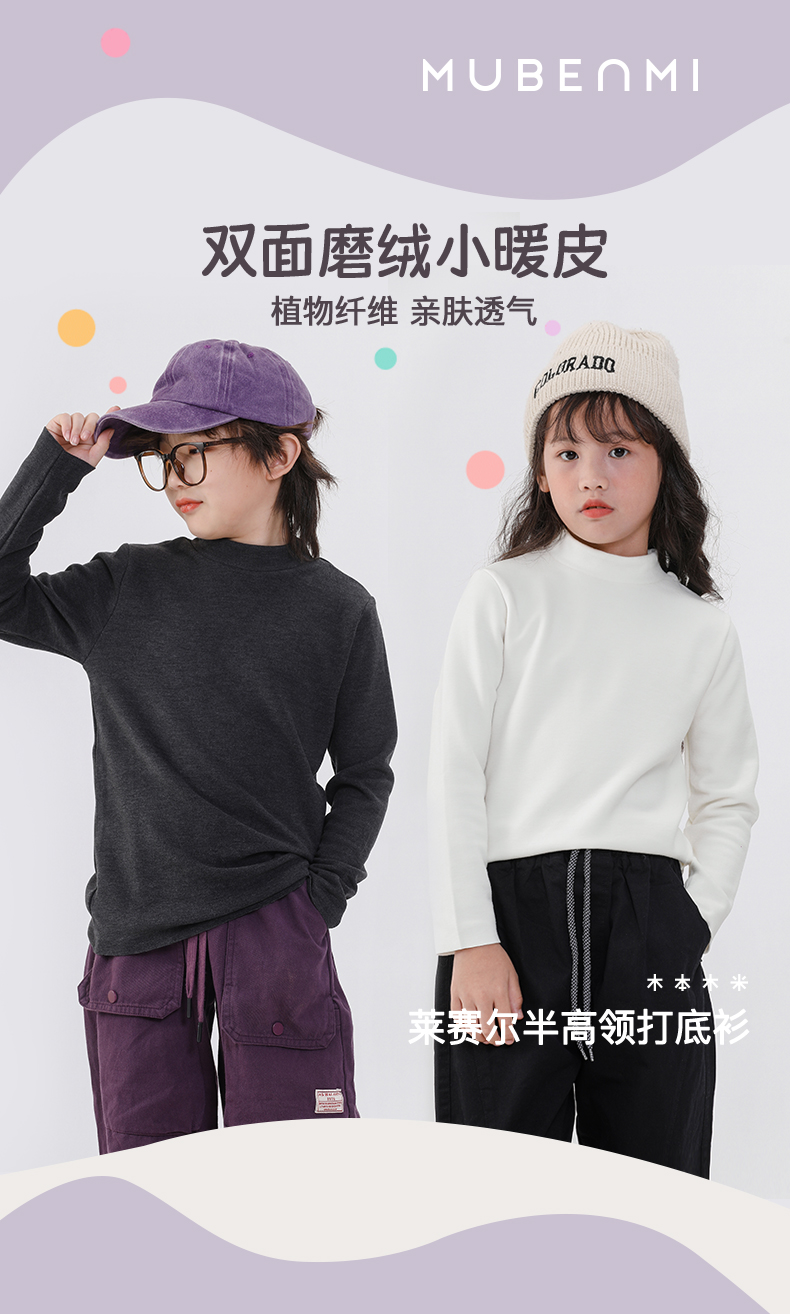 【小暖皮】MUBENMI儿童打底衫 够轻够暖够柔 半高领 婴幼儿A类 超舒服!