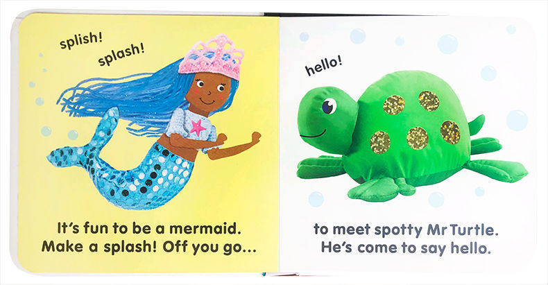 正好适合与婴儿和蹒跚学步的孩子们分享,并鼓励他们富有想象力的玩耍和学习,在色彩缤纷的角色和美人鱼配件内部点缀着触摸和感觉补丁或闪闪发光的区域去探索。从闪亮的美人鱼尾巴和凹凸不平的海马到美人鱼柔软飘逸的头发,有鳞的海龟,还有闪闪发光的贝壳镜子,婴儿的触摸和感觉:美人鱼有各种各样的令人愉快的,令人兴奋的东西!