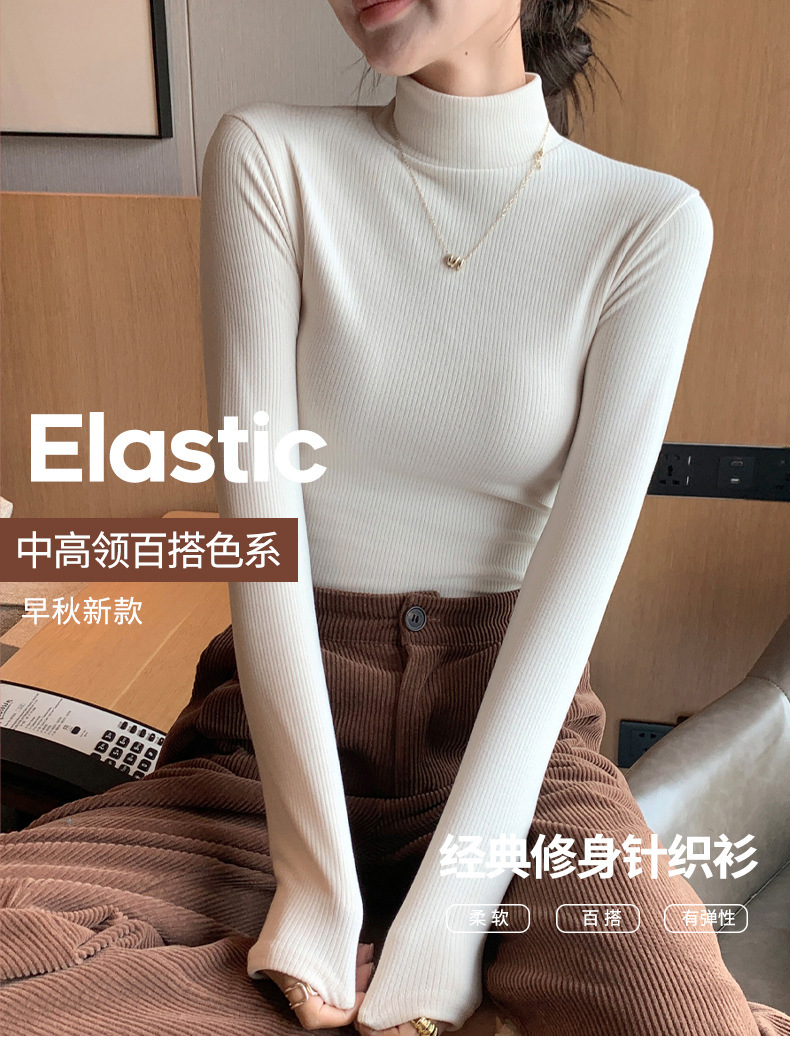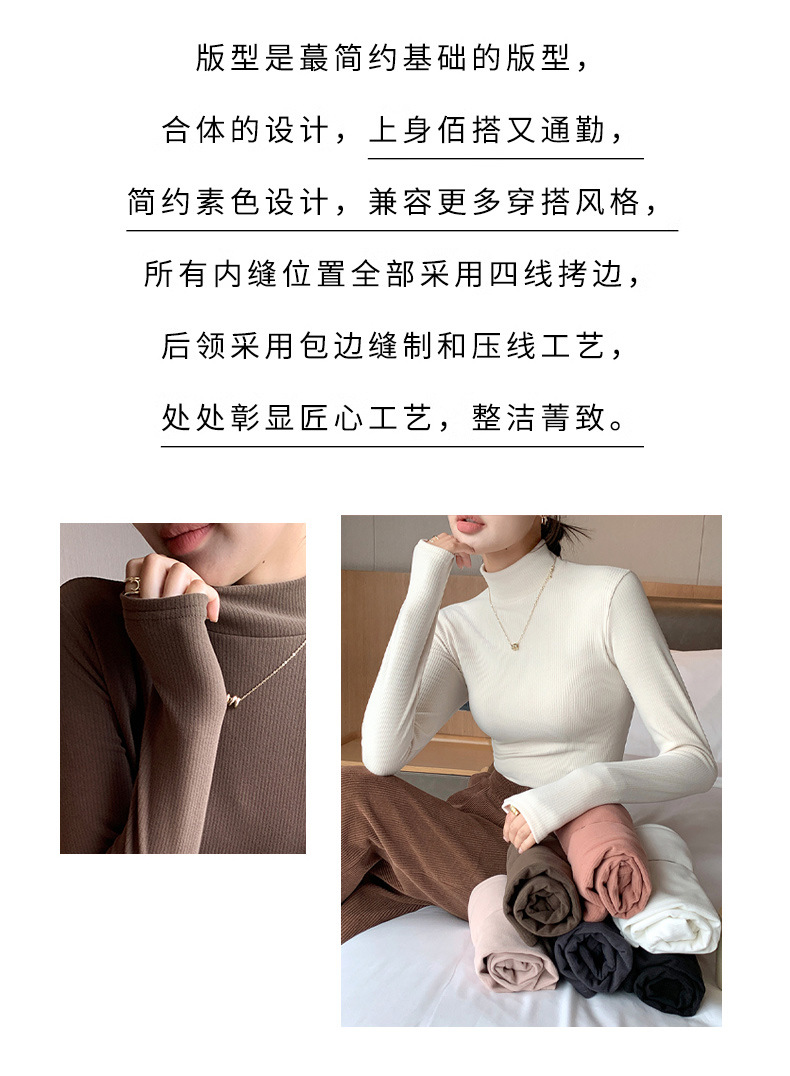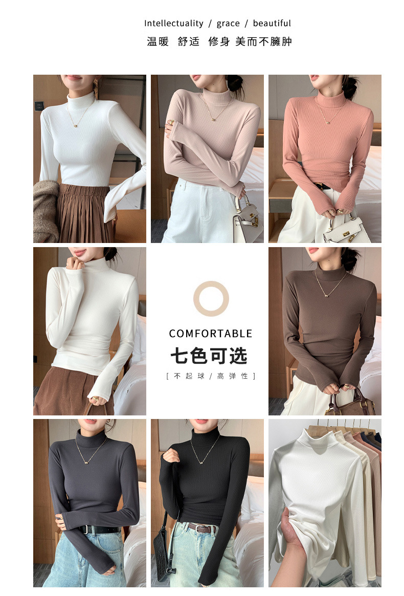 (69元2件 秋冬“高奢感”针织打底衫,半高领7色可选 超柔软高弹!设满减拍2立减) 软糯高弹修身显瘦 多色系选择 经典高级百搭必备款单穿内搭纯色打底衫